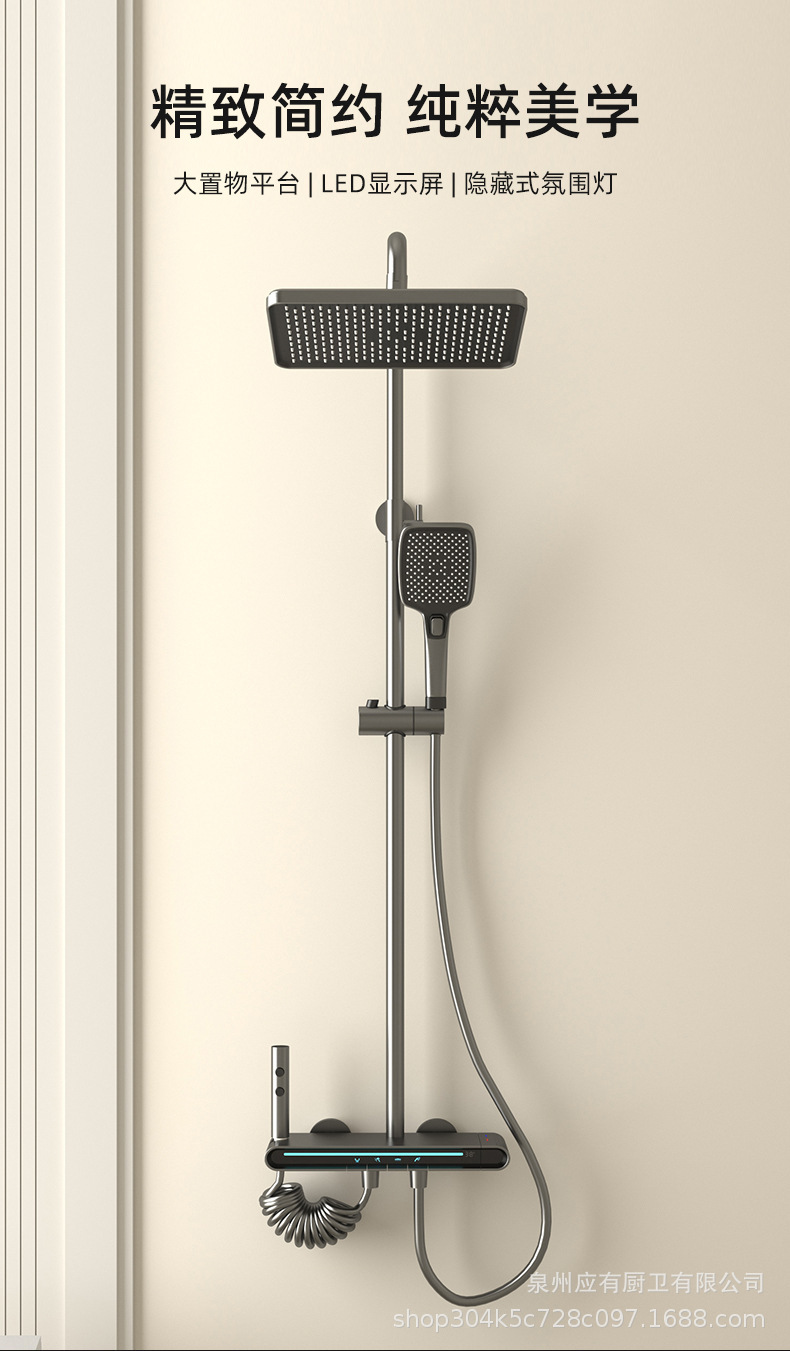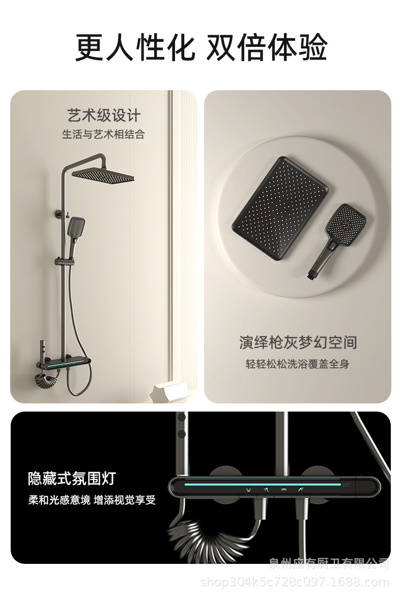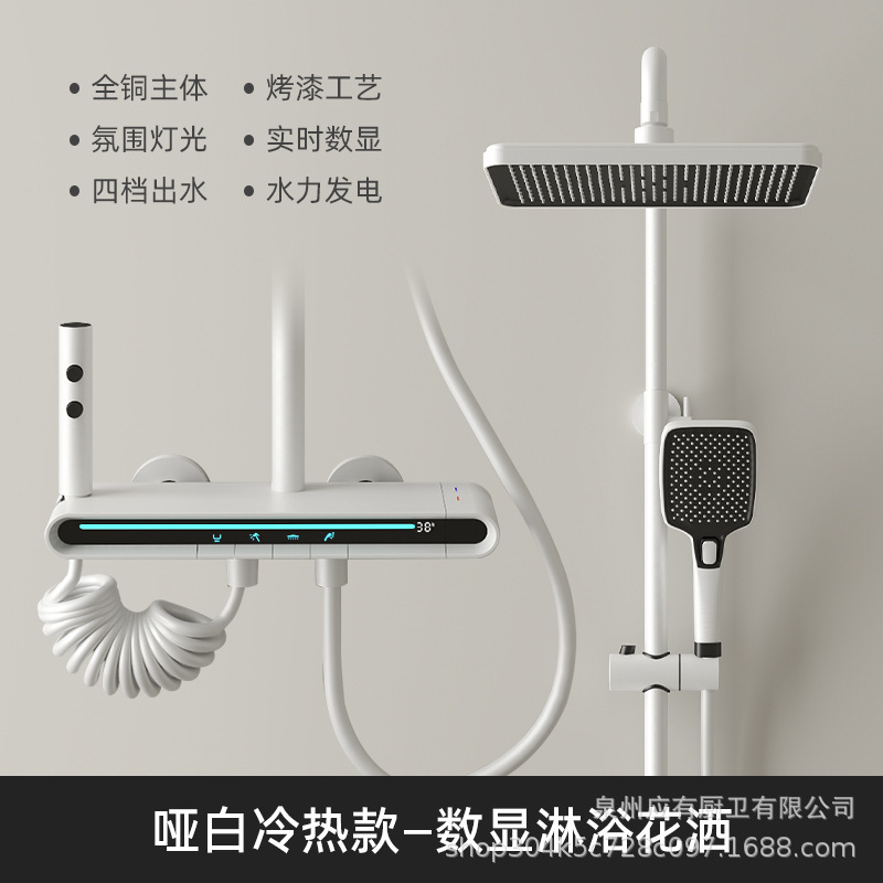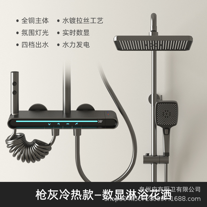 전체 구리 샤워 키트, 주변 조명, 욕실 샤워기, 가정용 샤워기, 디지털 디스플레이, 항온 가압 샤워 헤드