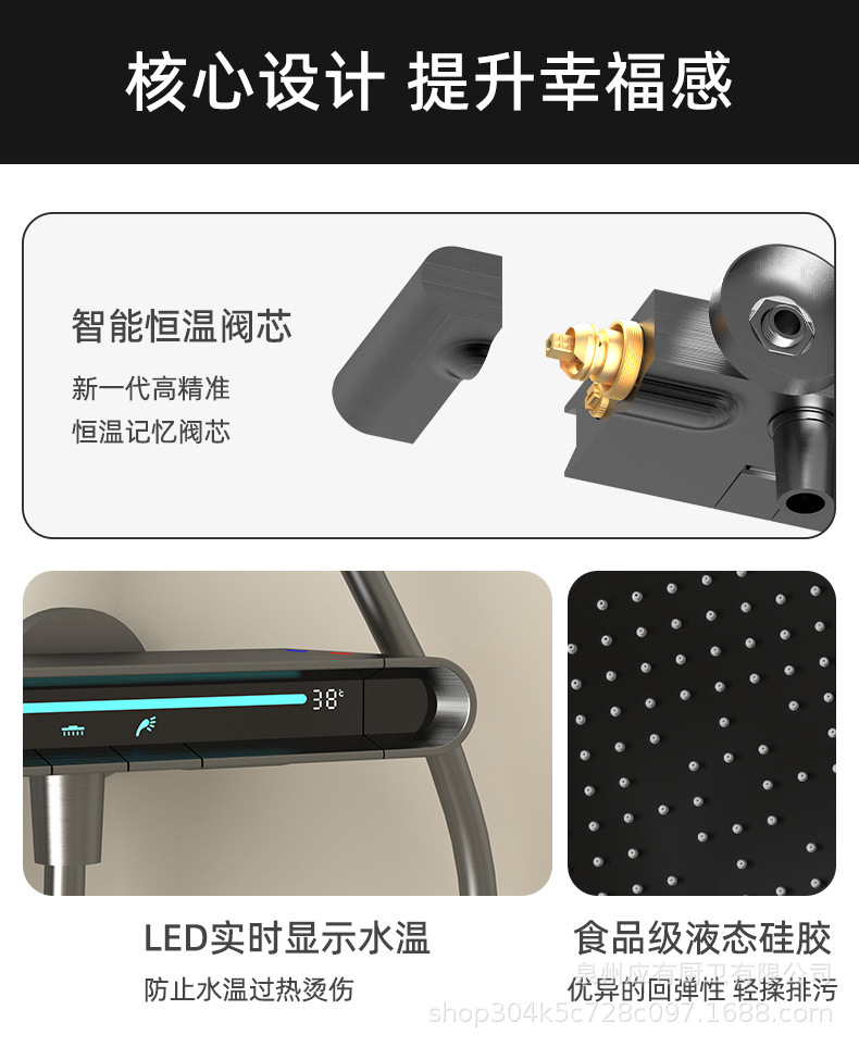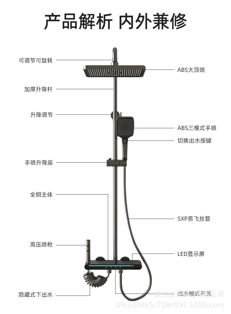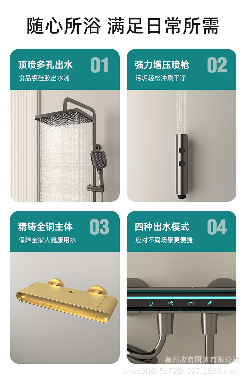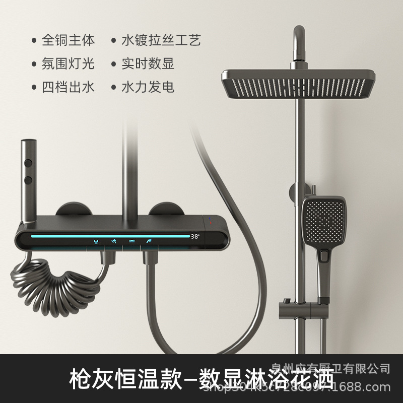 전체 구리 샤워 키트, 주변 조명, 욕실 샤워기, 가정용 샤워기, 디지털 디스플레이, 항온 가압 샤워 헤드스토어 가기