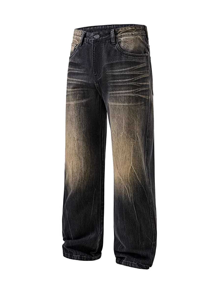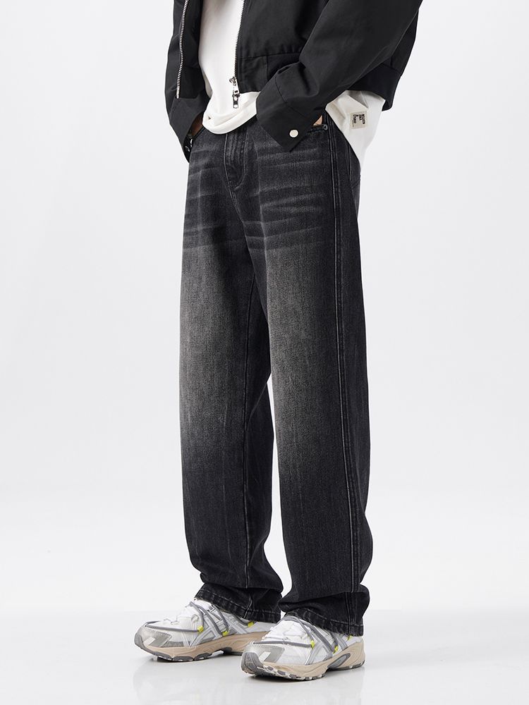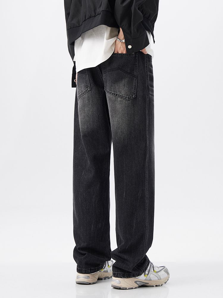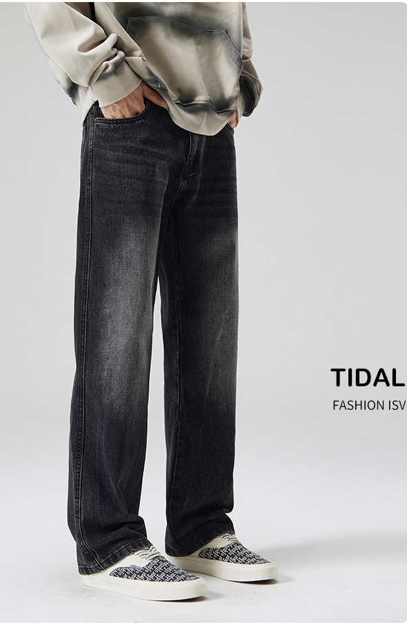 블랙 앤 그레이 루즈한 하이 스트리트 청바지 블랙 앤 그레이 아메리칸 뉴 루즈 드레이프 팬츠 크로스보더 유럽 및 미국 와이드 남성 복고풍
