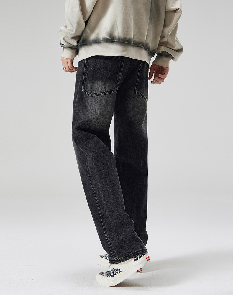블랙 앤 그레이 루즈한 하이 스트리트 청바지 블랙 앤 그레이 아메리칸 뉴 루즈 드레이프 팬츠 크로스보더 유럽 및 미국 와이드 남성 복고풍스토어 가기