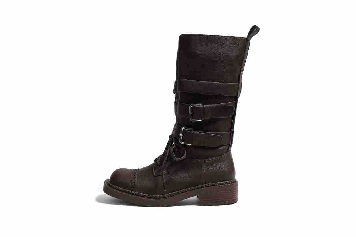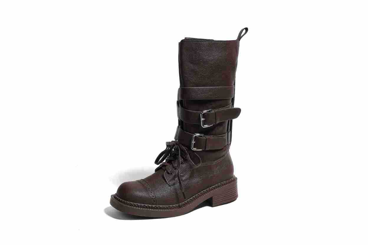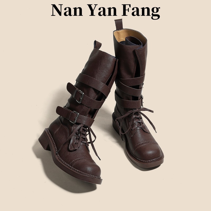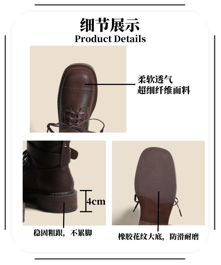 [재고 있음, 빠른 배송] 두꺼운 밑창 벨트 버클 쿨하고 멋진 여성용 오토바이 부츠, 중간 길이의 복고풍 영국 두꺼운 굽 스퀘어 토 마틴 부츠스토어 가기