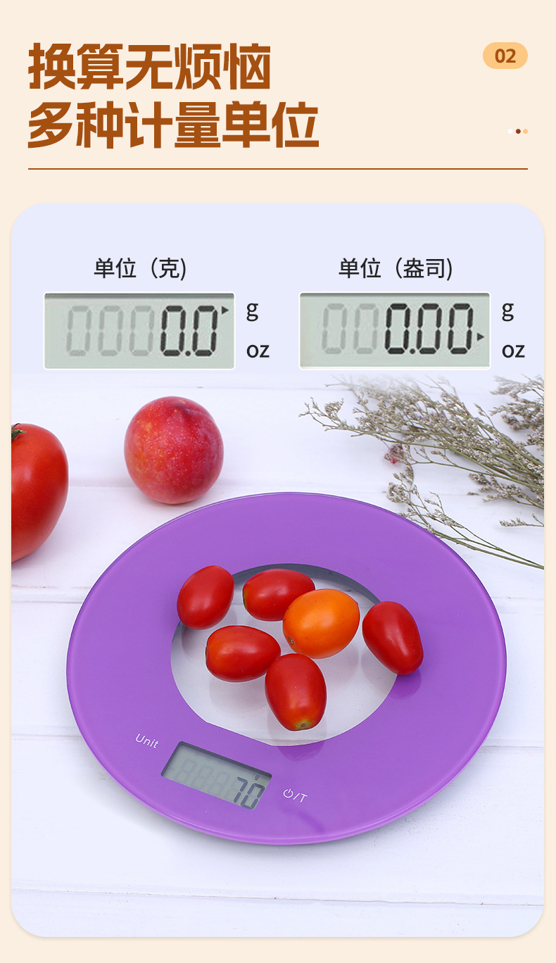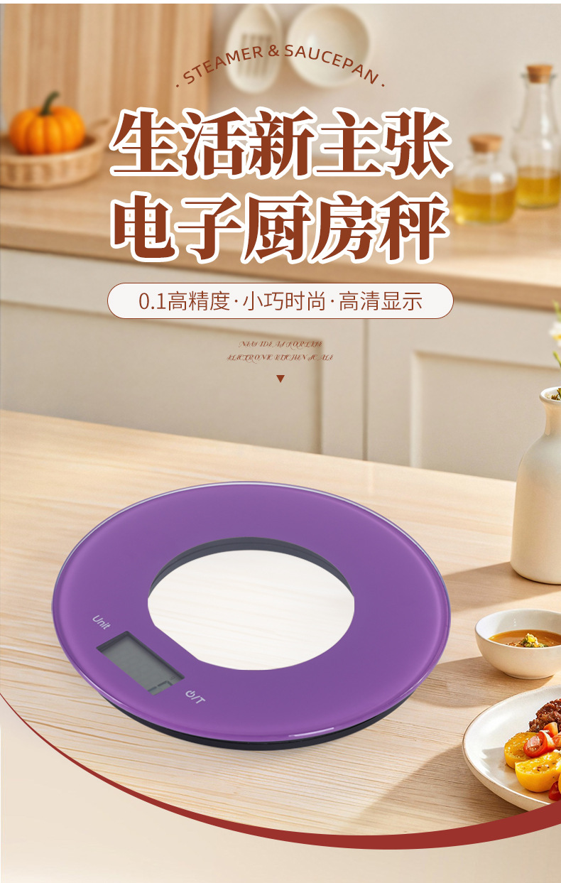 새로운 라운드 전자 주방 저울 휴대용 터치 전자 저울 홈 정확한 그램 식품 보충제 베이킹 저울 도매