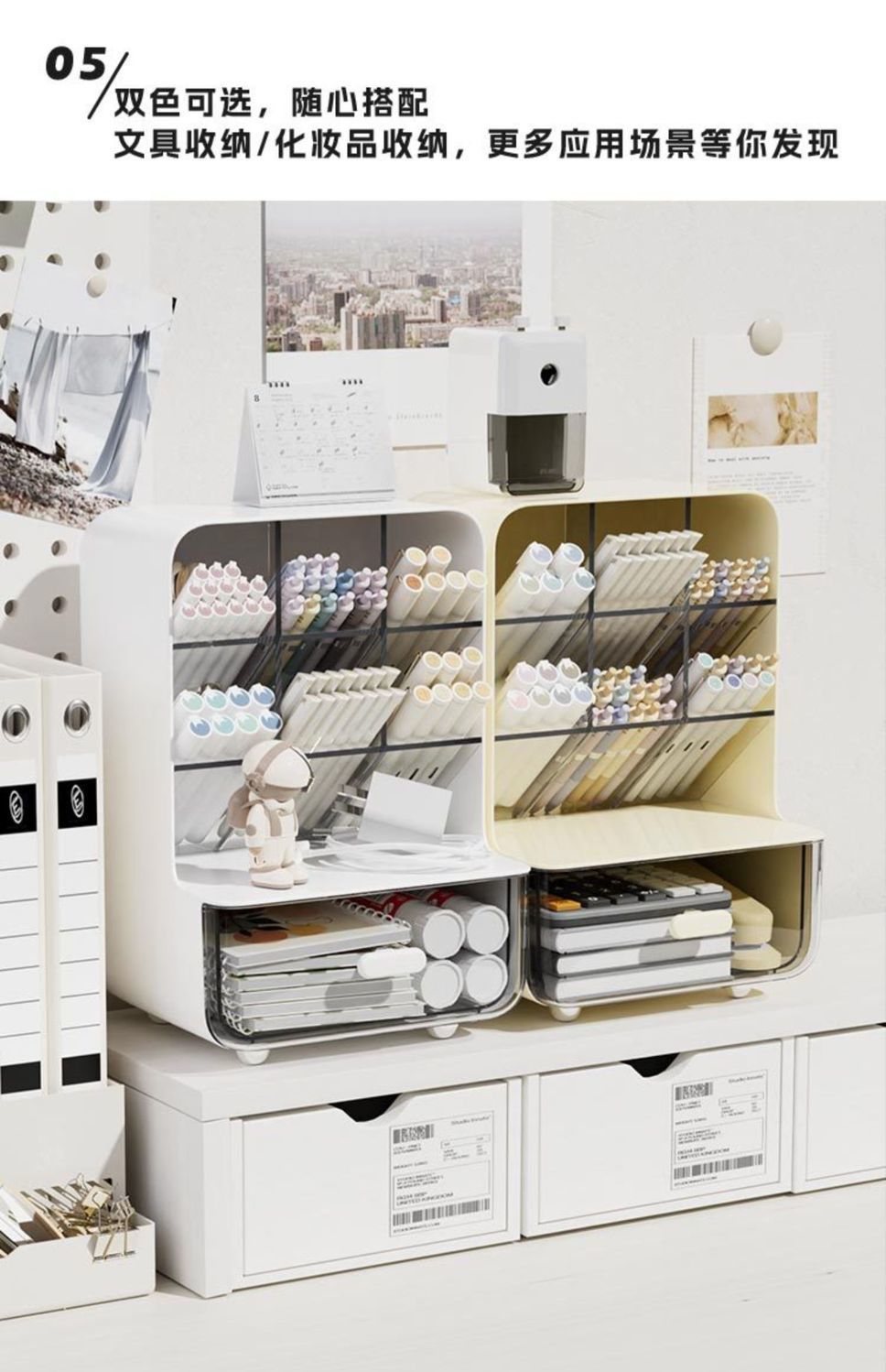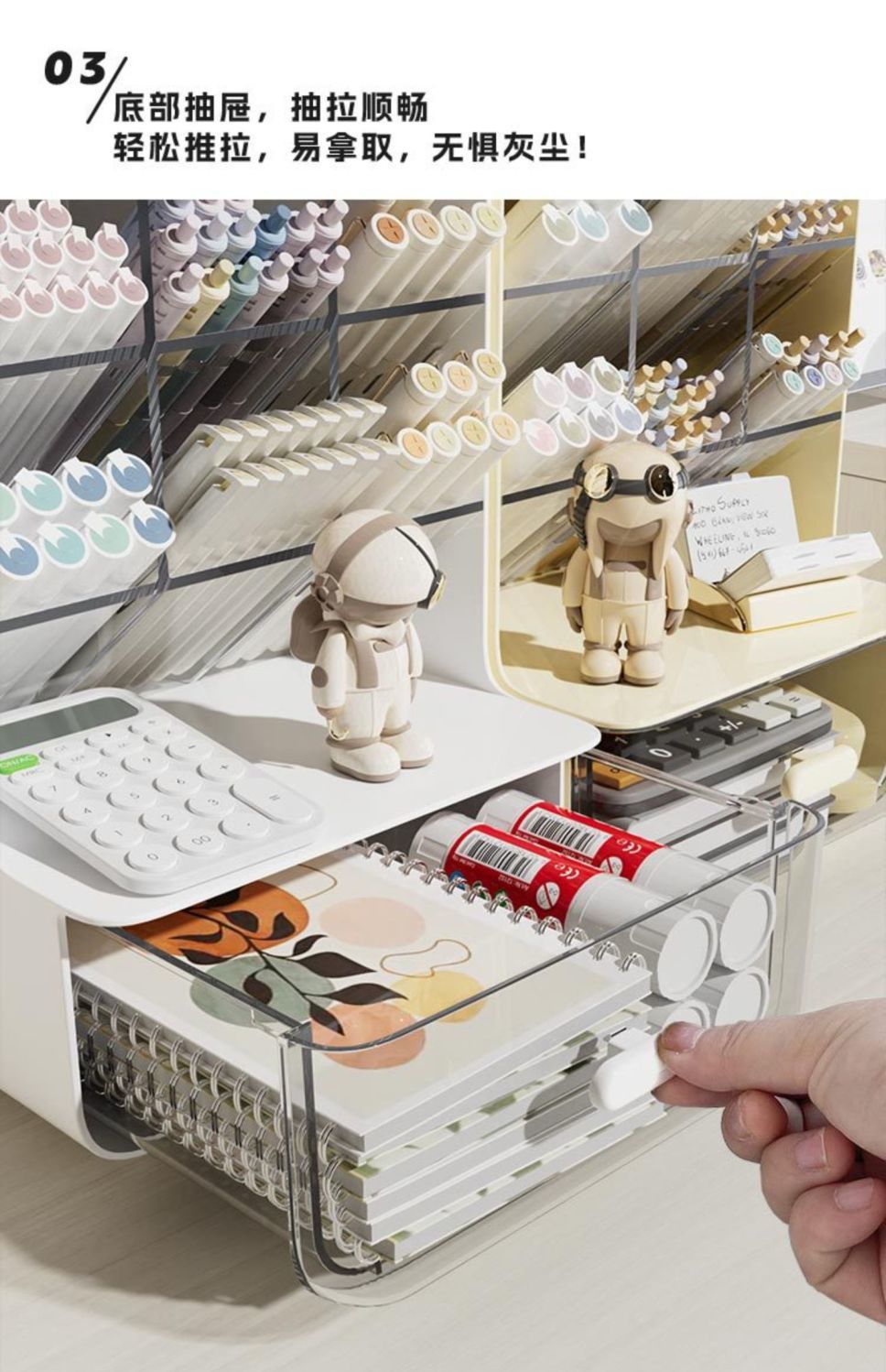 • 서랍이 포함된 경사형 수납함 [3-in-1 수납]