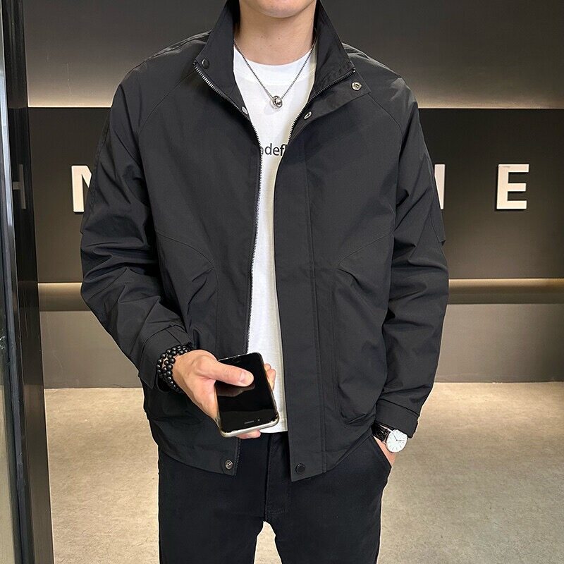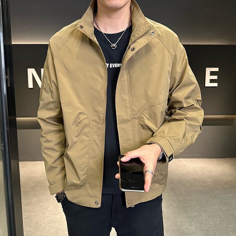 남성 재킷 봄, 가을 2025 새로운 솔리드 컬러 스탠드 칼라 트렌디 브랜드 캐주얼 작업복 재킷 도매