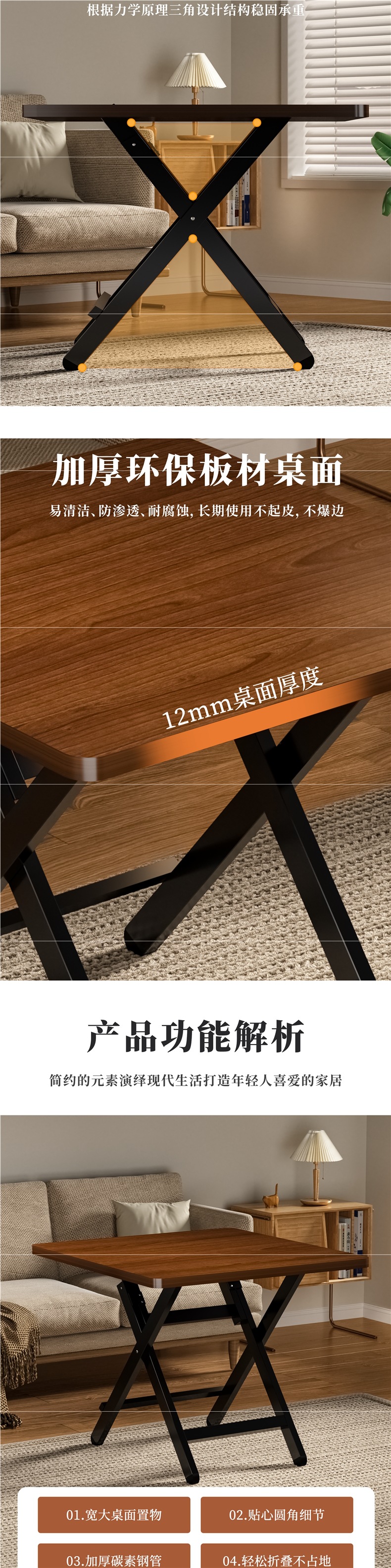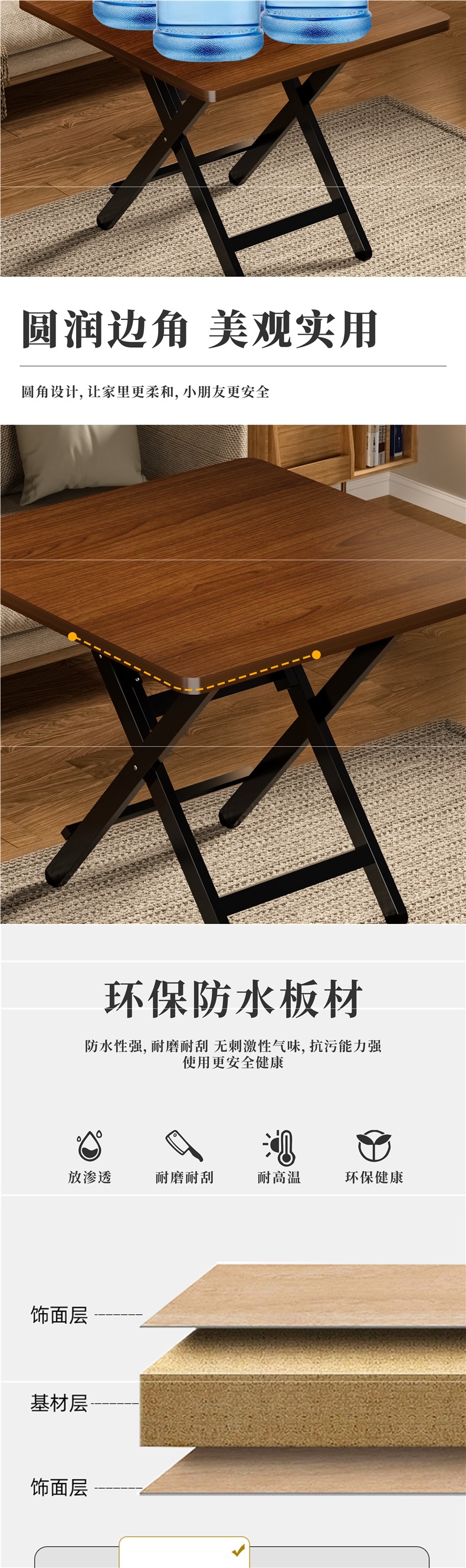 접이식 테이블 식탁 가정용 소형 테이블 간단한 원형 테이블 임대 주택 야외 휴대용 스톨 식사 사각형 테이블스토어 가기