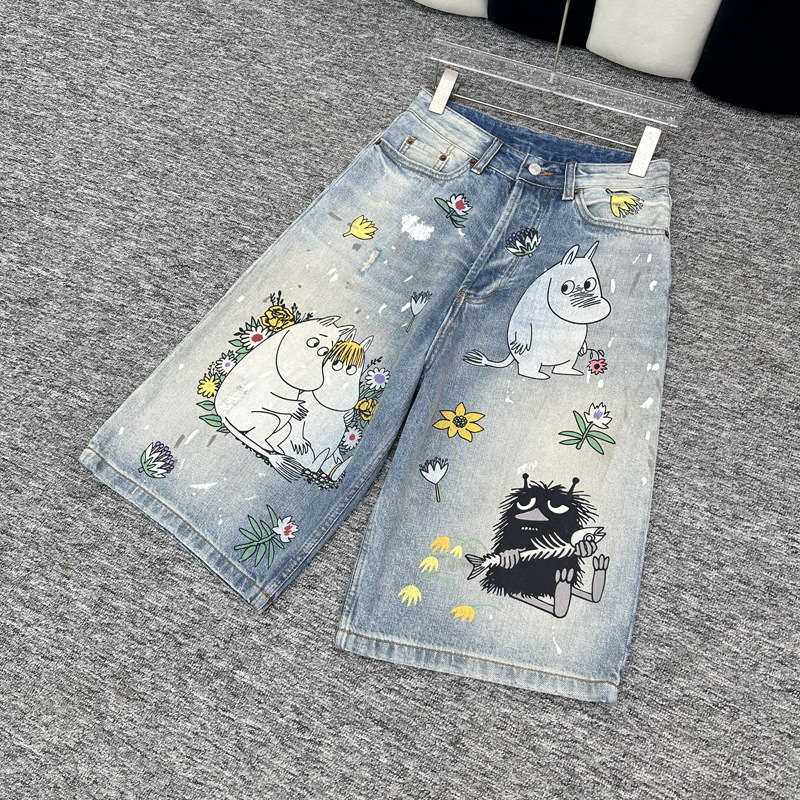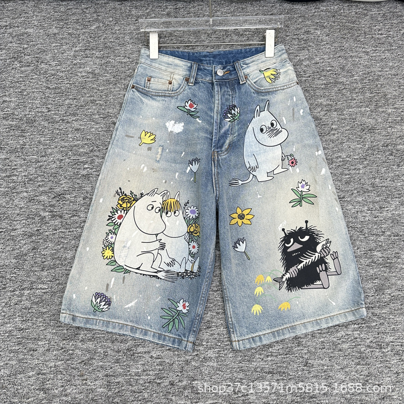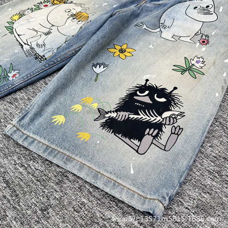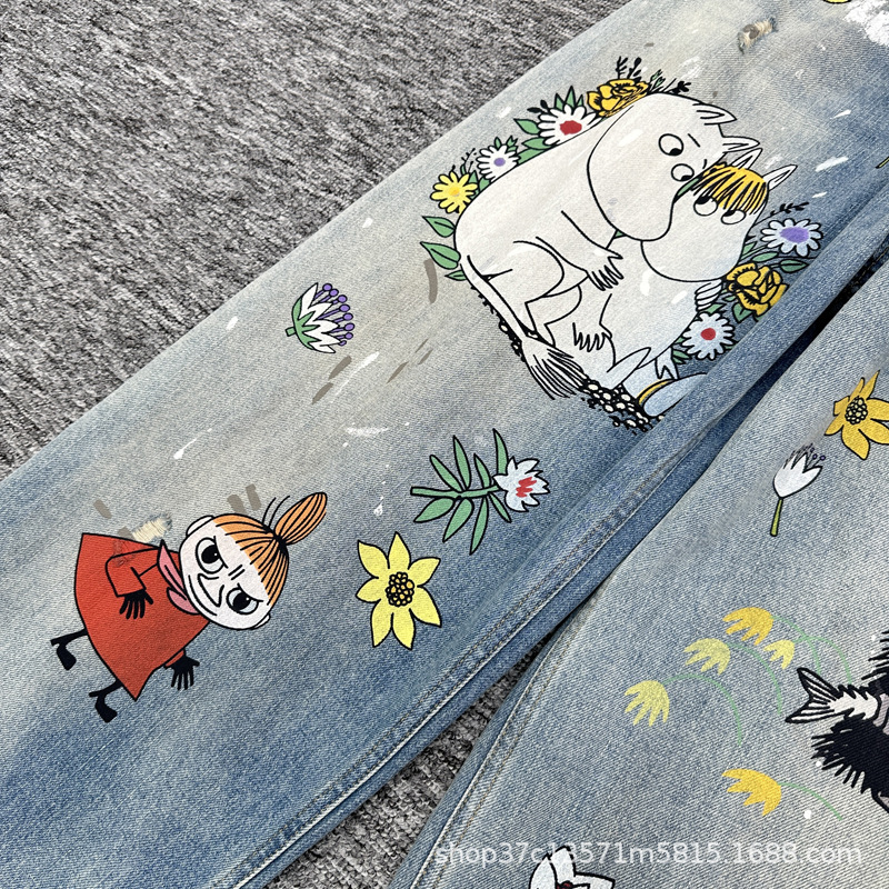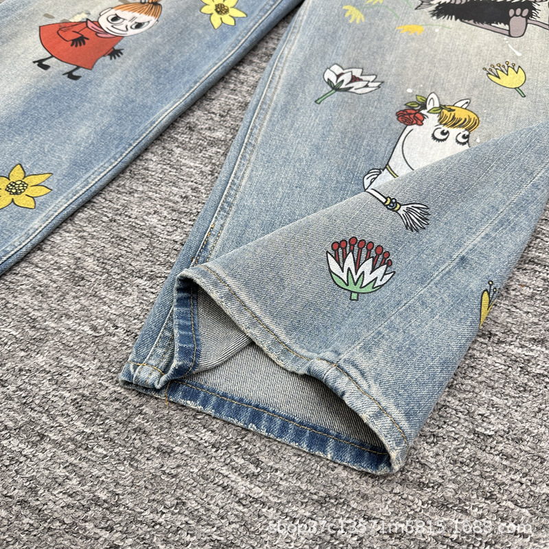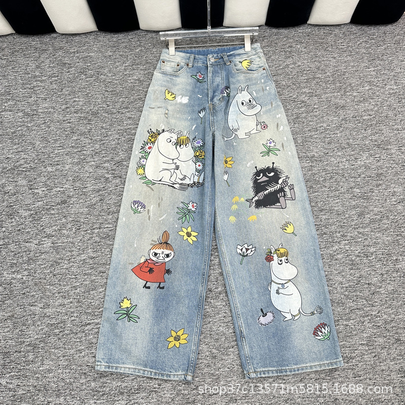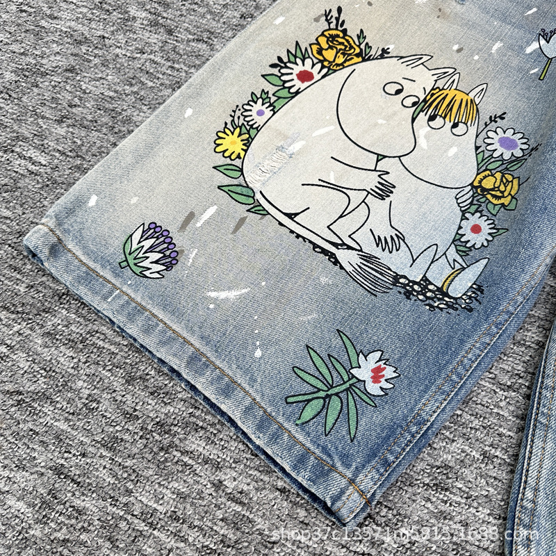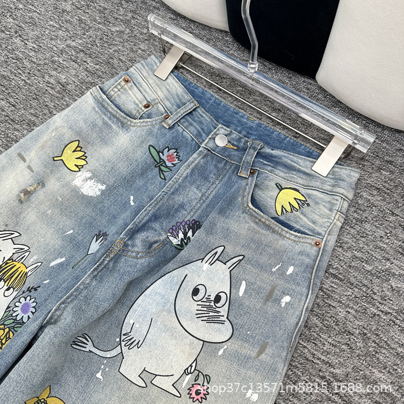 25 여름 새로운 재미있는 만화 하마 꽃 인쇄 스트레이트 청바지 여성스토어 가기