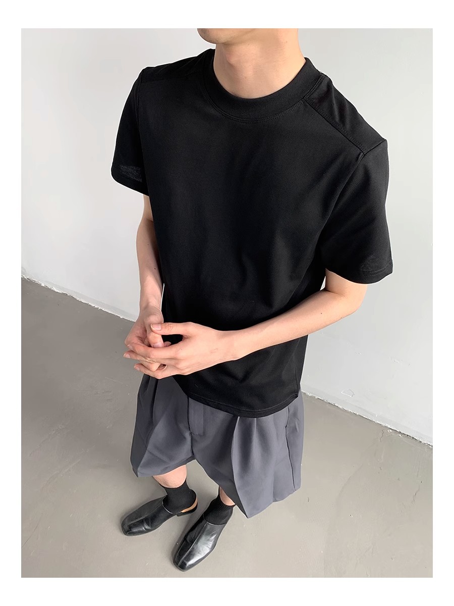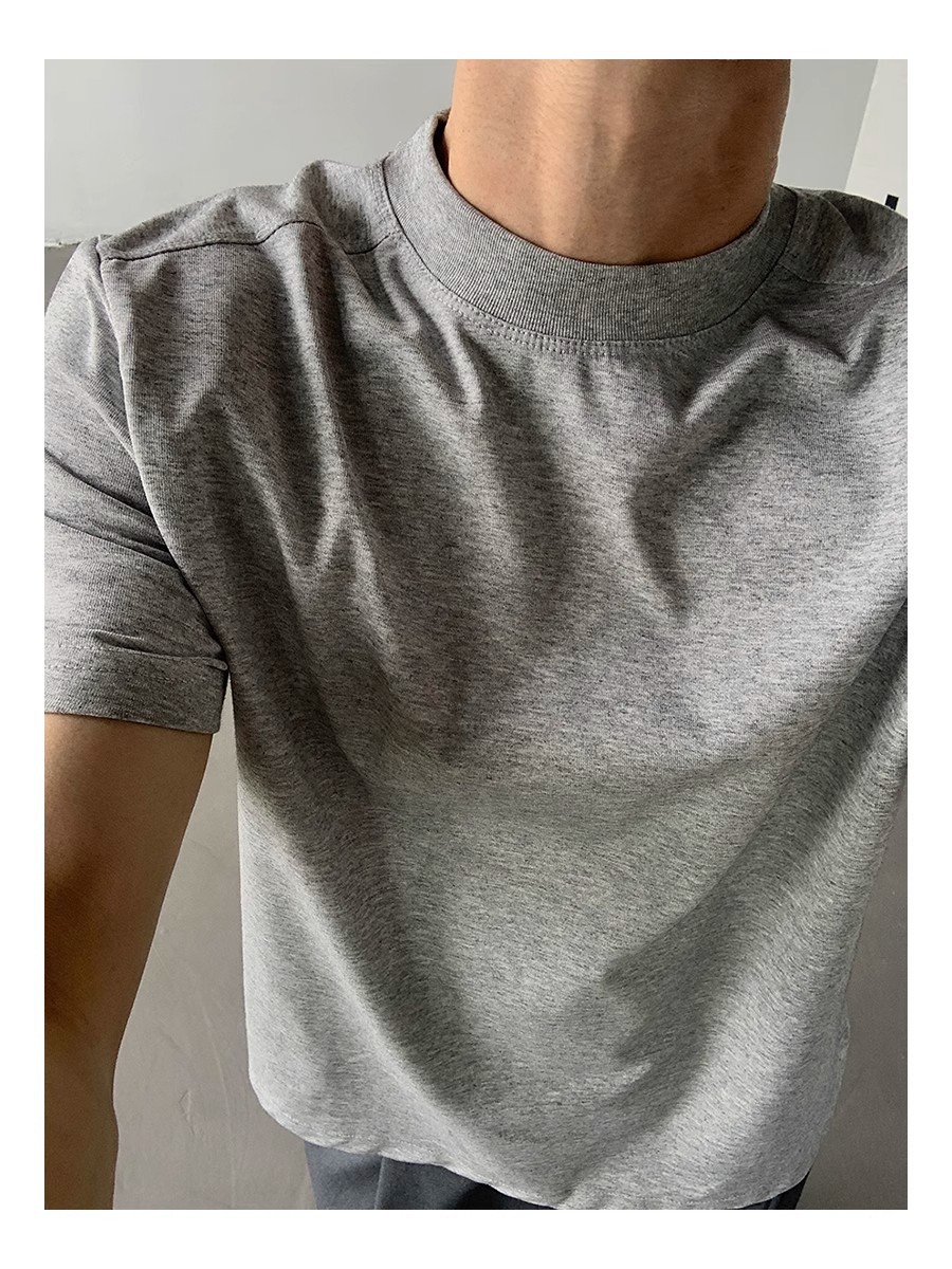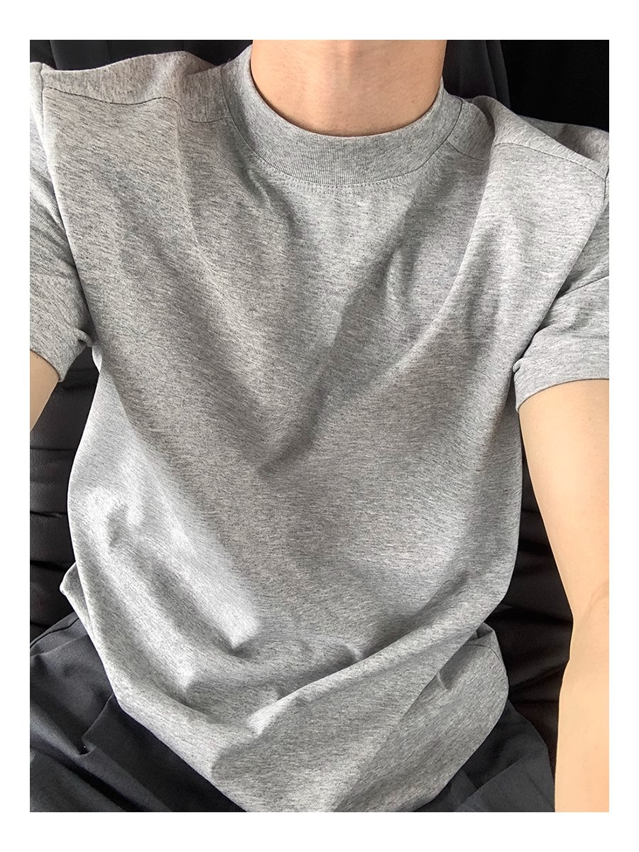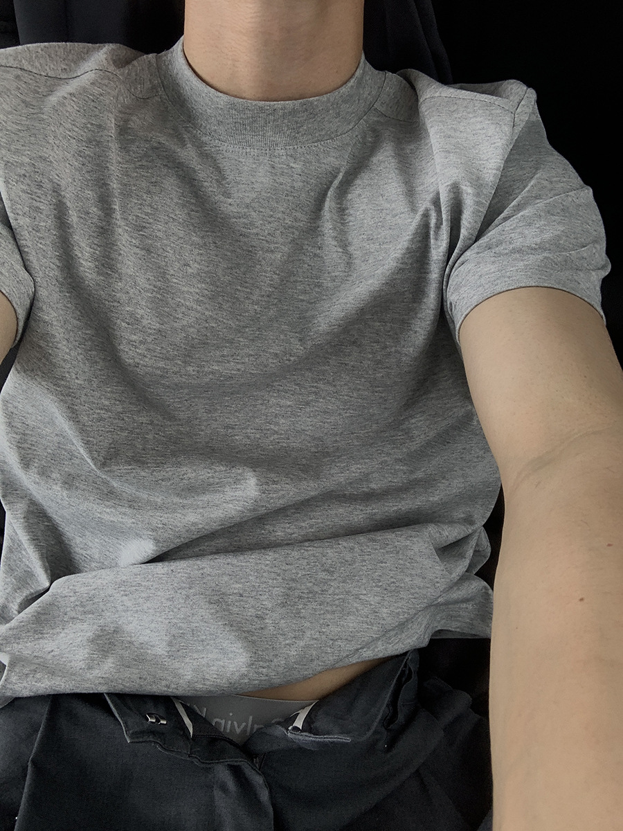봄 여름 베이스 레이어 반팔 티셔츠 솔리드 컬러 오른쪽 어깨 반팔 남녀 라운드 넥 티셔츠 왁시한 느낌의 피부 친화적인 헤비 베이스 레이어 셔츠스토어 가기