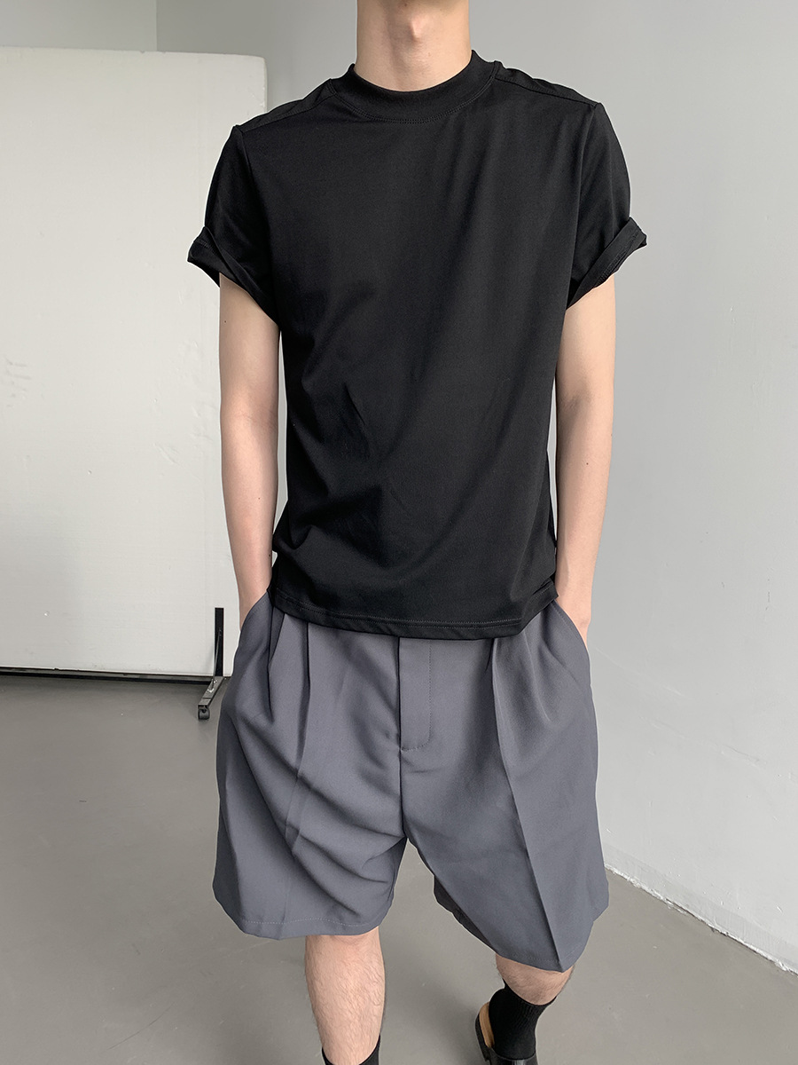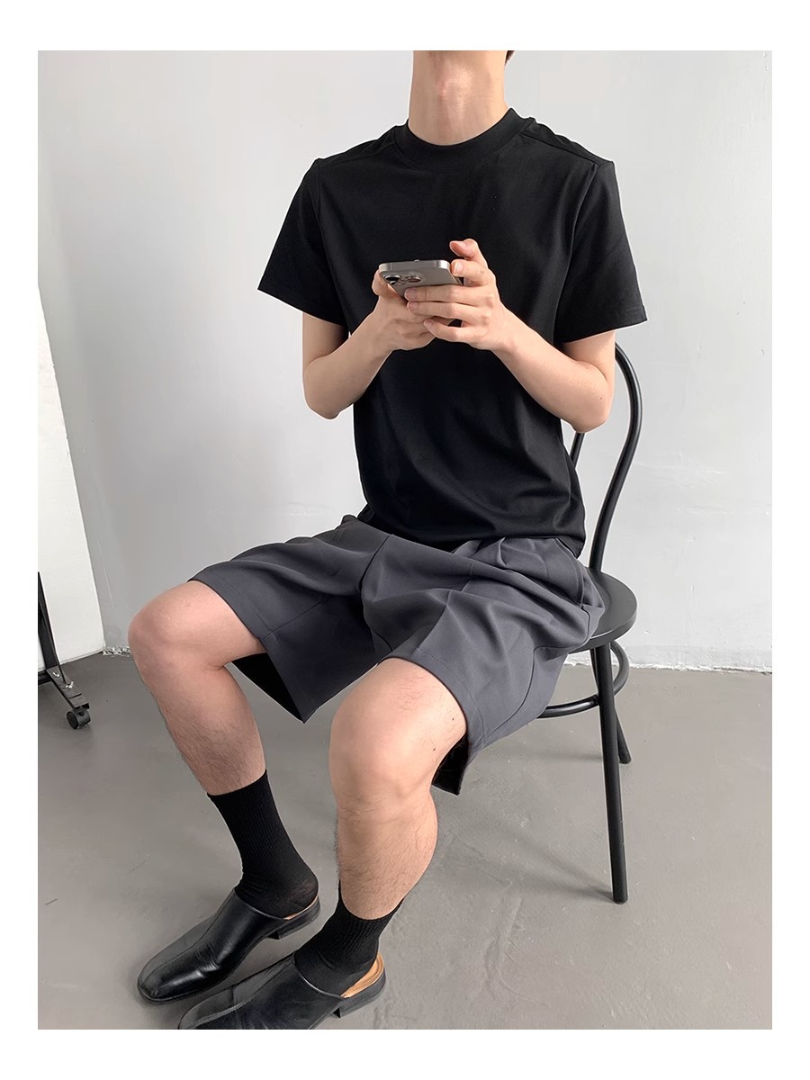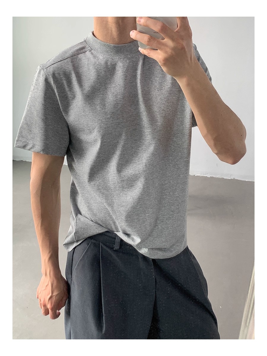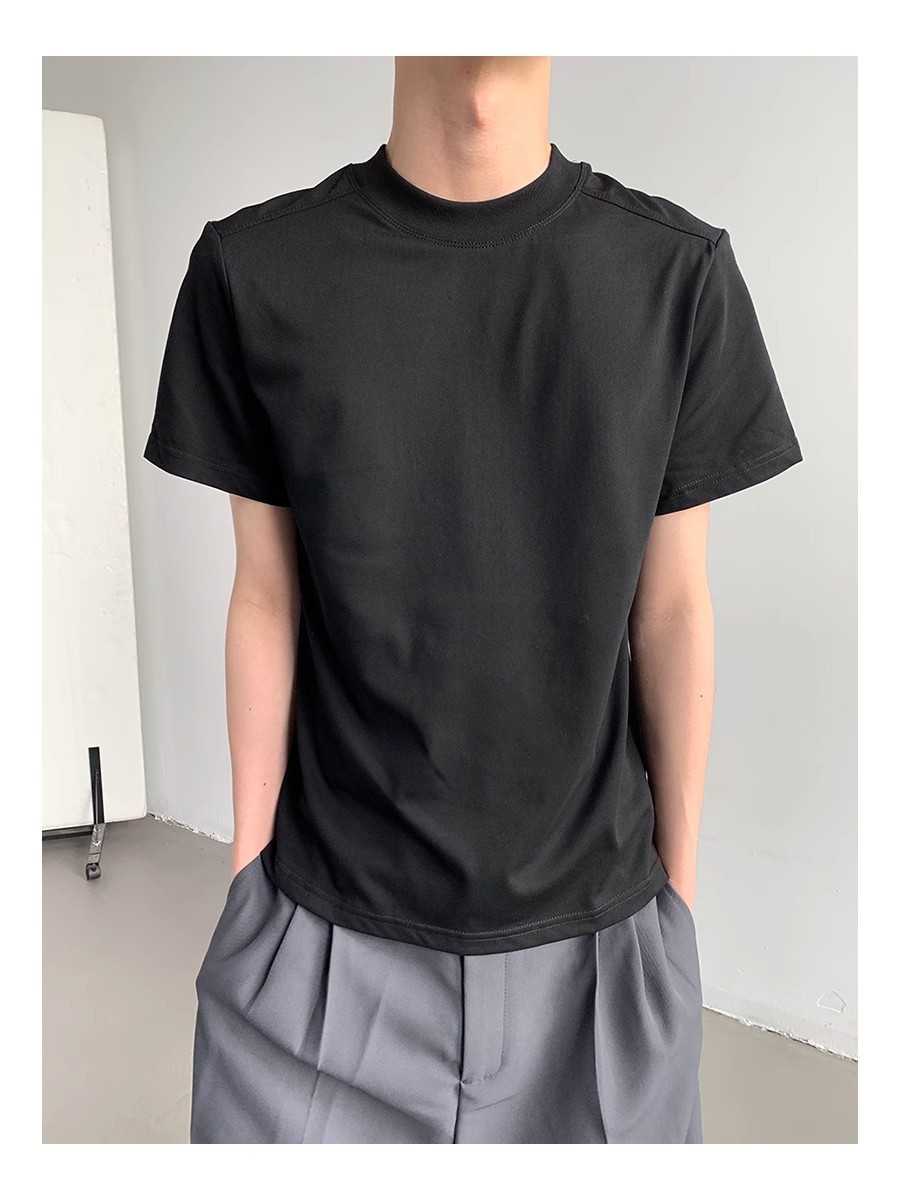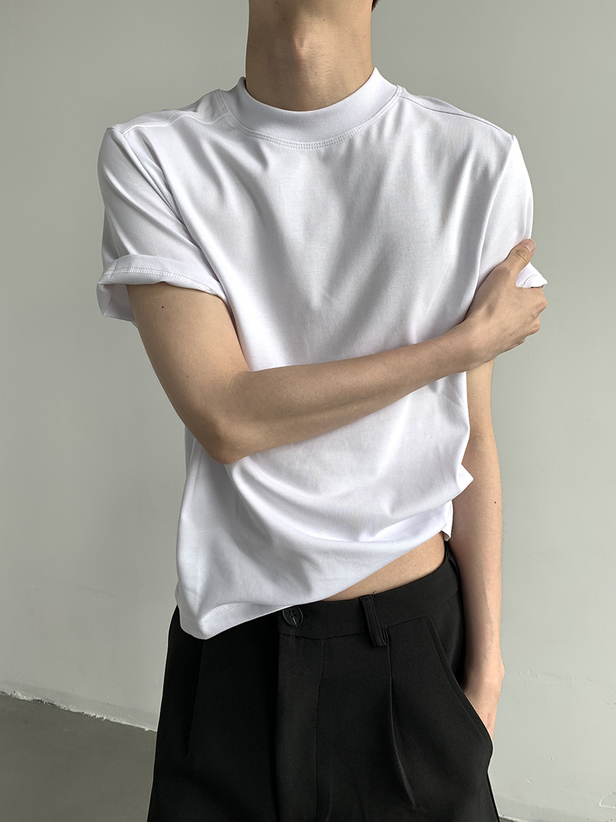 봄 여름 베이스 레이어 반팔 티셔츠 솔리드 컬러 오른쪽 어깨 반팔 남녀 라운드 넥 티셔츠 왁시한 느낌의 피부 친화적인 헤비 베이스 레이어 셔츠스토어 가기