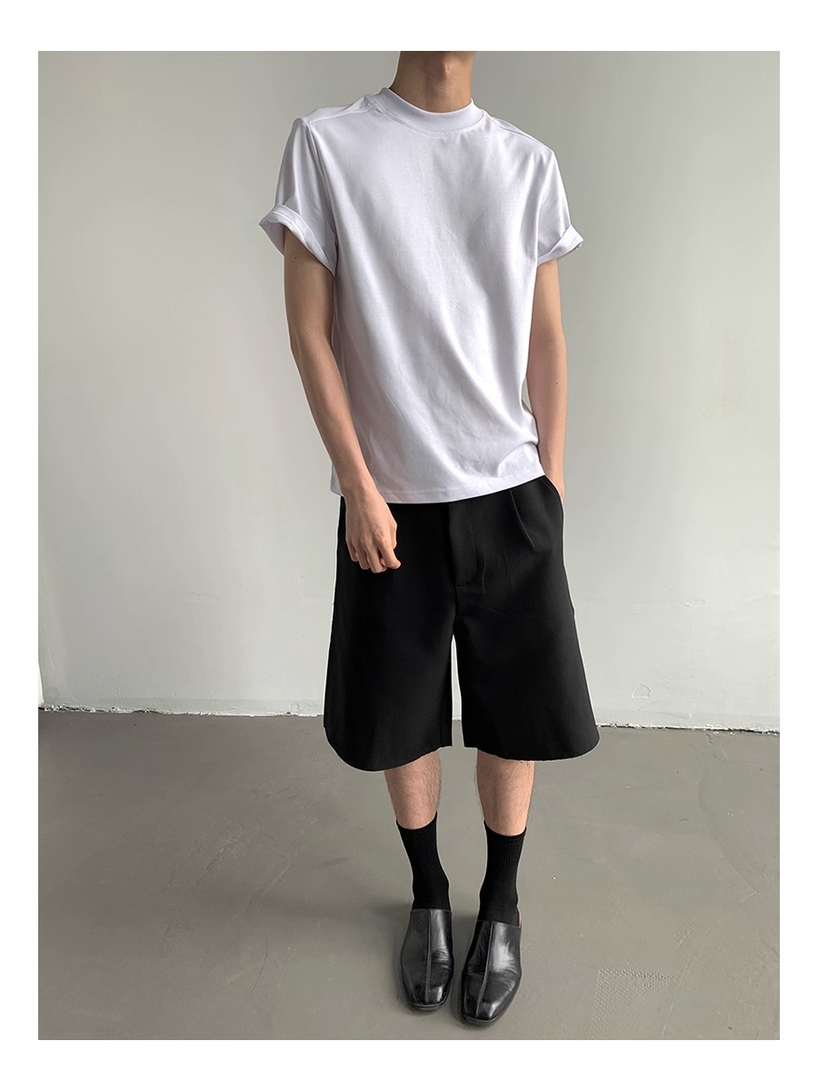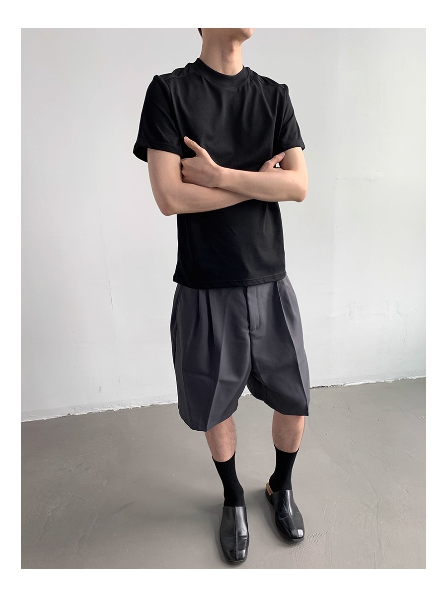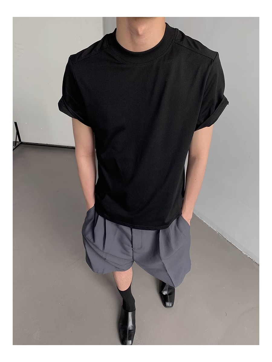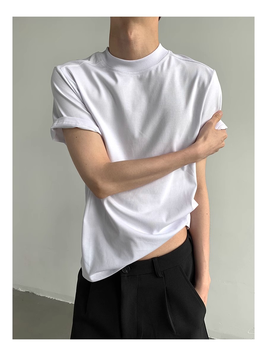 봄 여름 베이스 레이어 반팔 티셔츠 솔리드 컬러 오른쪽 어깨 반팔 남녀 라운드 넥 티셔츠 왁시한 느낌의 피부 친화적인 헤비 베이스 레이어 셔츠스토어 가기