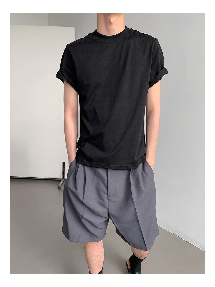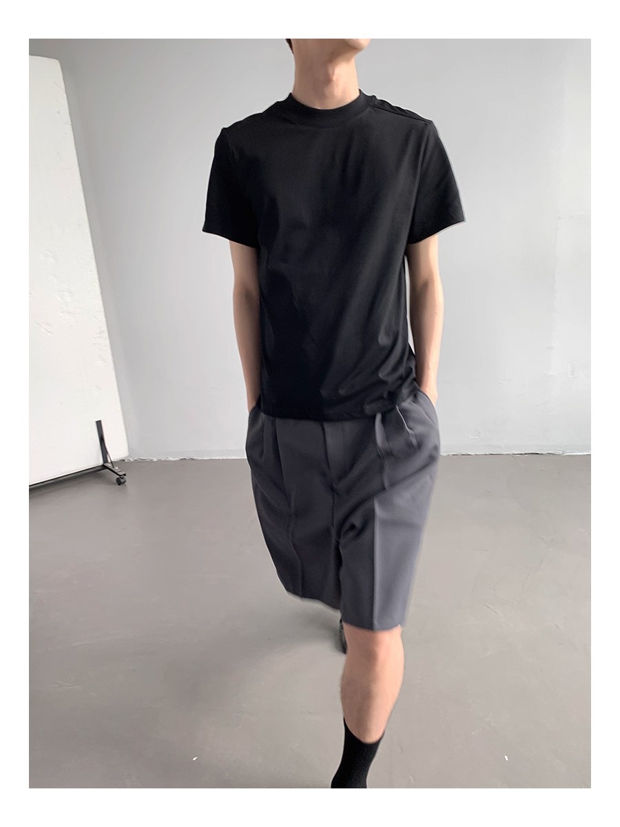 봄 여름 베이스 레이어 반팔 티셔츠 솔리드 컬러 오른쪽 어깨 반팔 남녀 라운드 넥 티셔츠 왁시한 느낌의 피부 친화적인 헤비 베이스 레이어 셔츠
