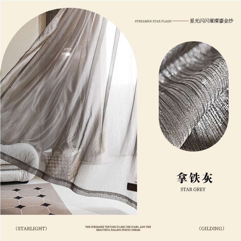 금박 프렌치 라이트 럭셔리 거즈 커튼, 드림 거즈, 반투명 거즈 커튼, 거실 발코니 거즈, 플로팅 창, 일본식 창 거즈