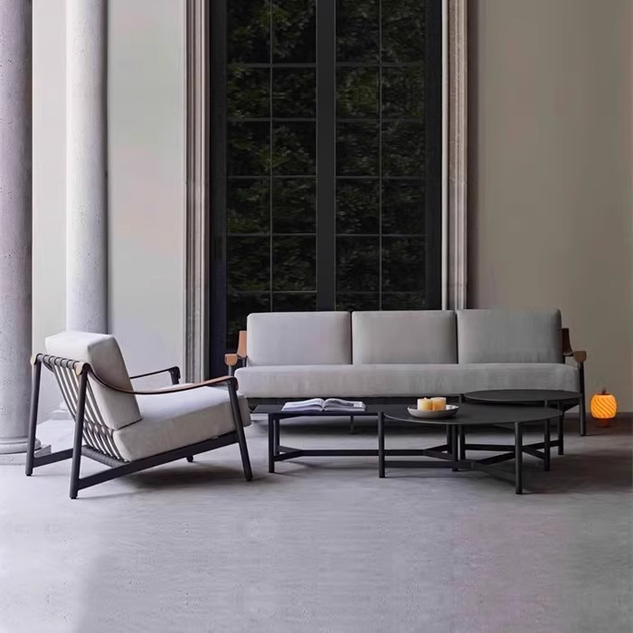 야외 소파 안뜰 방수 및 자외선 차단제 정원 빌라 테라스 알루미늄 합금 소파 등나무 의자 가구 커피 테이블 조합