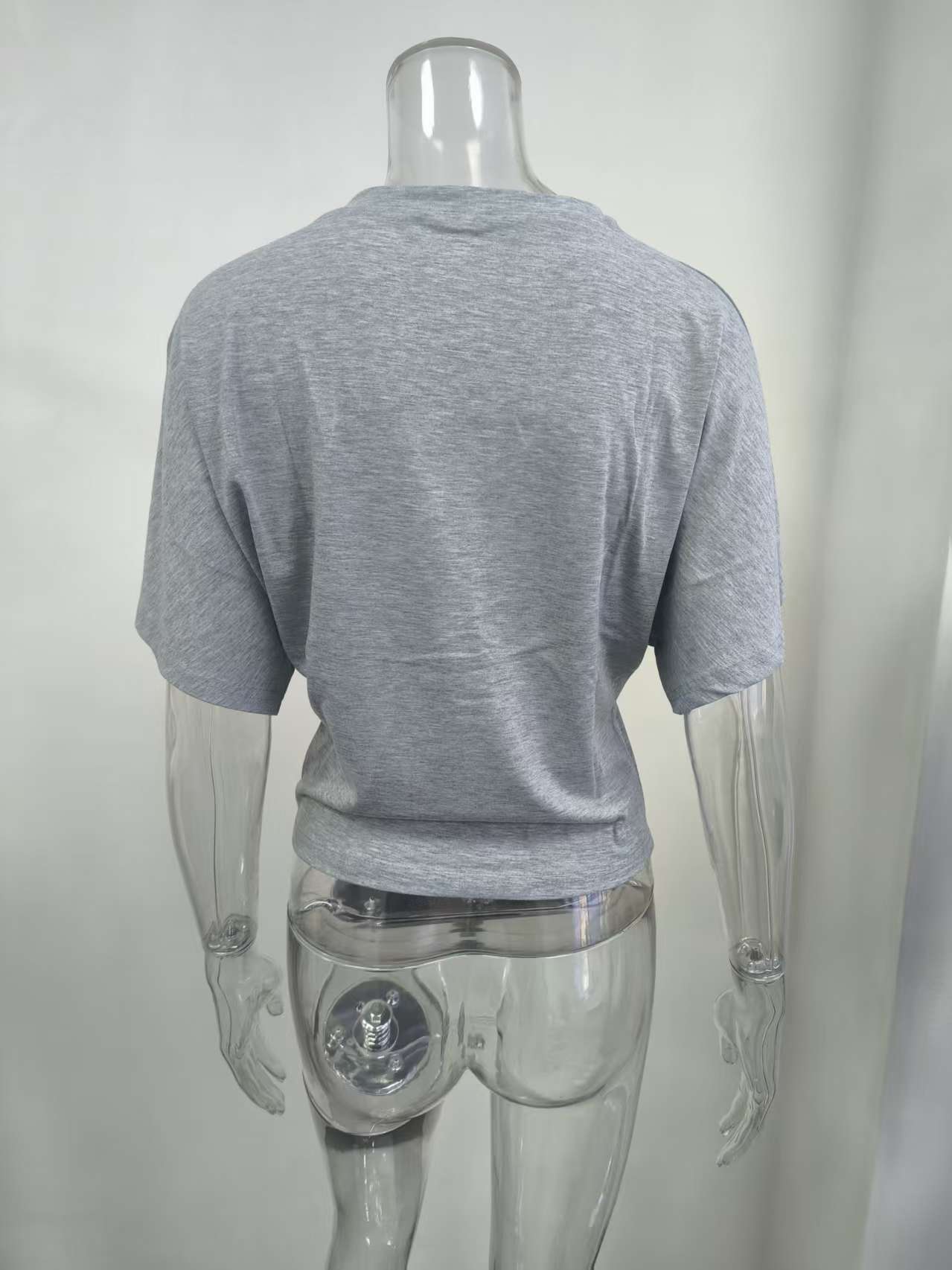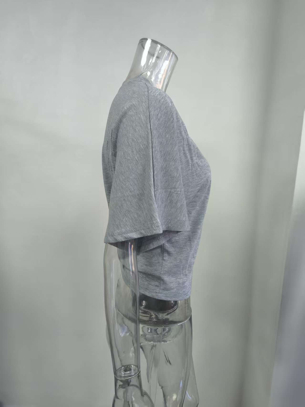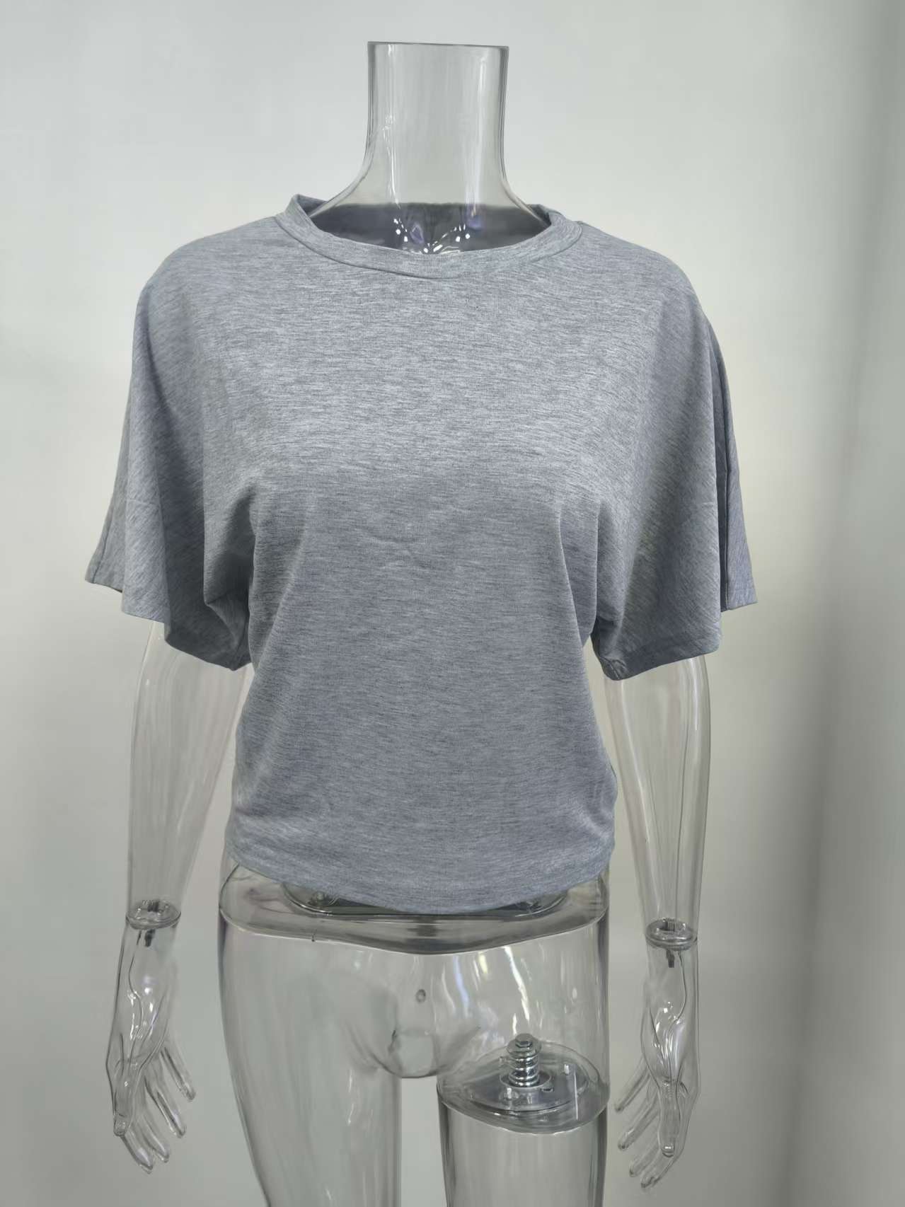 2025 한국 스타일 디자인 라운드 넥 풀오버 반팔 티셔츠 여성 여름 새로운 스타일 간결하고 다재다능한 솔리드 컬러 루즈 탑