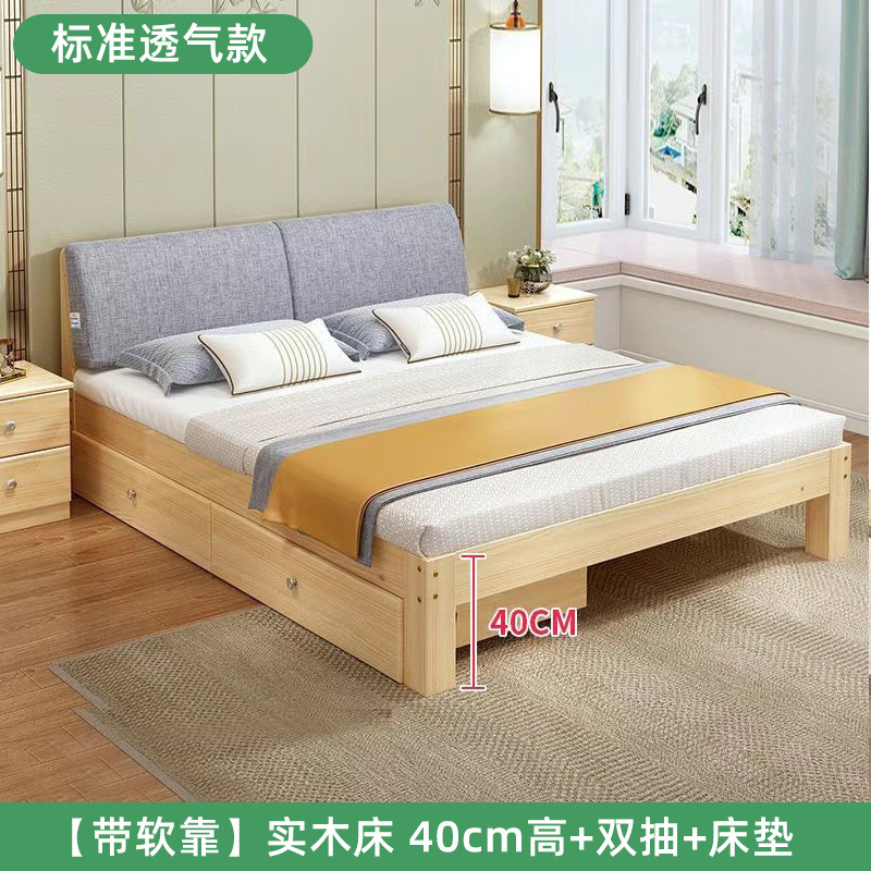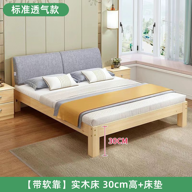 두꺼운 원목 침대, 심플 모던 더블 침대, 경제적인 싱글 침대, 홈 마스터 침실 임대용 원목 침대