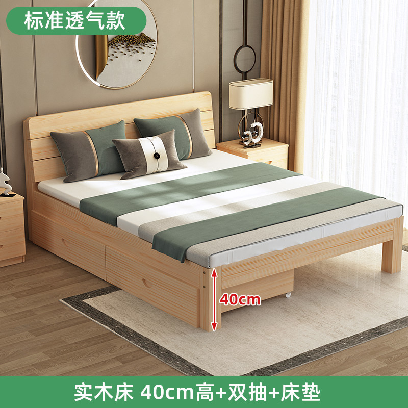 • 업그레이드된 원목 침대 프레임 높이 40 [통기성 모델] + 더블 서랍 + 매트리스 + 풀 침대