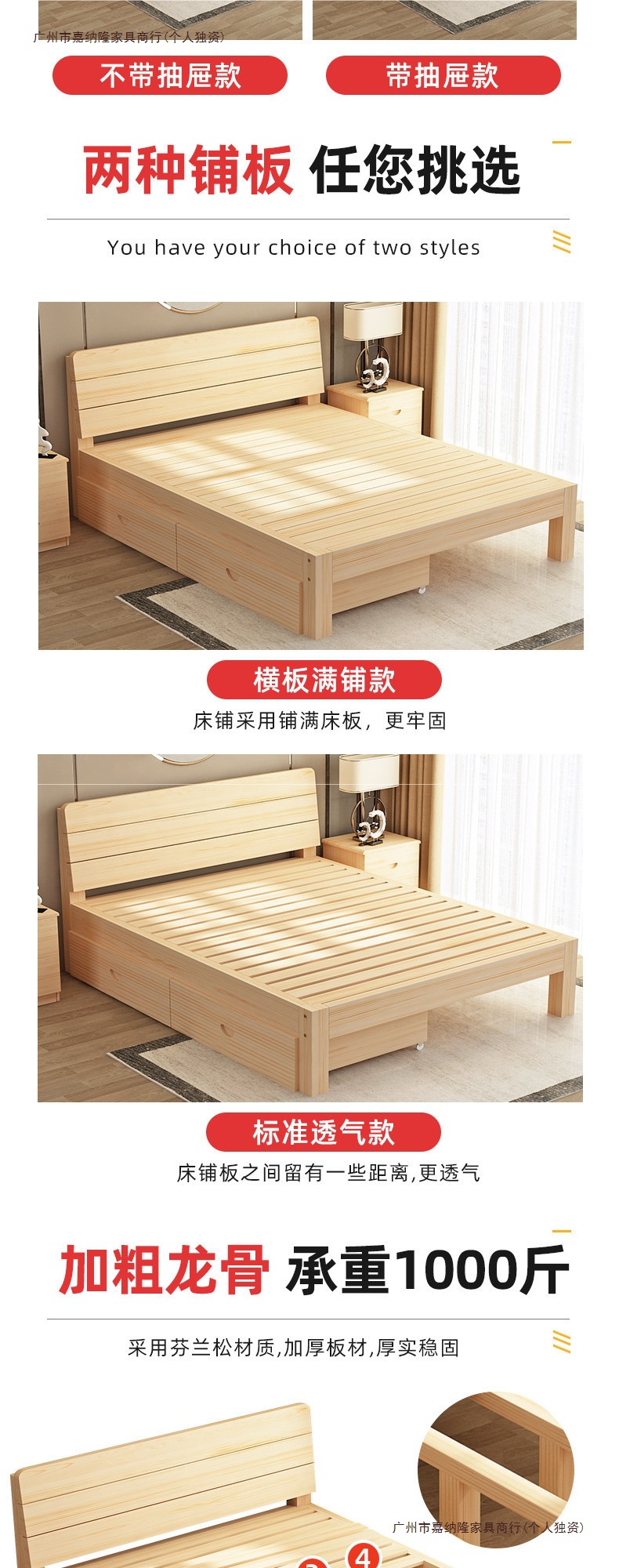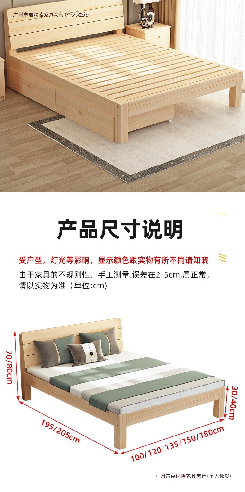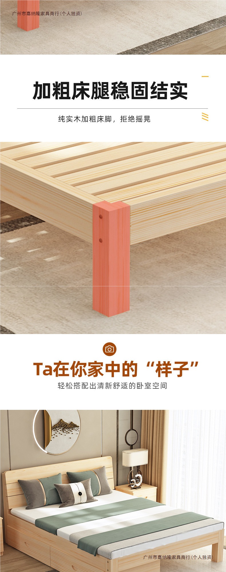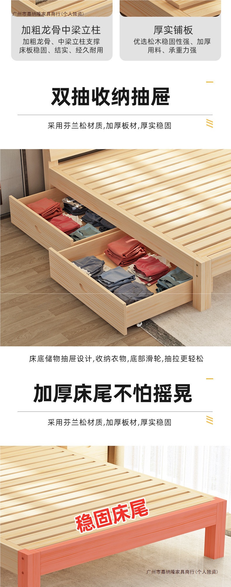 • 업그레이드된 원목 침대 침대 프레임 단일 조각