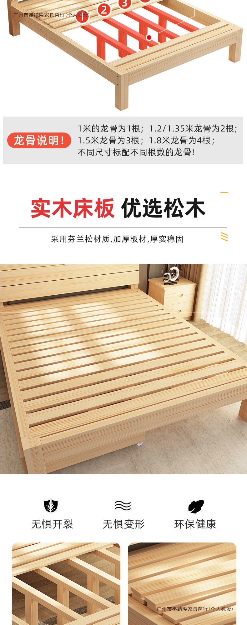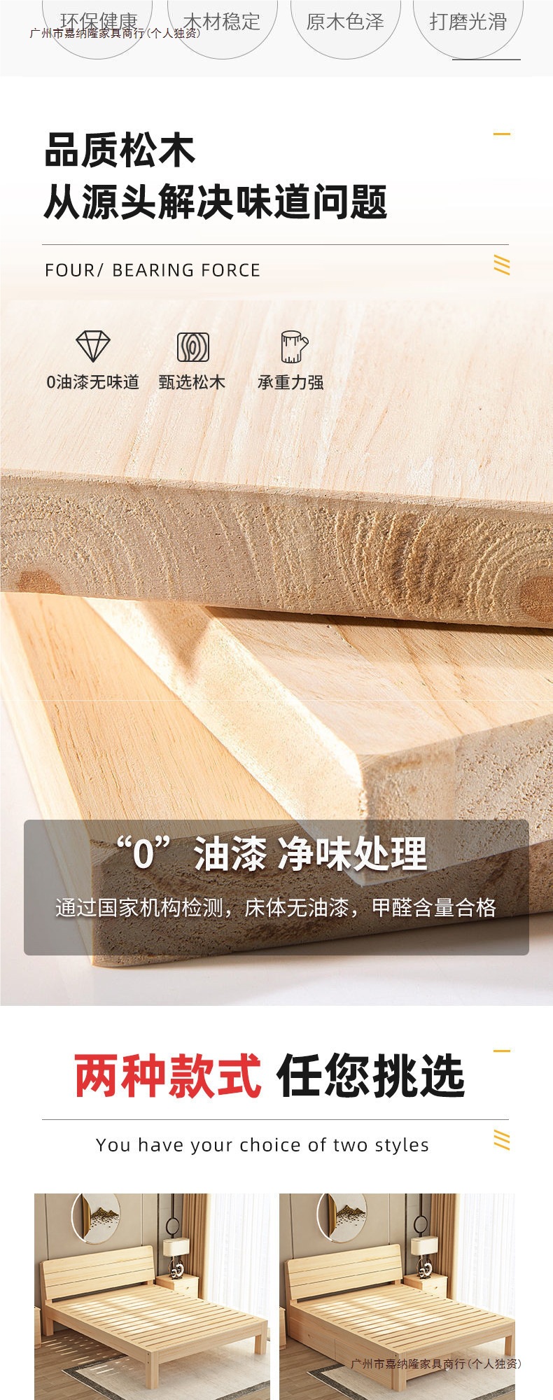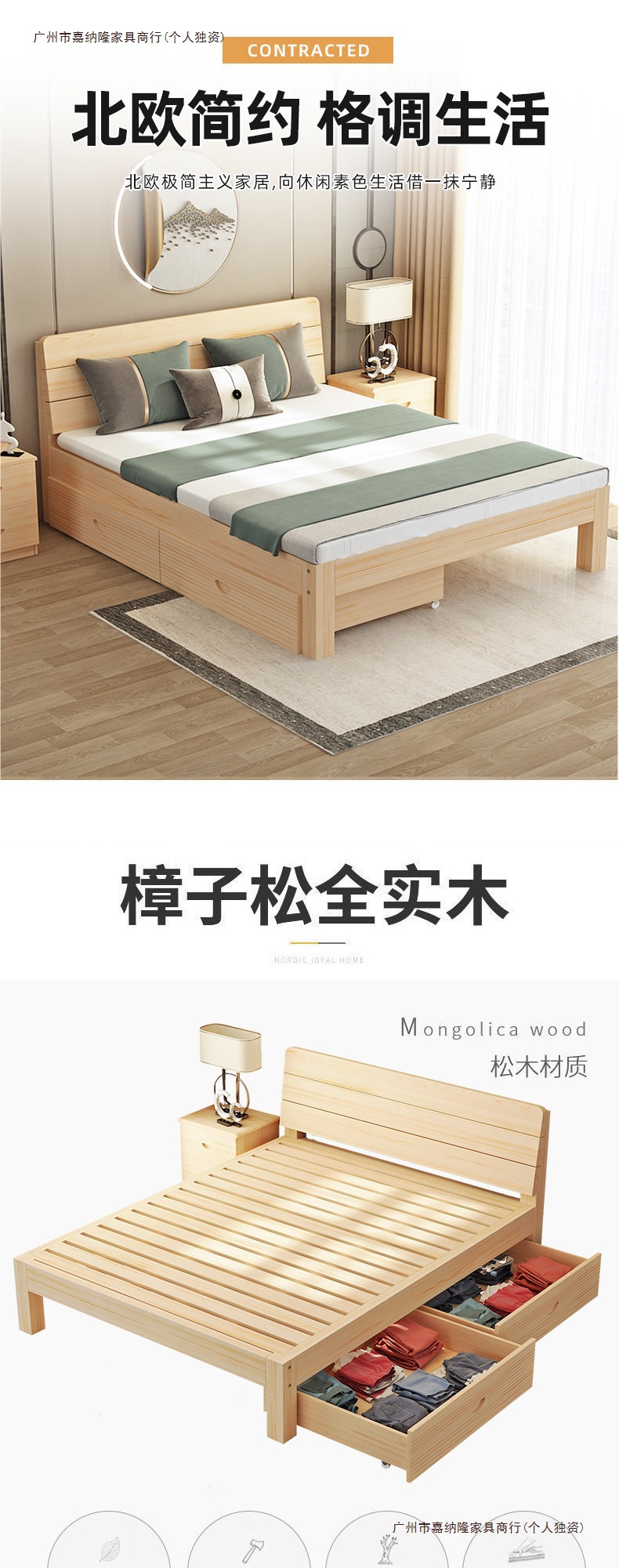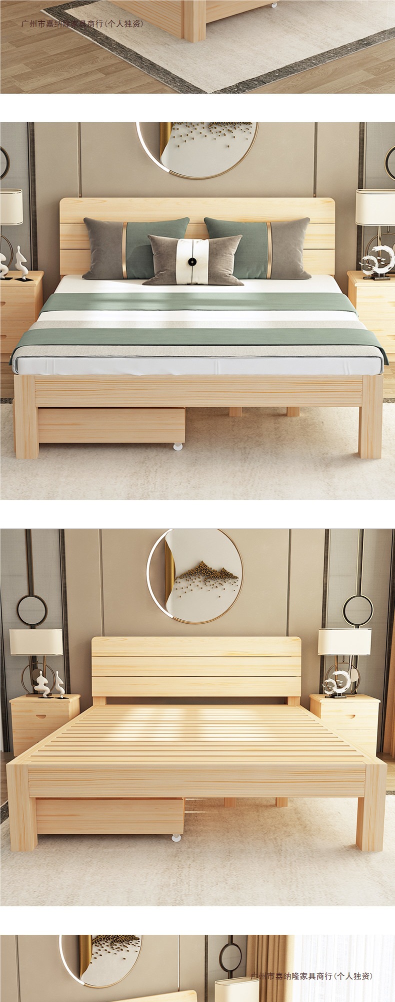 • 업그레이드된 원목 침대 침대 프레임 단일 조각