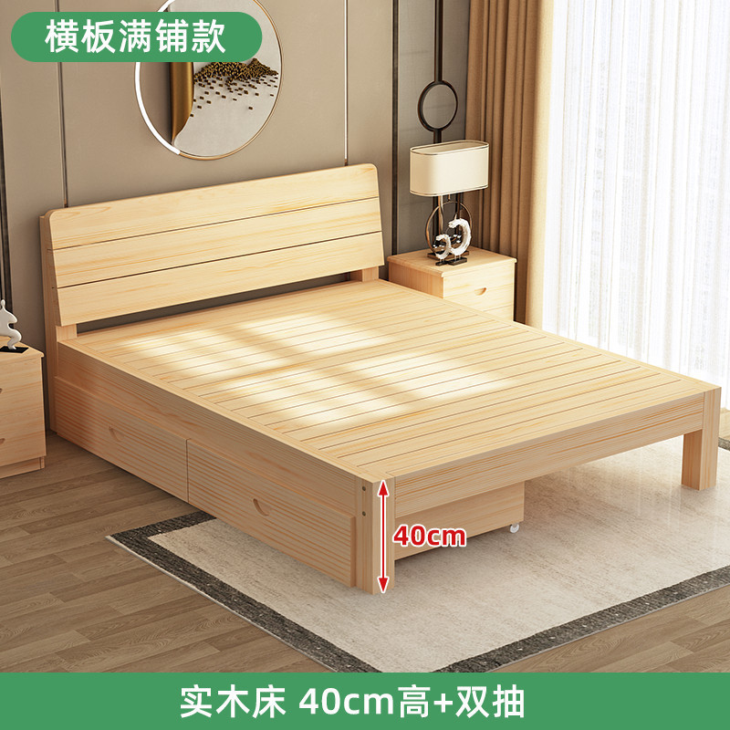 • 업그레이드된 원목 침대 프레임 - 높이 40 [가로형] + 이중 서랍 + 풀 침대