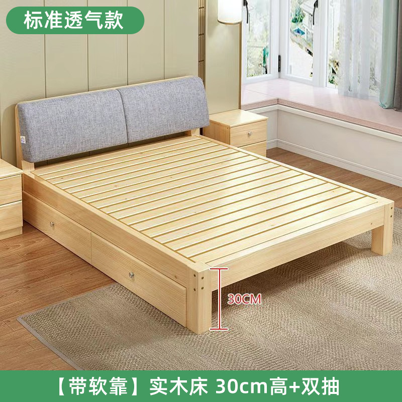 • 업그레이드된 원목 침대 프레임 - 높이 30 [통기성 스타일] + 더블 서랍 + 풀 침대 스타일