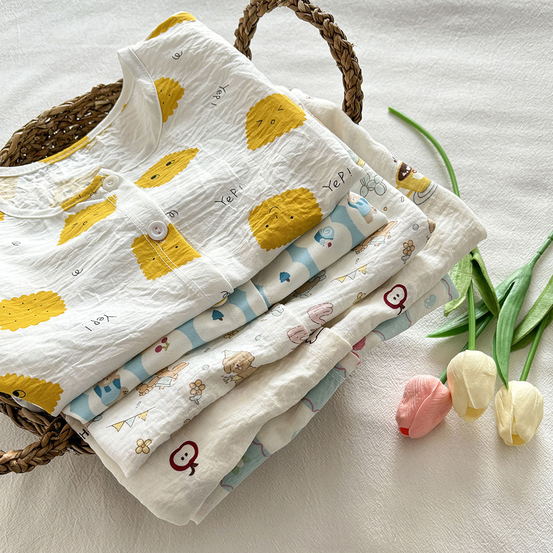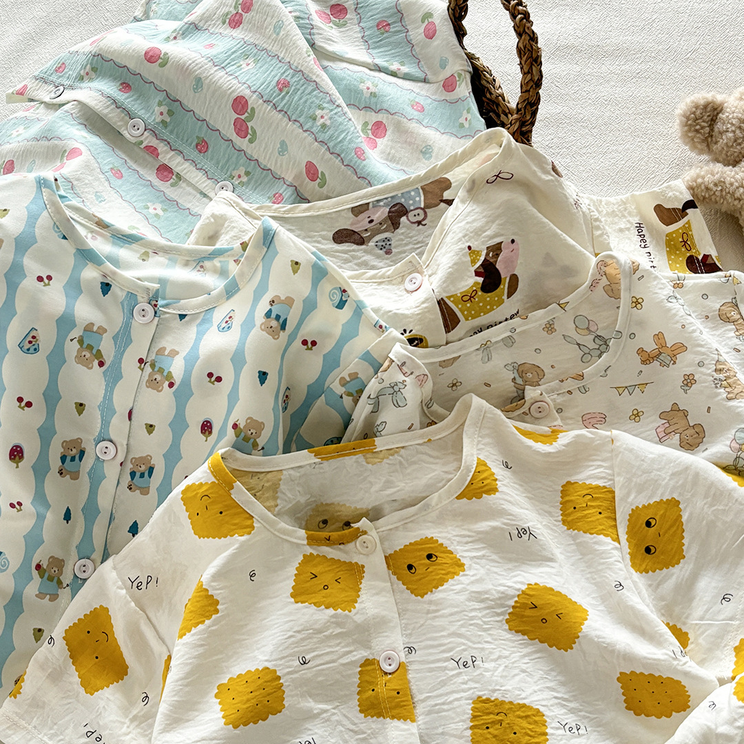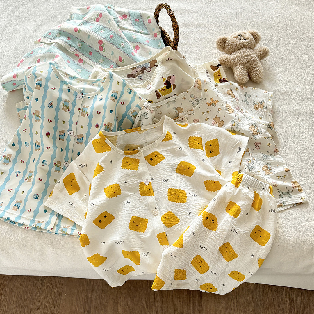 어린이 여름 가정 의류 세트 소녀 만화 구름 면화 잠옷 아기 소년 반팔 반바지 인쇄 에어컨 옷스토어 가기
