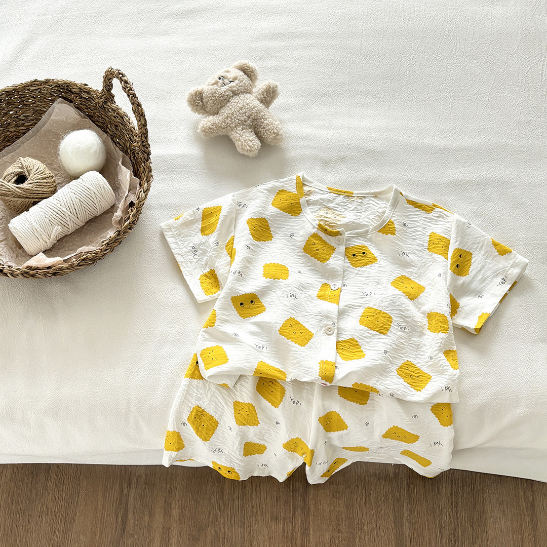 어린이 여름 가정 의류 세트 소녀 만화 구름 면화 잠옷 아기 소년 반팔 반바지 인쇄 에어컨 옷