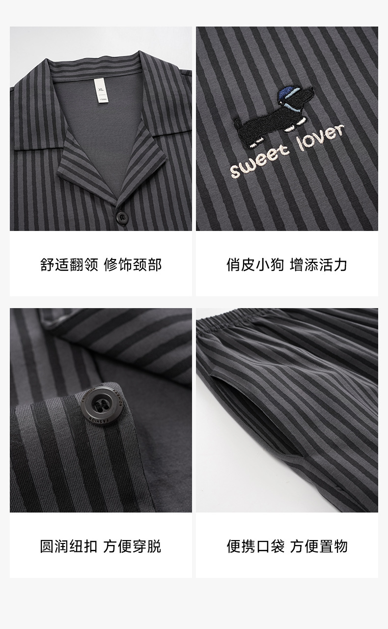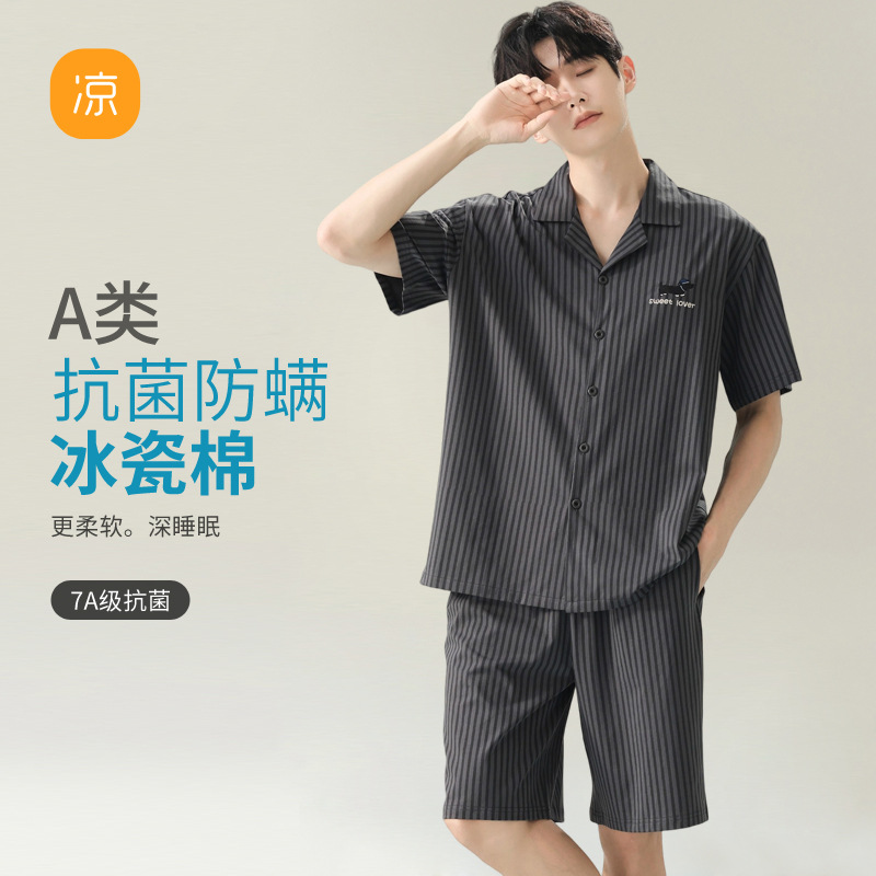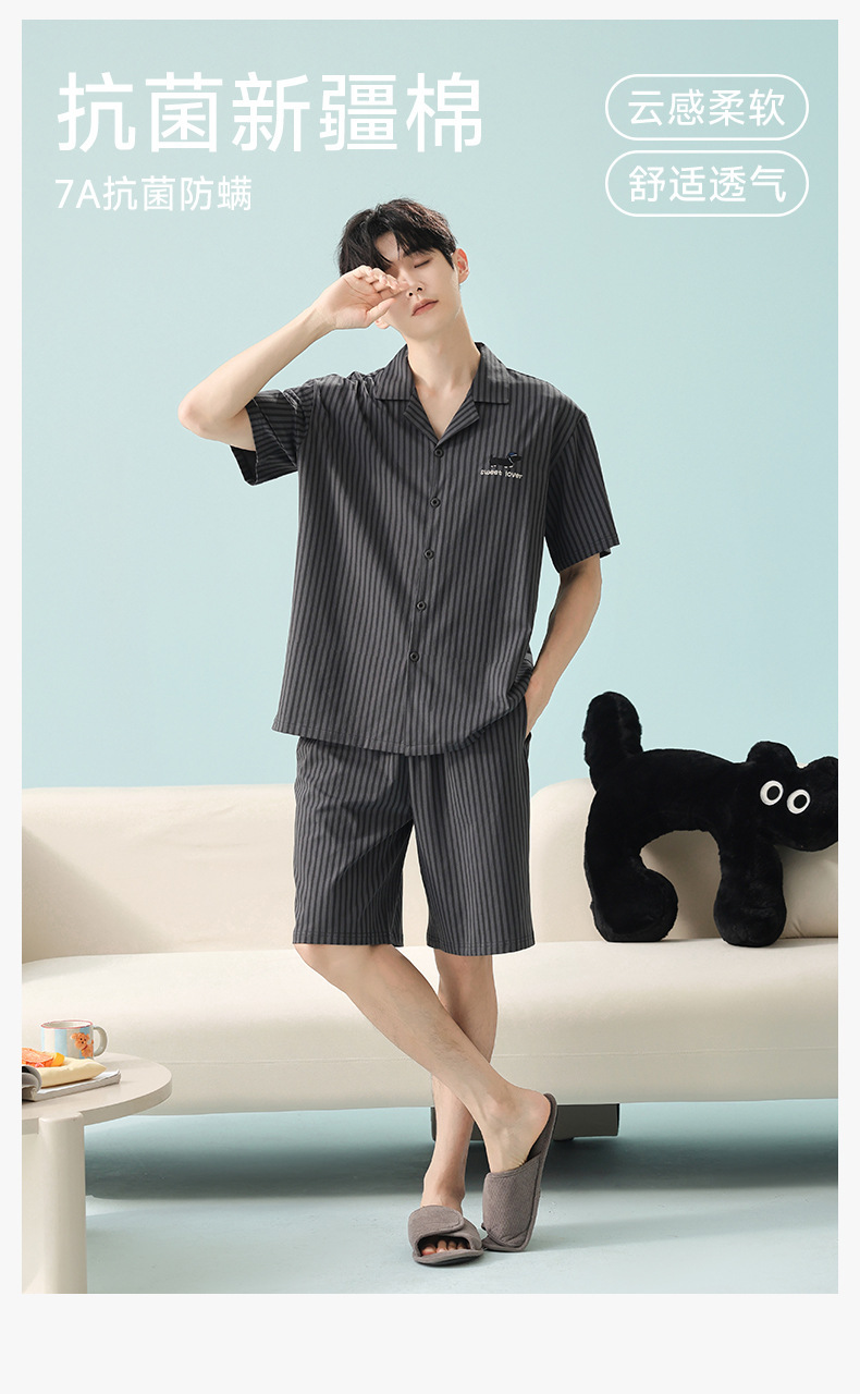 [항균 신장면] 봄 여름 남성 순면 반팔 잠옷 남성 여름 라지면 얇은 캐주얼 홈웨어스토어 가기