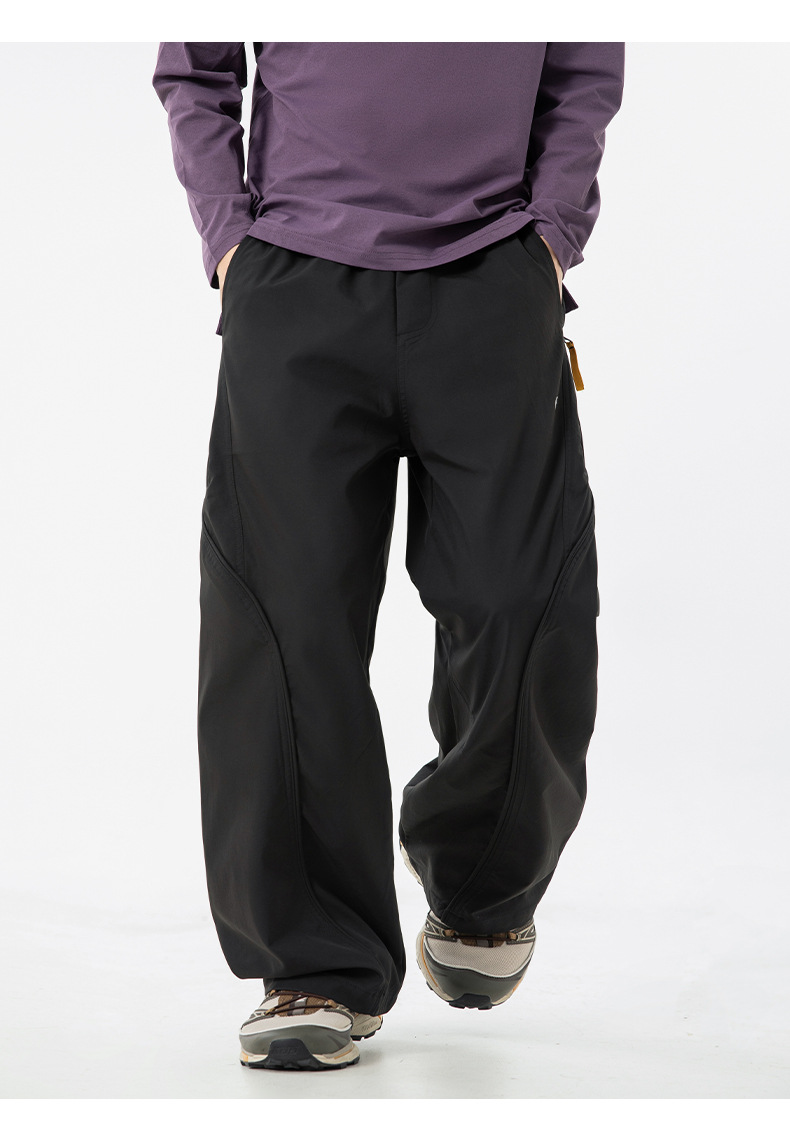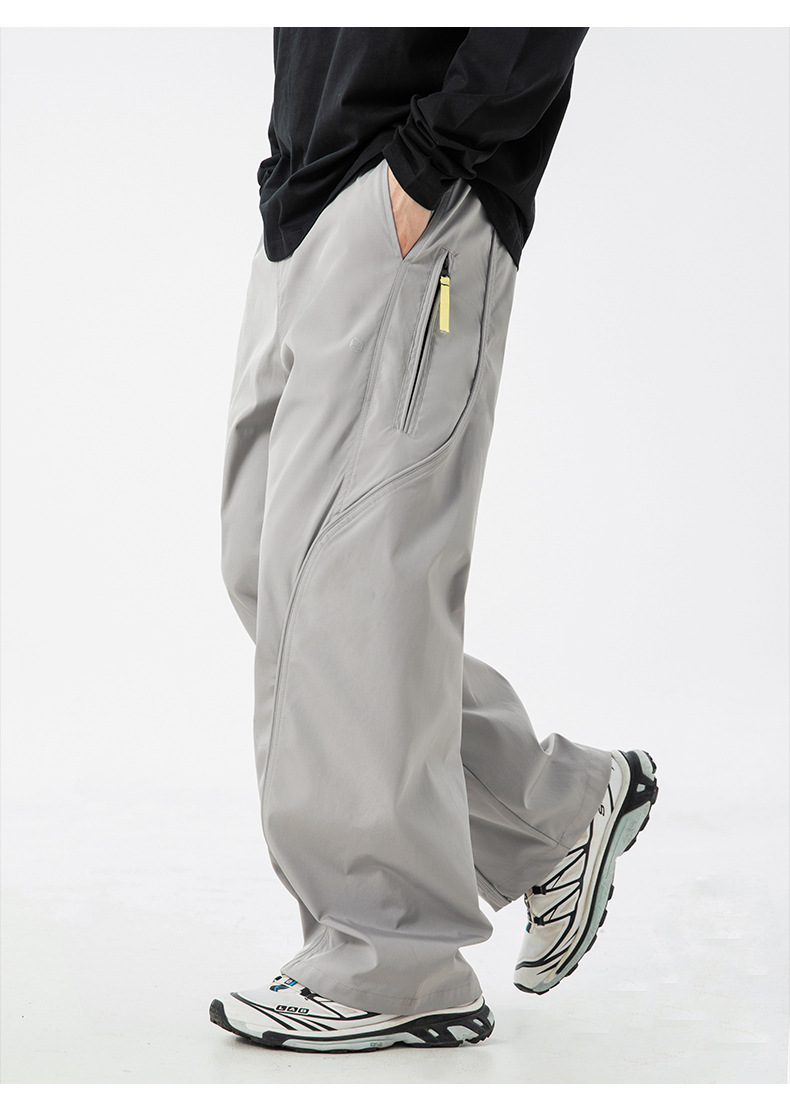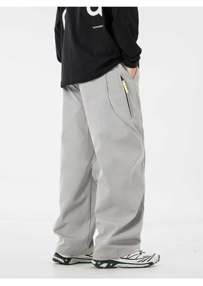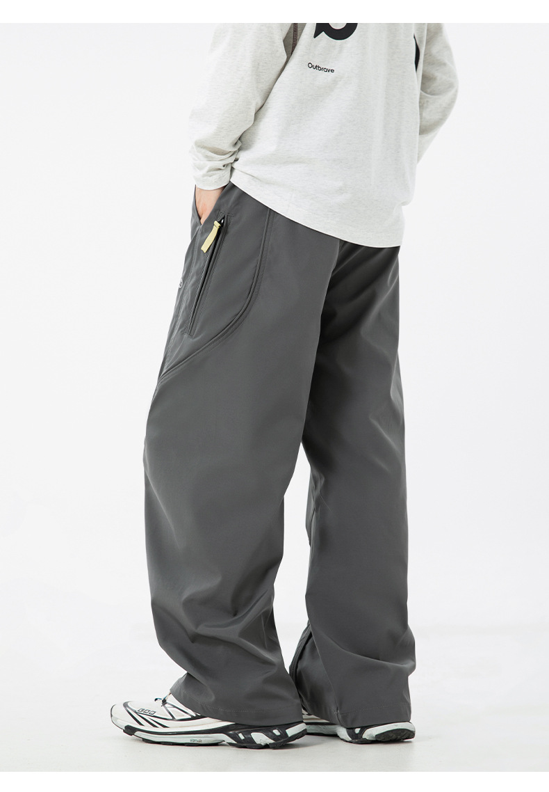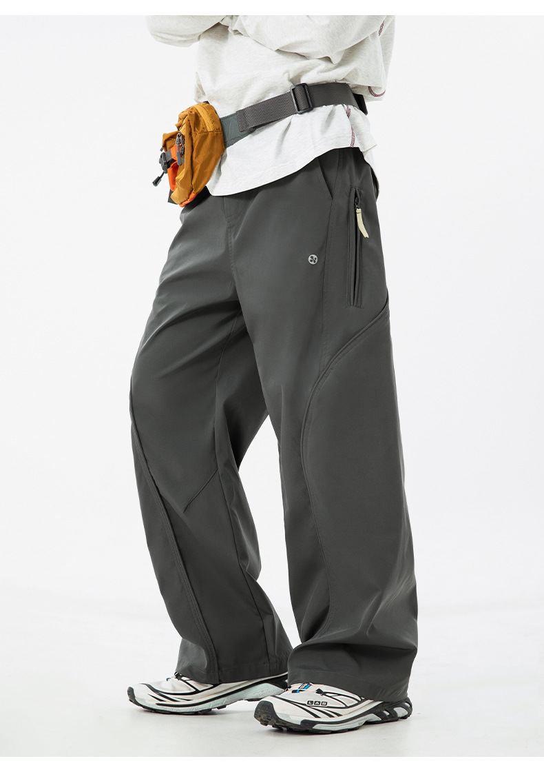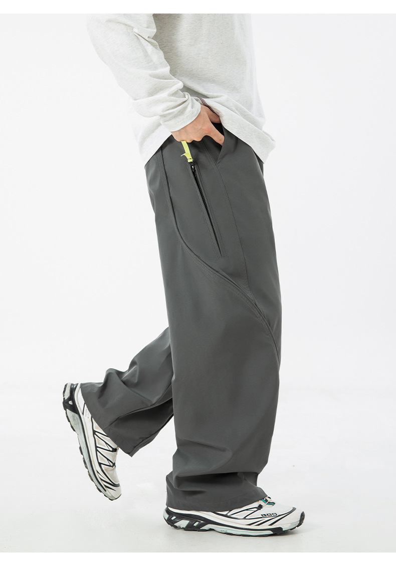 가을 남성용 아웃도어 기능성 발수 캐주얼 팬츠, 스트레이트 루즈 스플릿 팬츠, 지퍼 배색 웨빙 스웨트팬츠