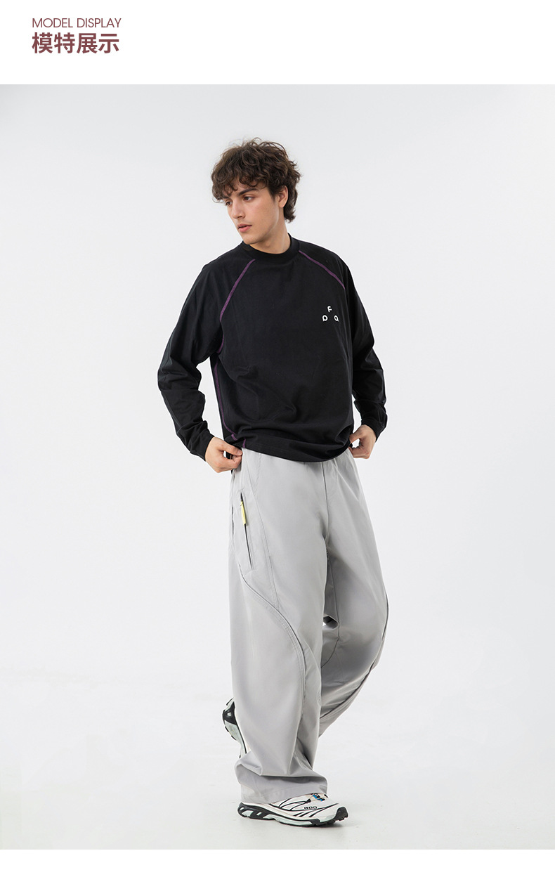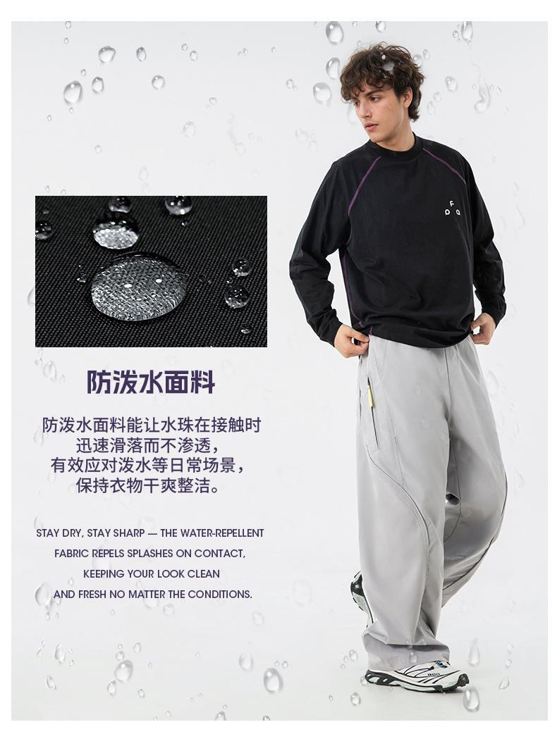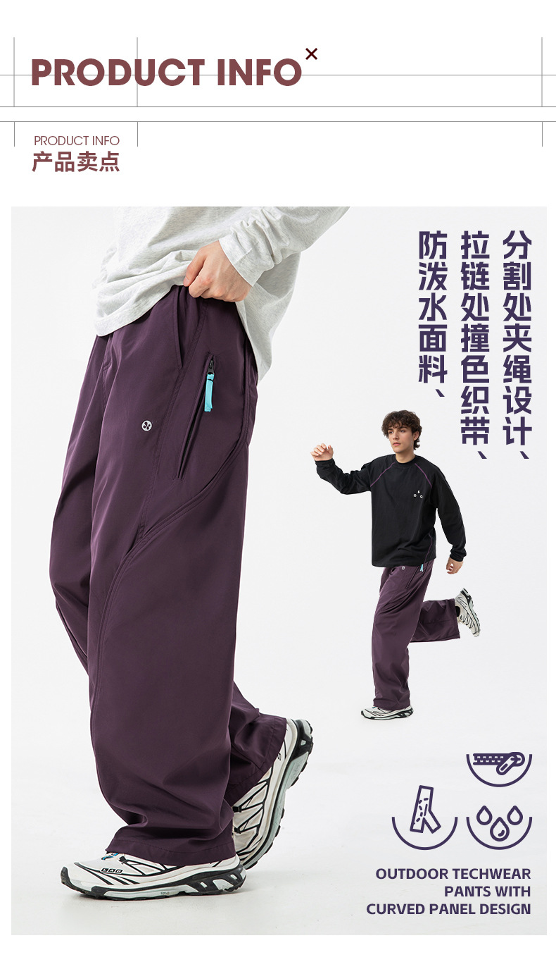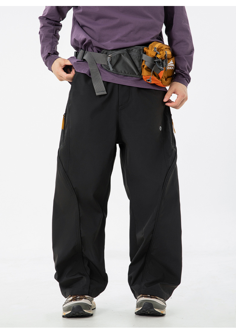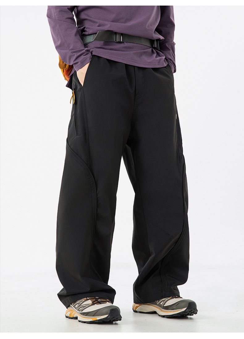 가을 남성용 아웃도어 기능성 발수 캐주얼 팬츠, 스트레이트 루즈 스플릿 팬츠, 지퍼 배색 웨빙 스웨트팬츠