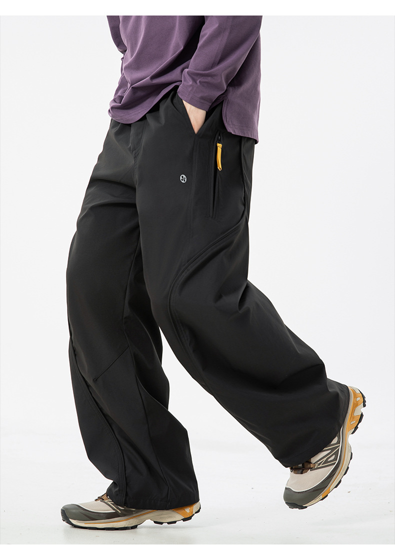 가을 남성용 아웃도어 기능성 발수 캐주얼 팬츠, 스트레이트 루즈 스플릿 팬츠, 지퍼 배색 웨빙 스웨트팬츠스토어 가기