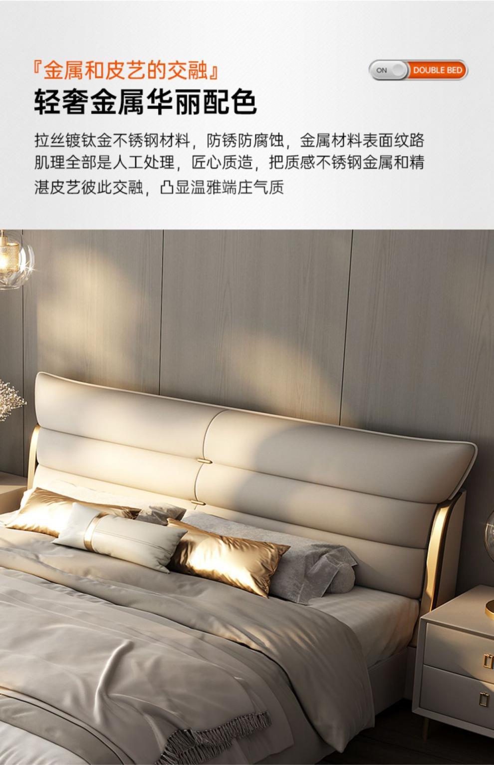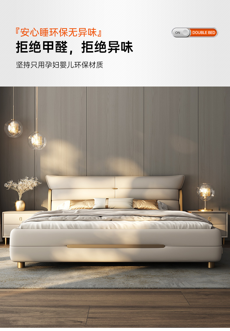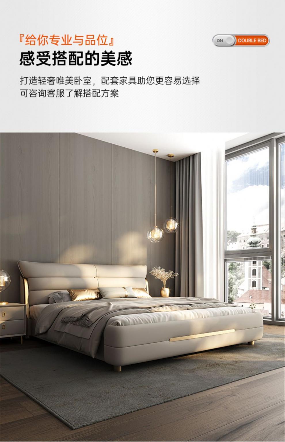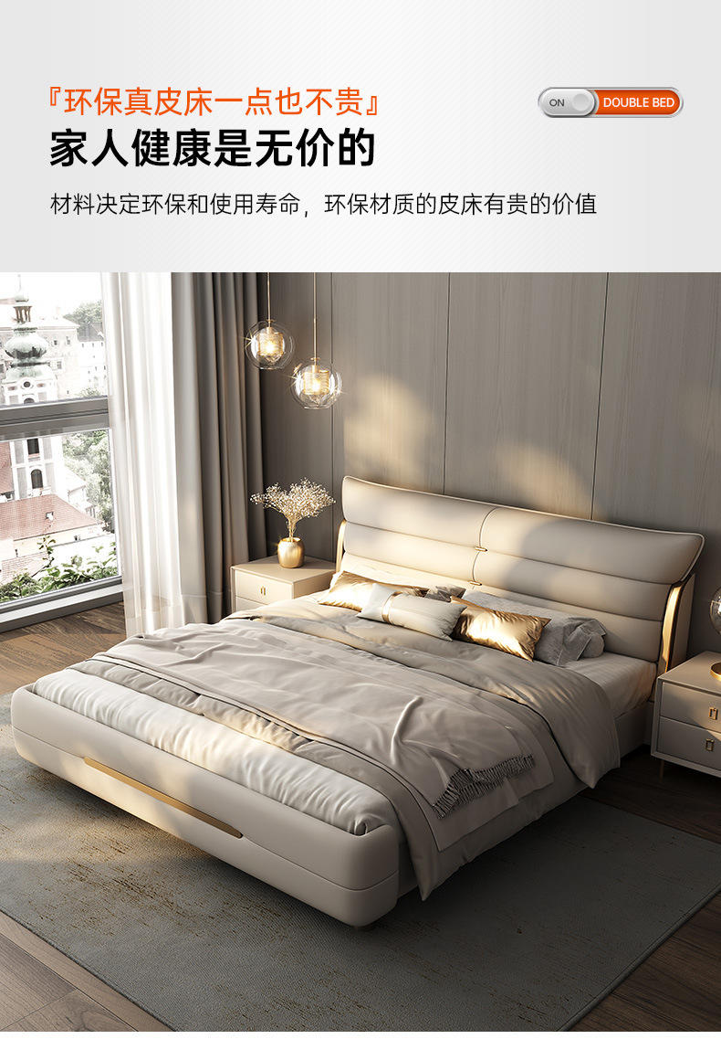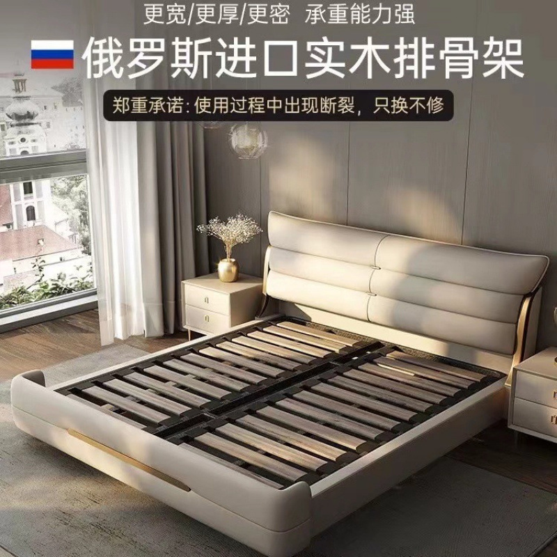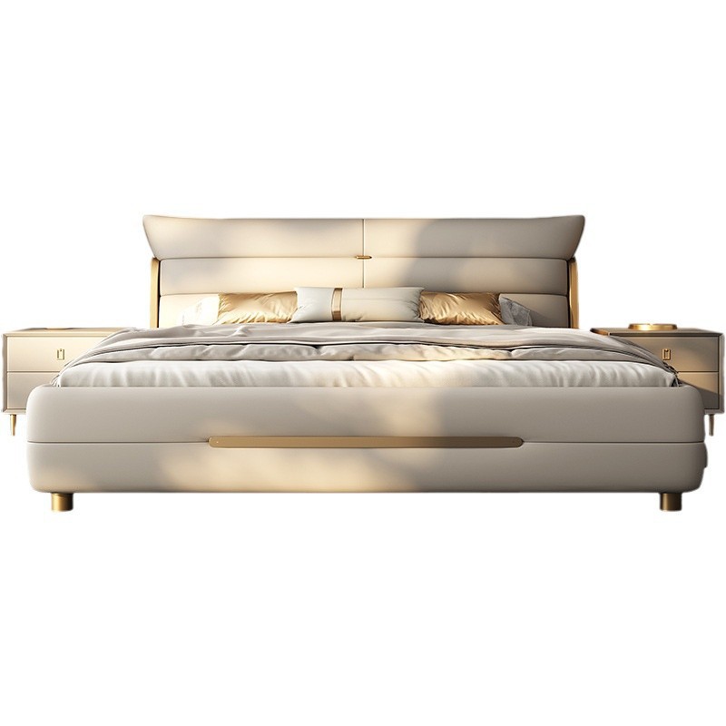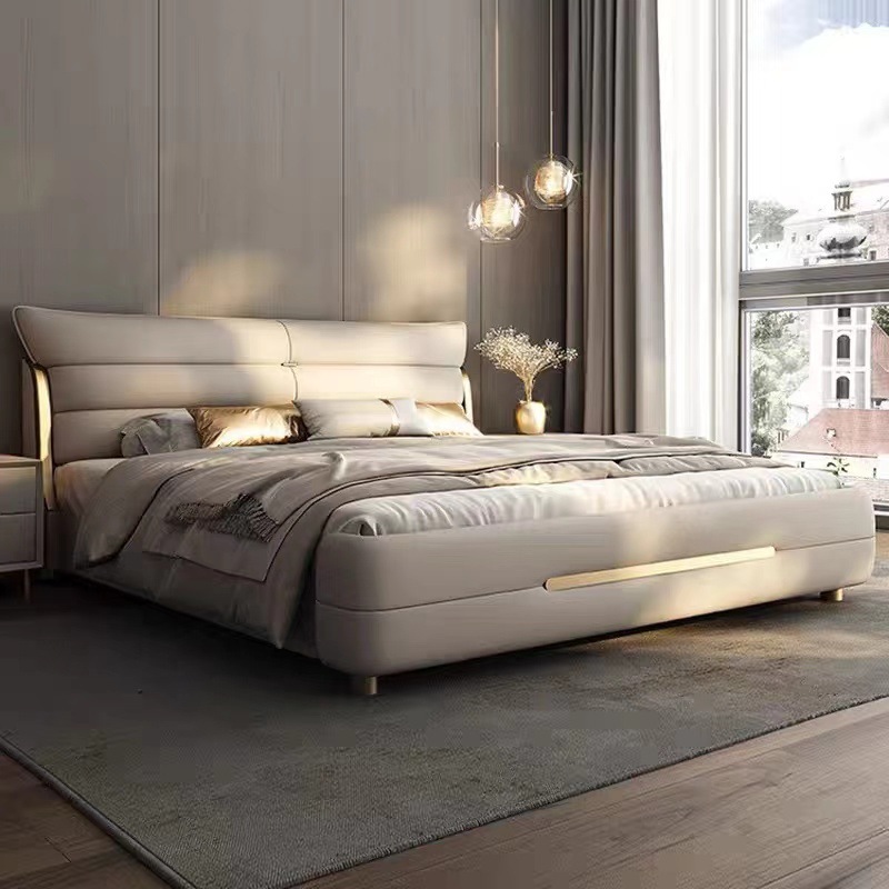 새로운 하이 엔드 라이트 럭셔리 마스터 침실 가죽 침대 더블 침대 이탈리아 스타일 현대 간단한 미니멀리스트 소프트 가방 럭셔리 웨딩 침대