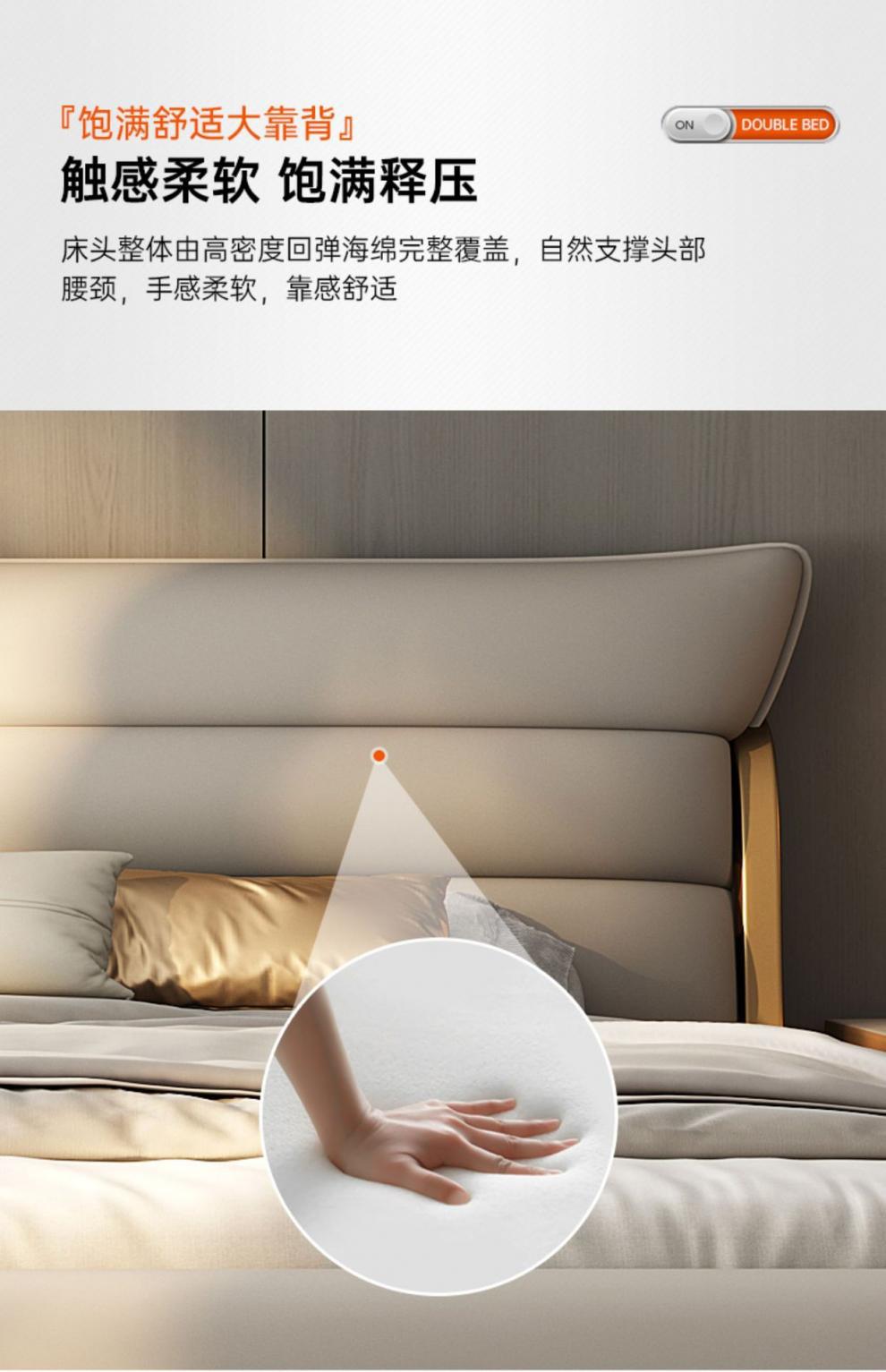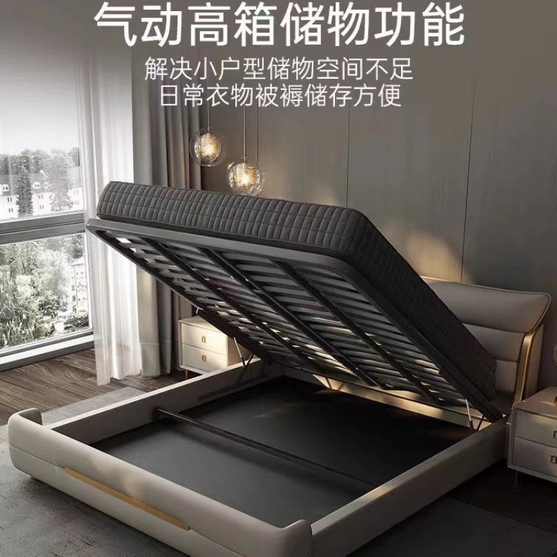 새로운 하이 엔드 라이트 럭셔리 마스터 침실 가죽 침대 더블 침대 이탈리아 스타일 현대 간단한 미니멀리스트 소프트 가방 럭셔리 웨딩 침대스토어 가기