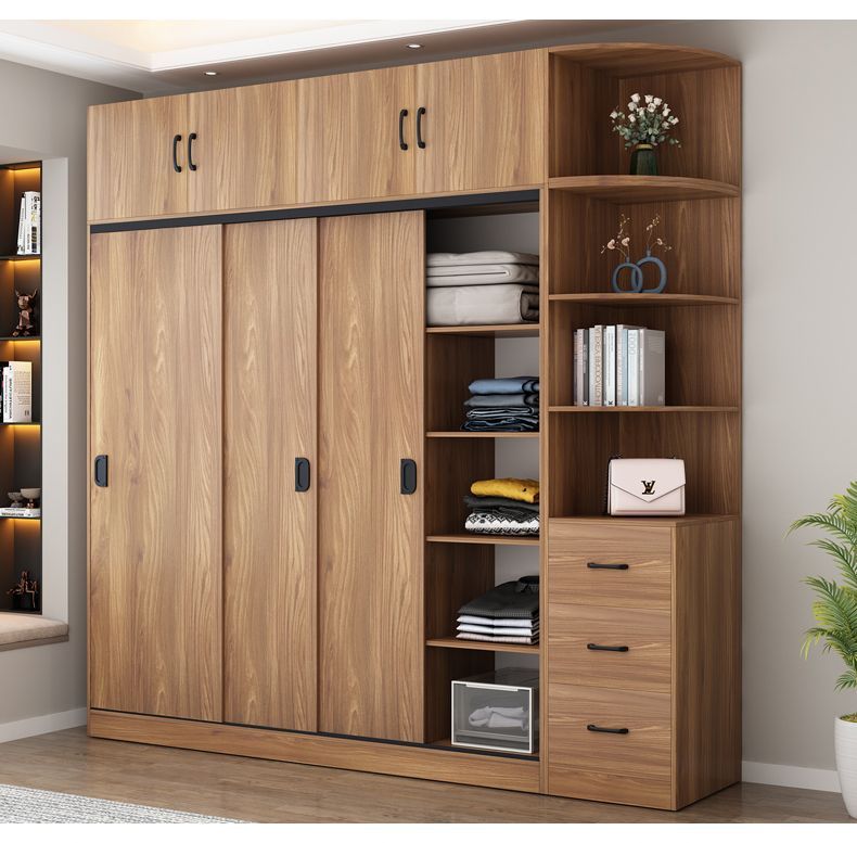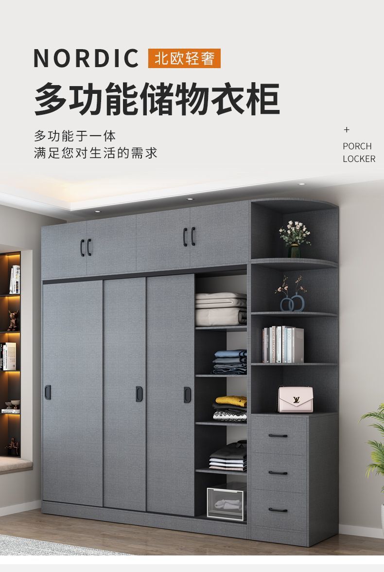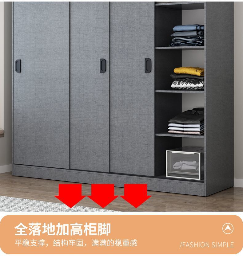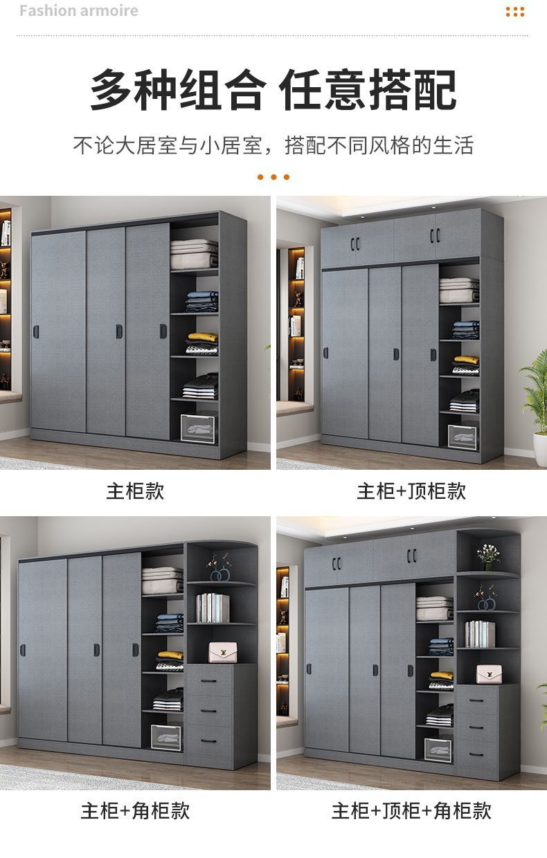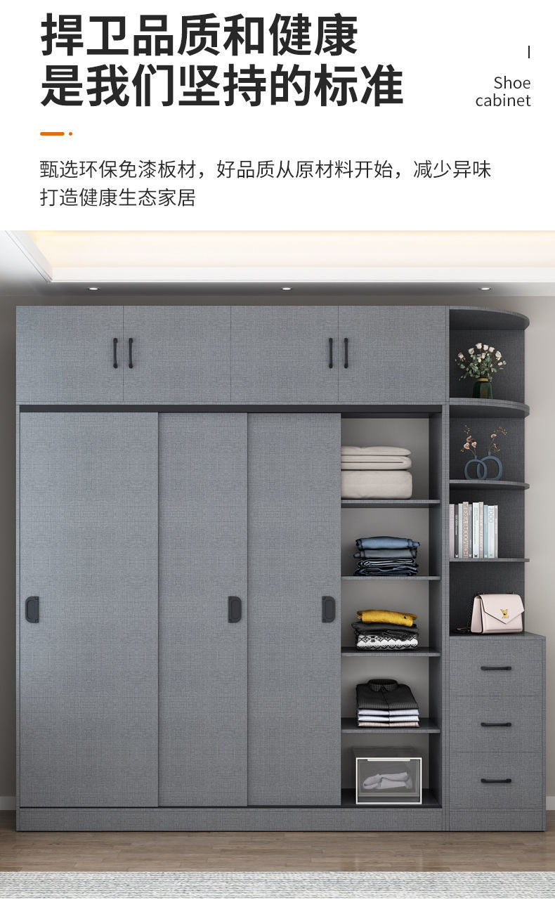옷장 홈 침실 슬라이딩 도어 보관 캐비닛 간단한 현대 대용량 옷장 임대실 단단한 나무 보관 캐비닛