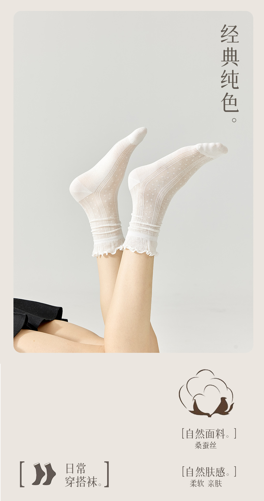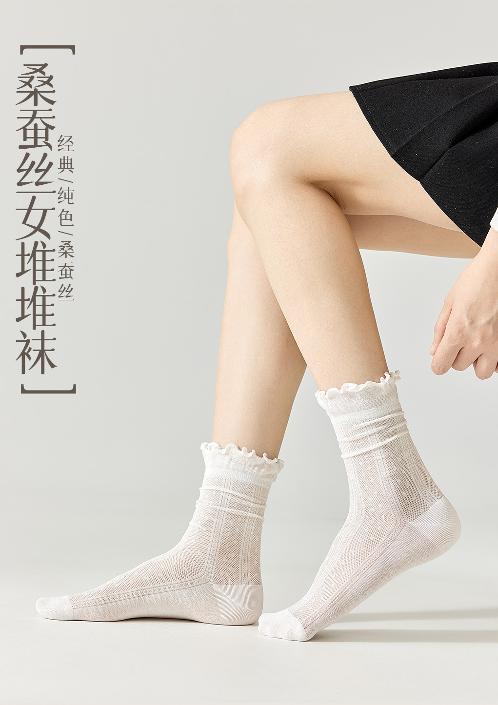뽕나무 실크 양말 여름용 얇은 스타일의 월더플라워 롱삭스 시원하고 통기성 좋은 캐주얼 무봉제 롱삭스 도매