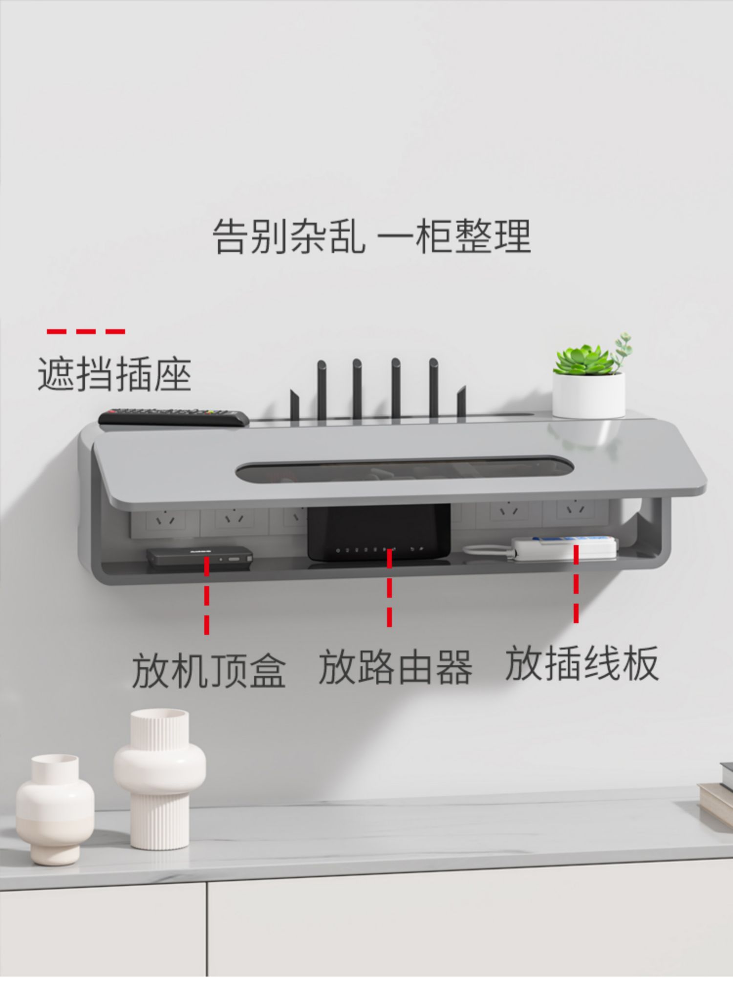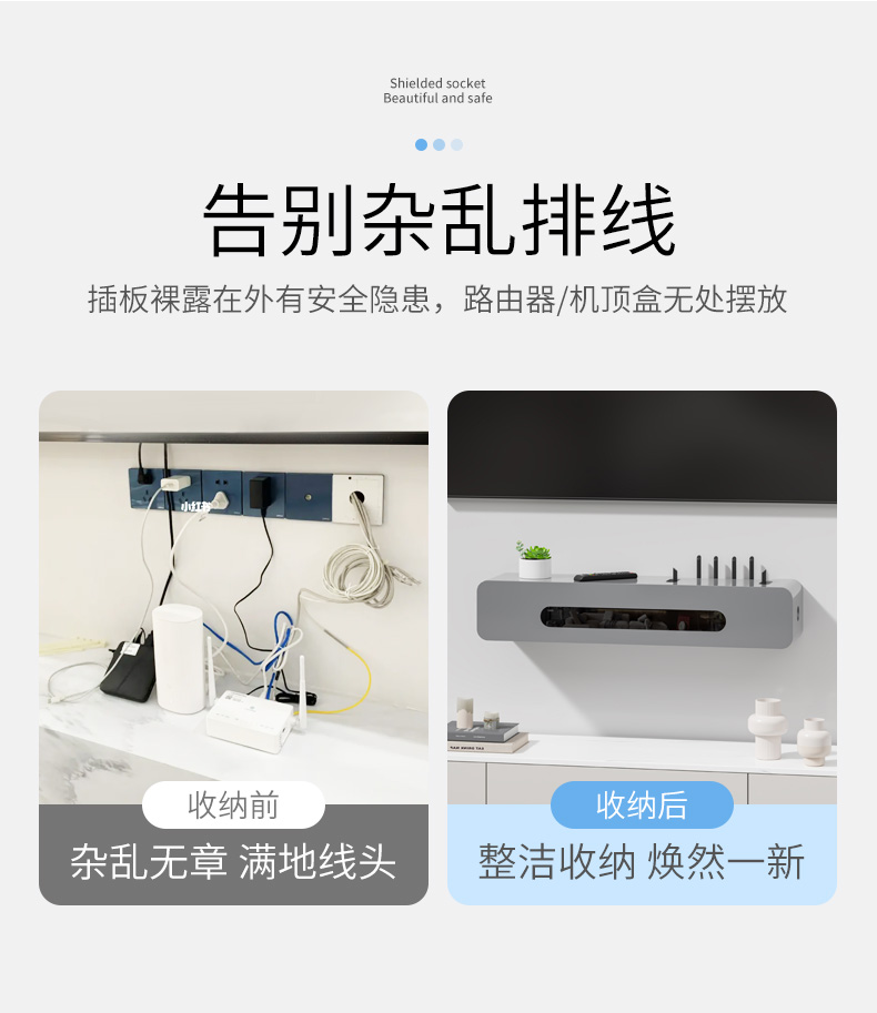 TV 셋톱박스 선반, 무펀치 Wi-Fi 라우터 보관함, 벽면 전선 소켓 차단 장식 캐비닛