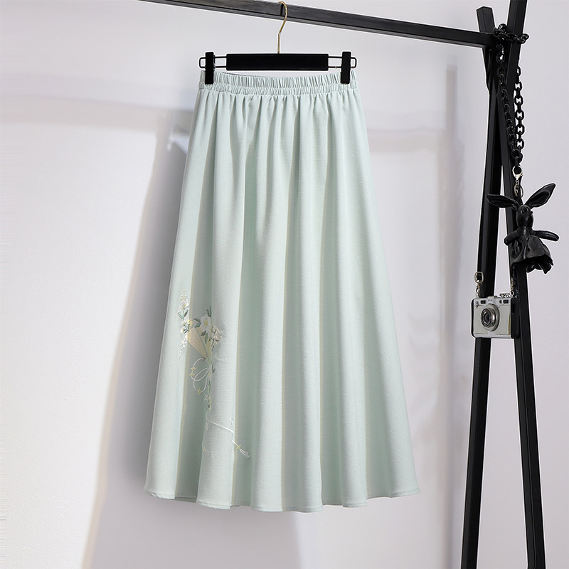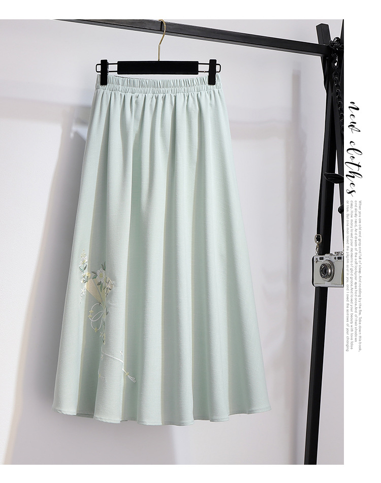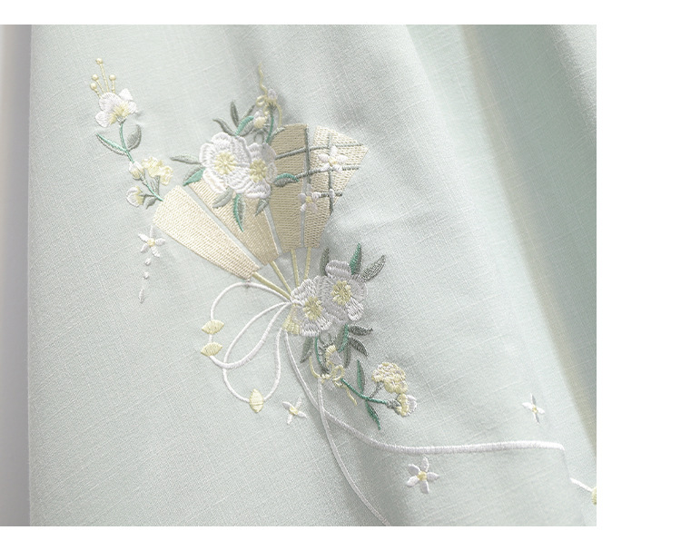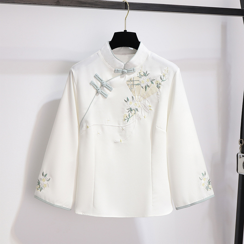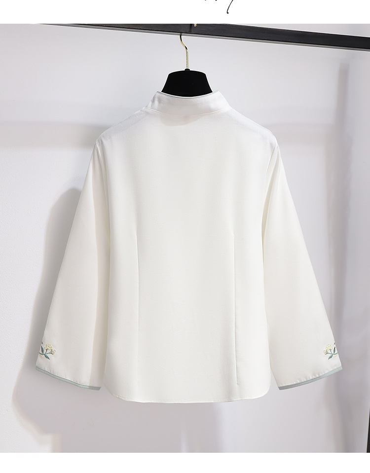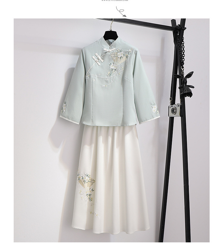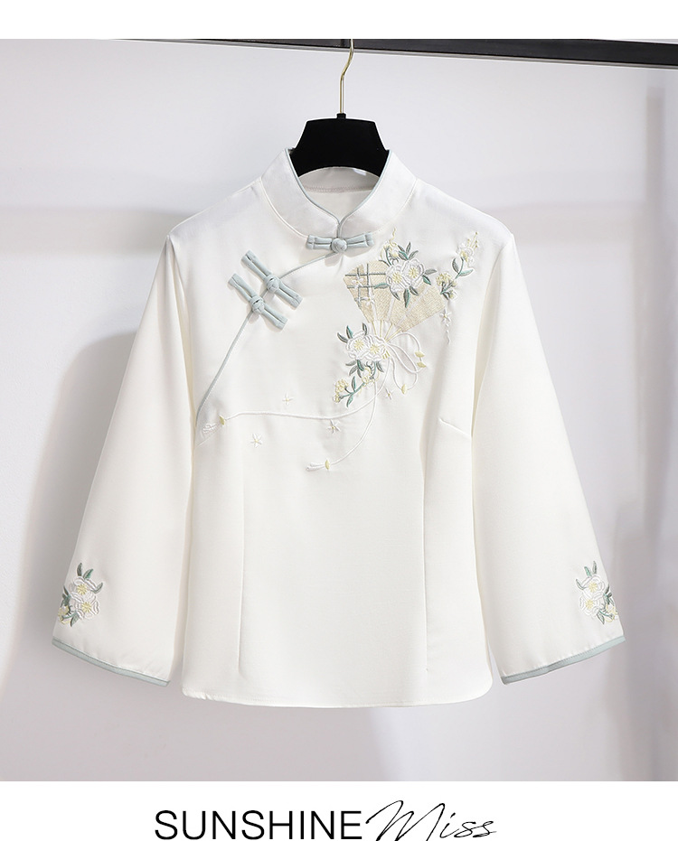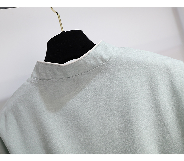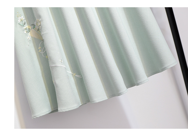 민족 스타일 여성 치파오 탑 당나라 양복 투피스 세트 가을, 여름 새로운 면 및 린넨 자수 한 요소 Hanfu 차 의류스토어 가기