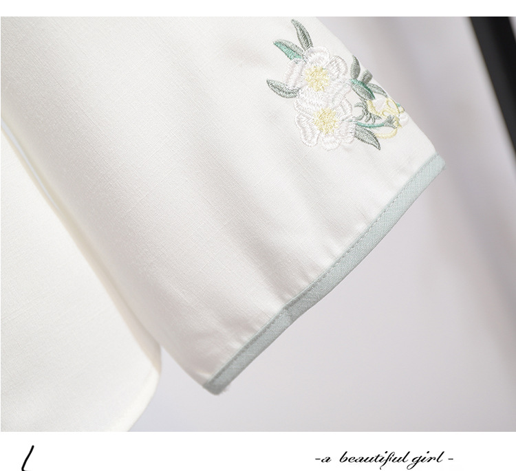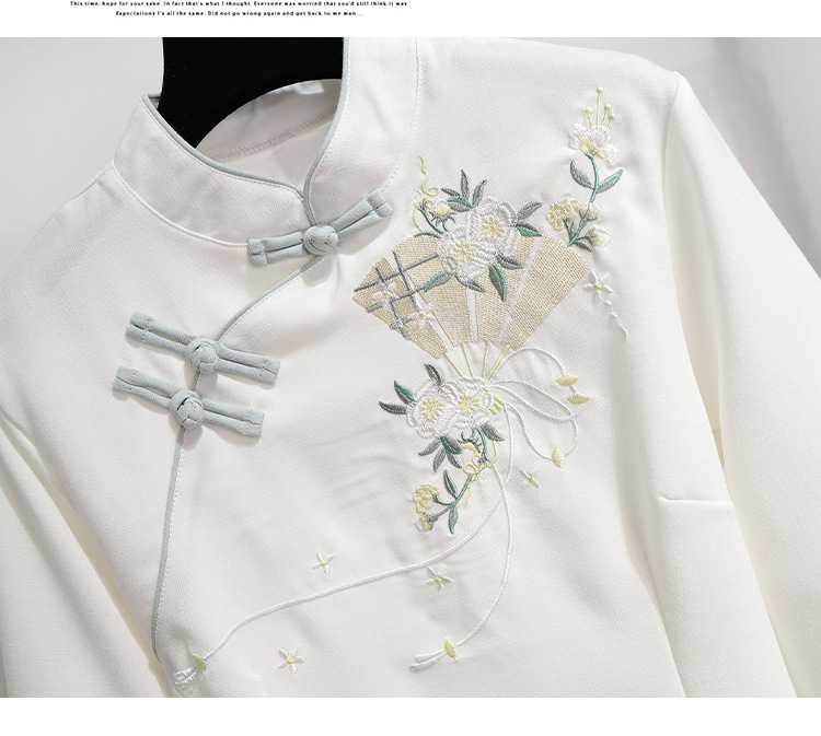 민족 스타일 여성 치파오 탑 당나라 양복 투피스 세트 가을, 여름 새로운 면 및 린넨 자수 한 요소 Hanfu 차 의류