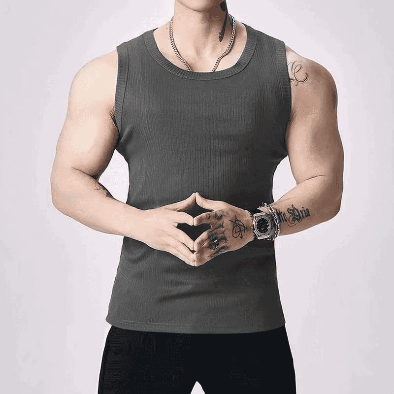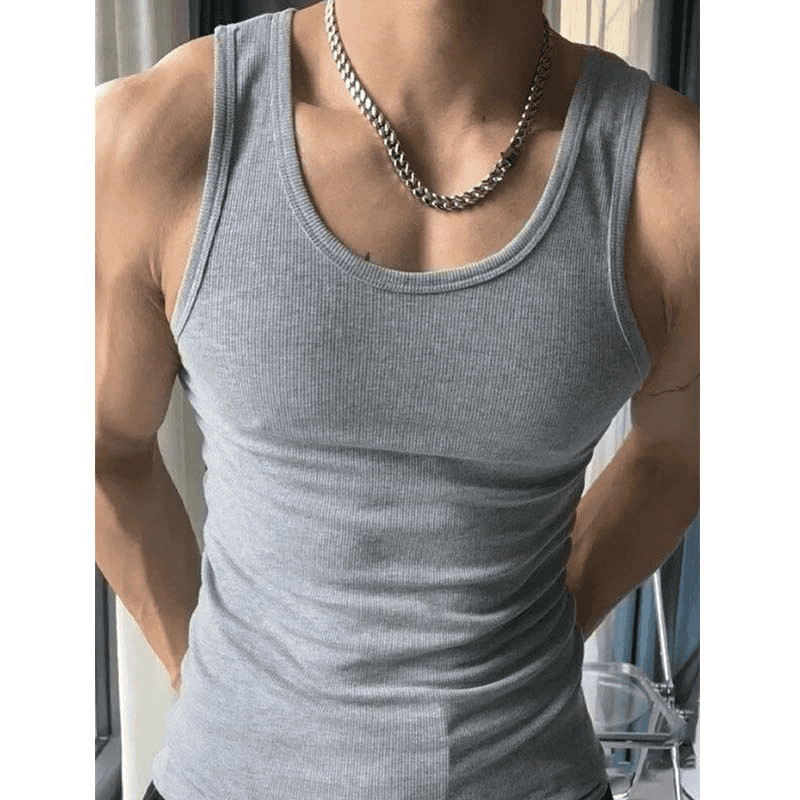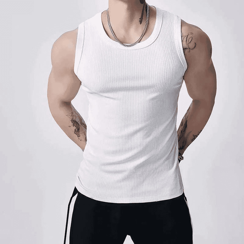 【틱톡 인기상품】여름 신상 남성용 스포츠 조끼 아이스 실크 골지 쿨링 탑 슬림핏 피트니스 조끼 트렌디