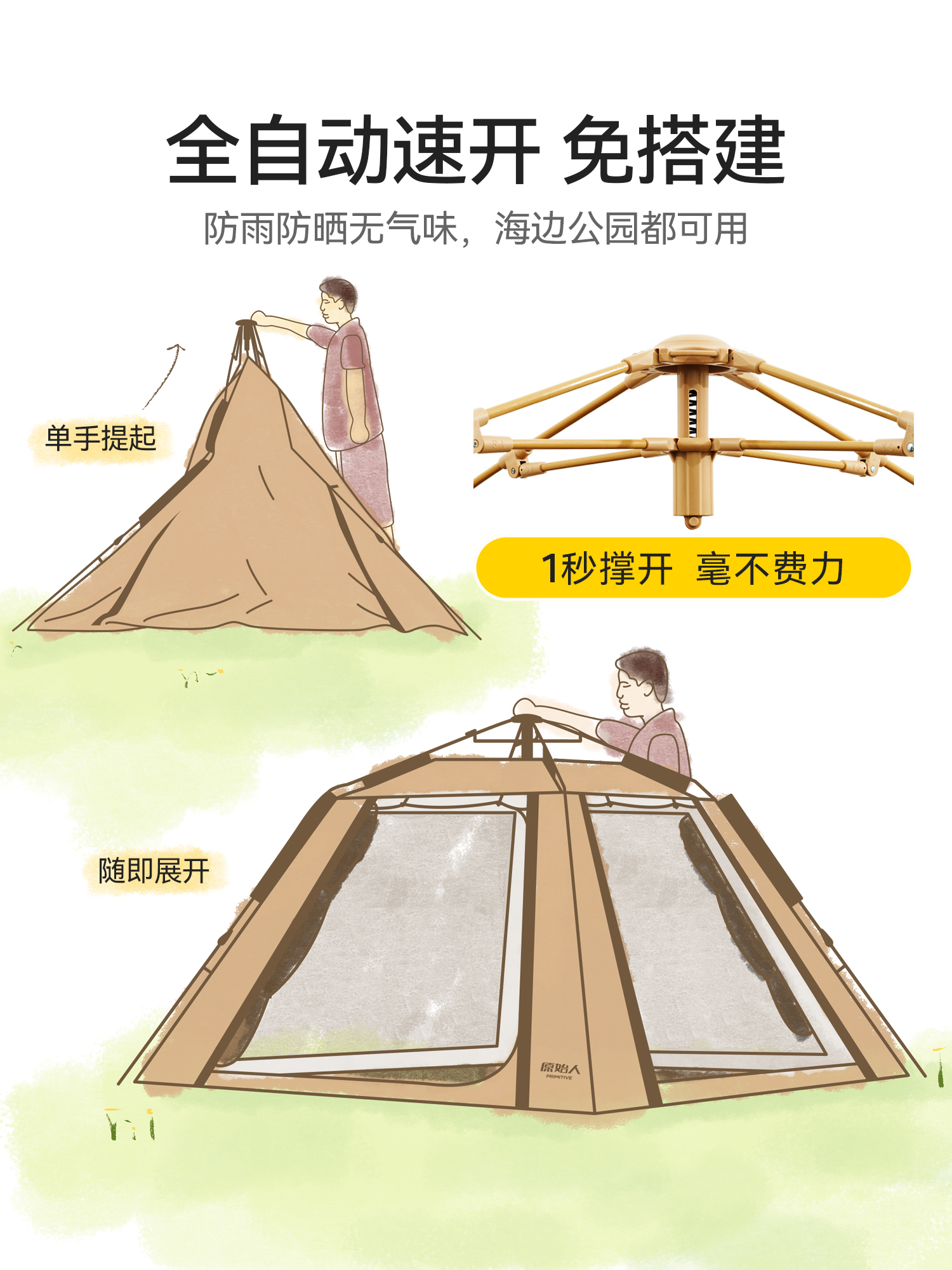 ☥ 텐트 야외 휴대용 접이식 자동 야외 캠핑 장비 캠핑 밤새도록 두꺼운 방지 장비 전체 세트스토어 가기