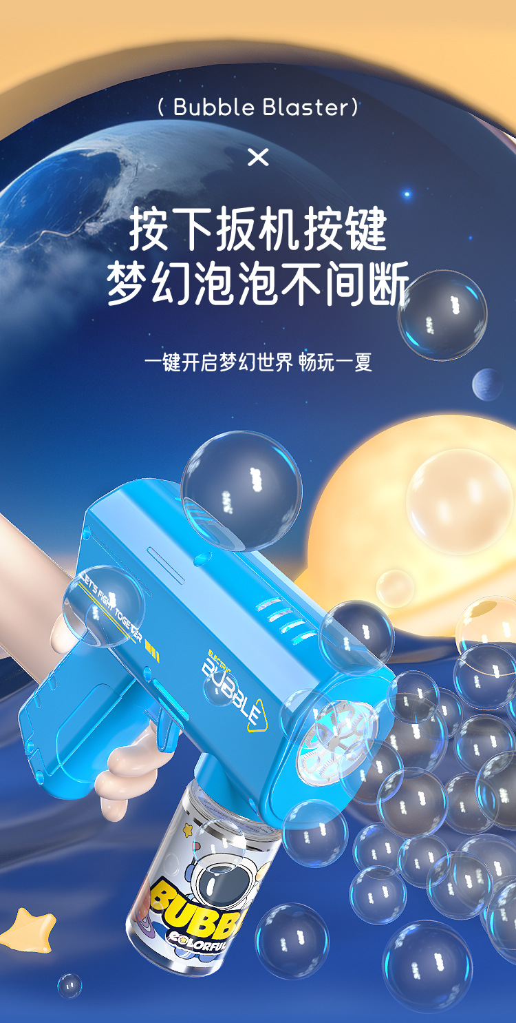 새로운 공간 6 홀 어린이 전기 휴대용 버블 머신 완전 자동 버블 건 소년 장난감 방수 9 도매스토어 가기