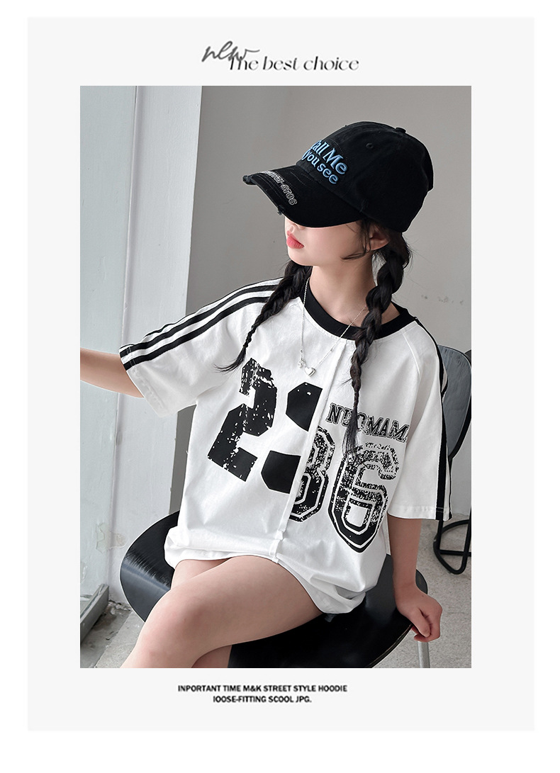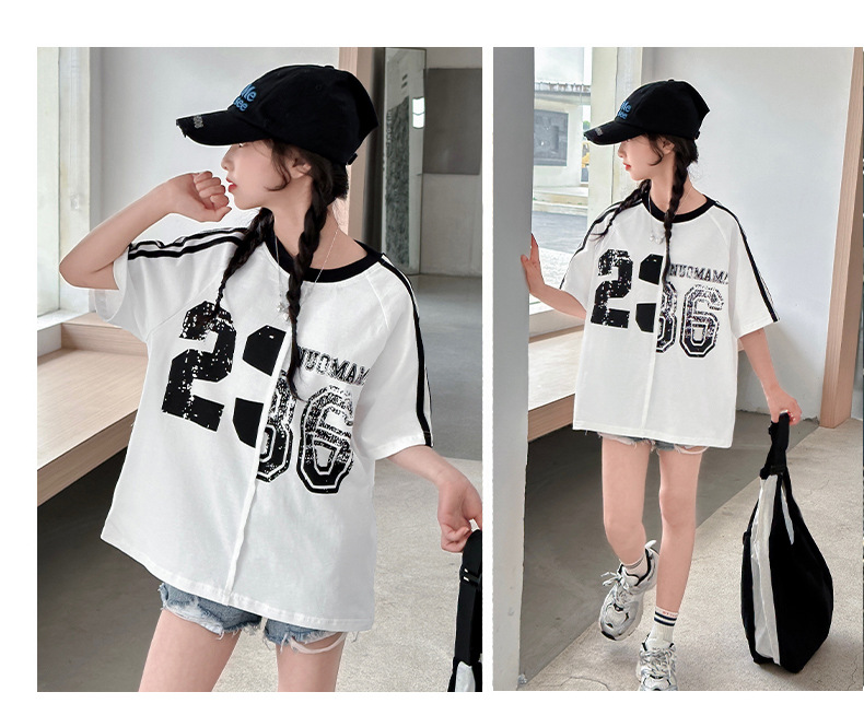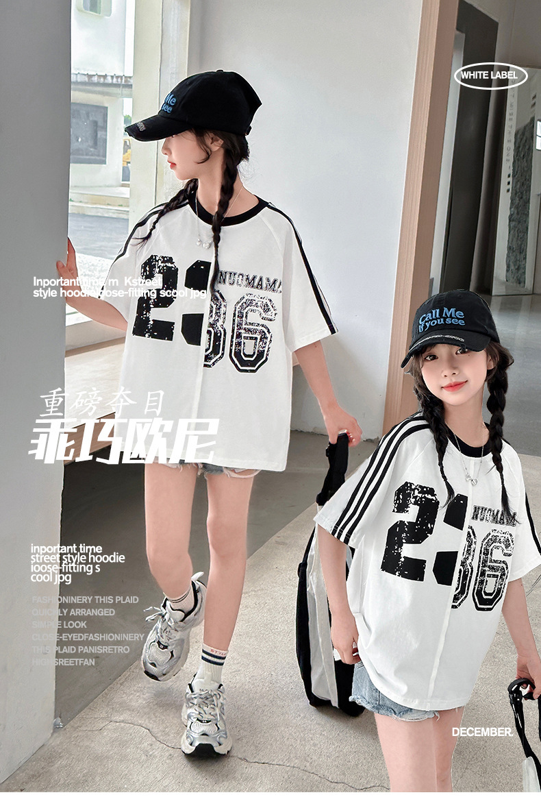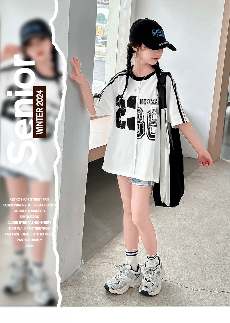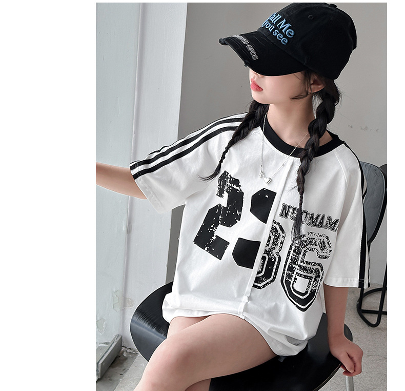 여름용 여아 반팔 패션 트렌디 쿨 루즈핏 티셔츠 라운드넥 중간 길이 힙합 재즈 댄스 상의 면