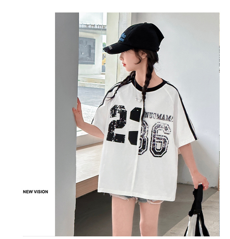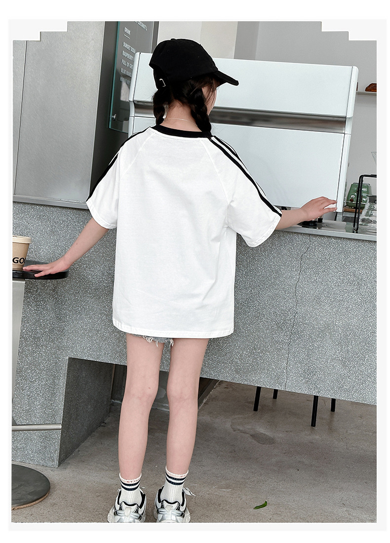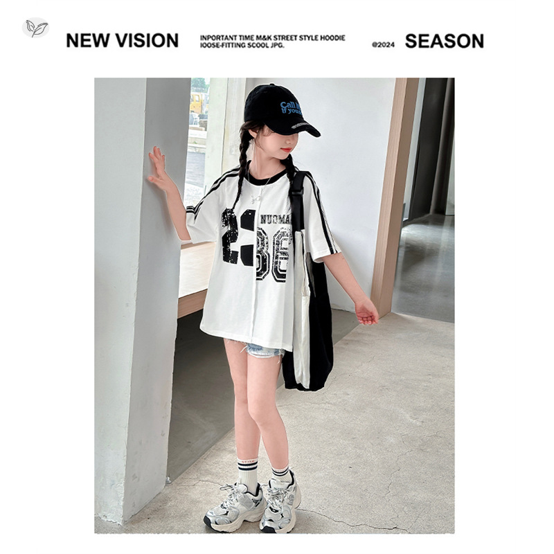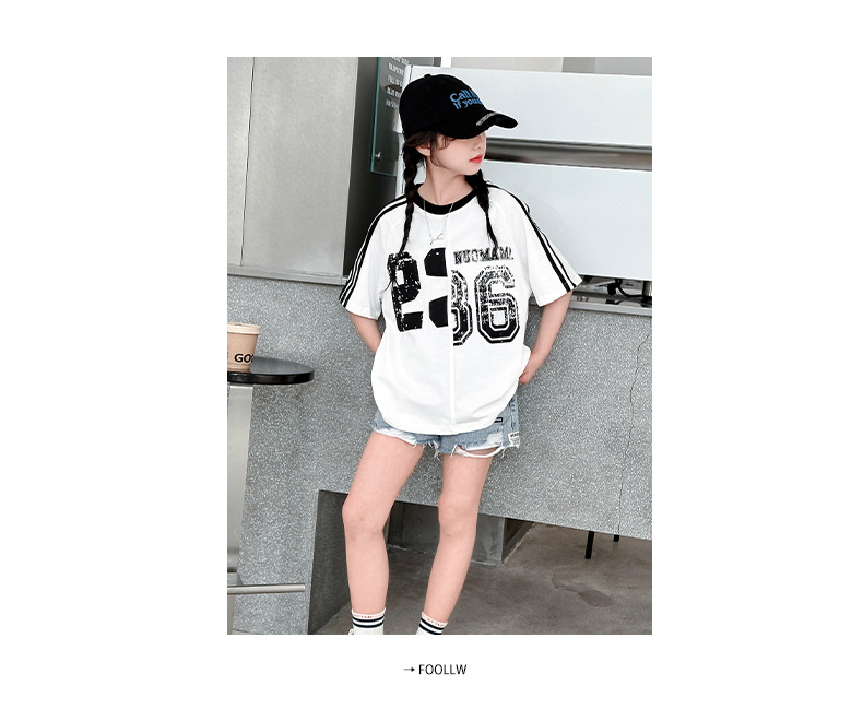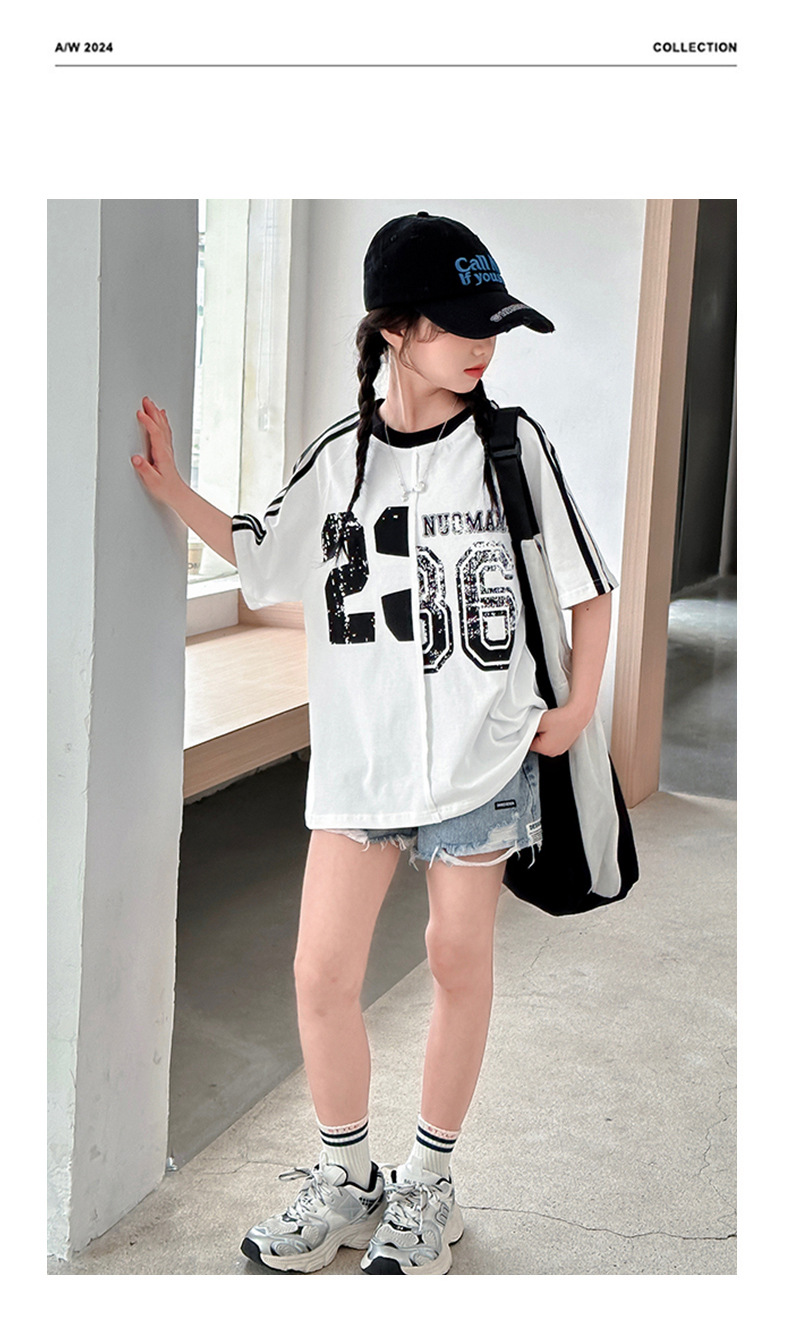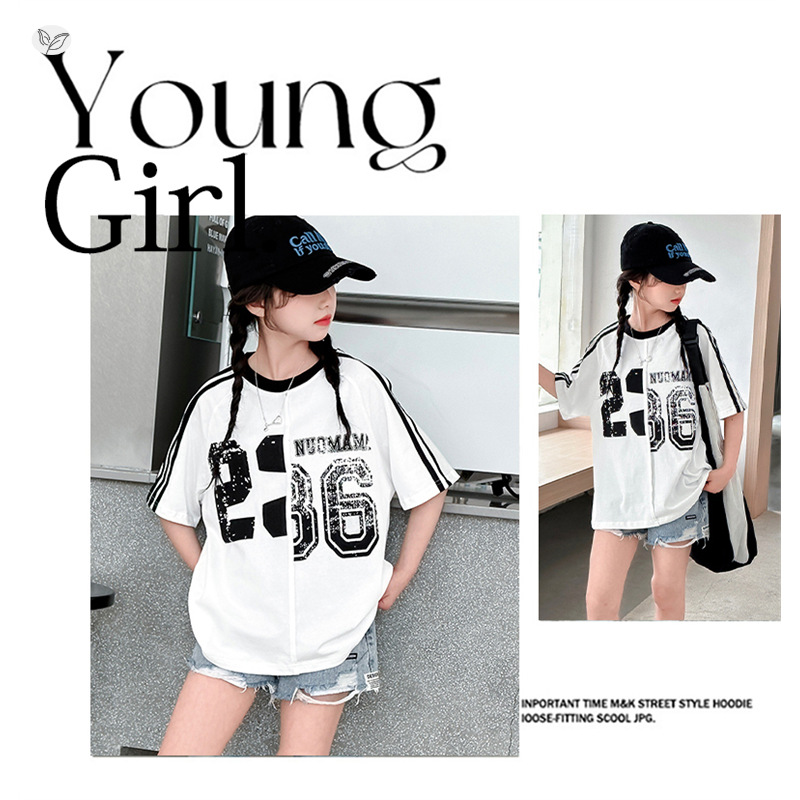 여름용 여아 반팔 패션 트렌디 쿨 루즈핏 티셔츠 라운드넥 중간 길이 힙합 재즈 댄스 상의 면