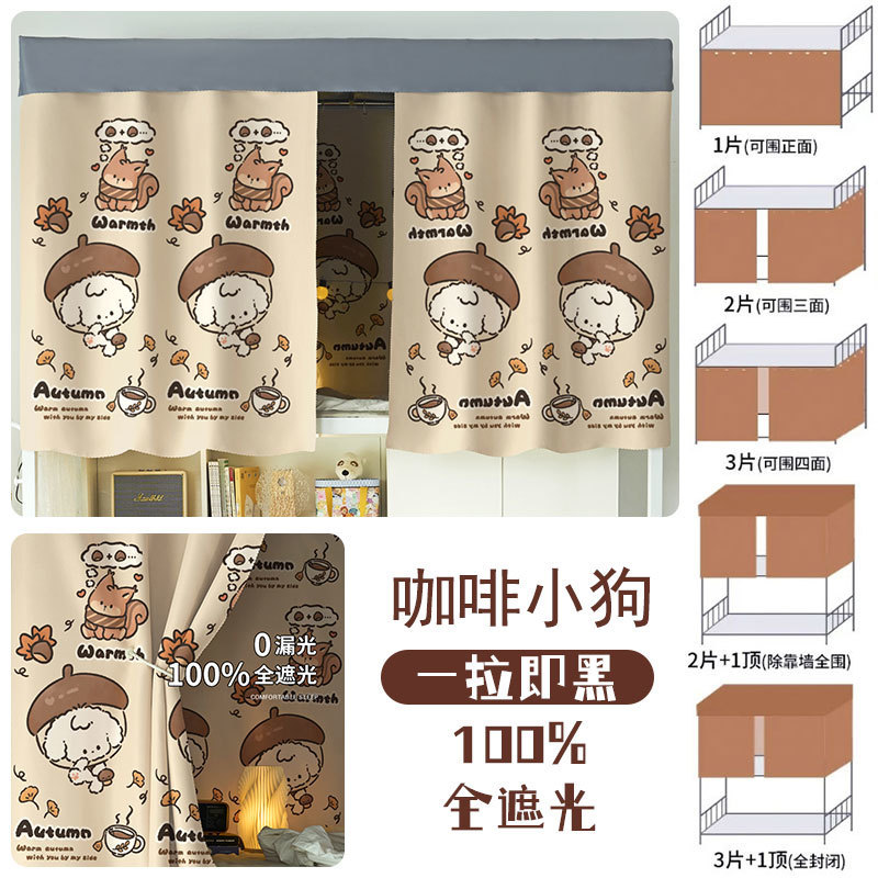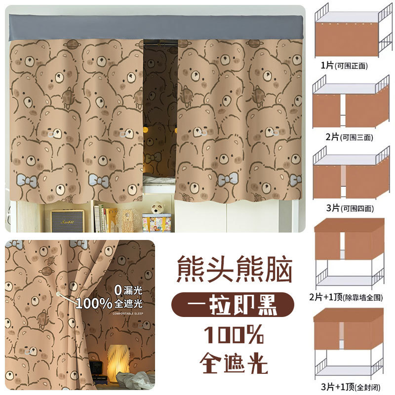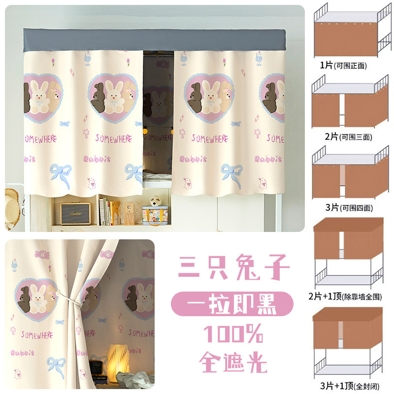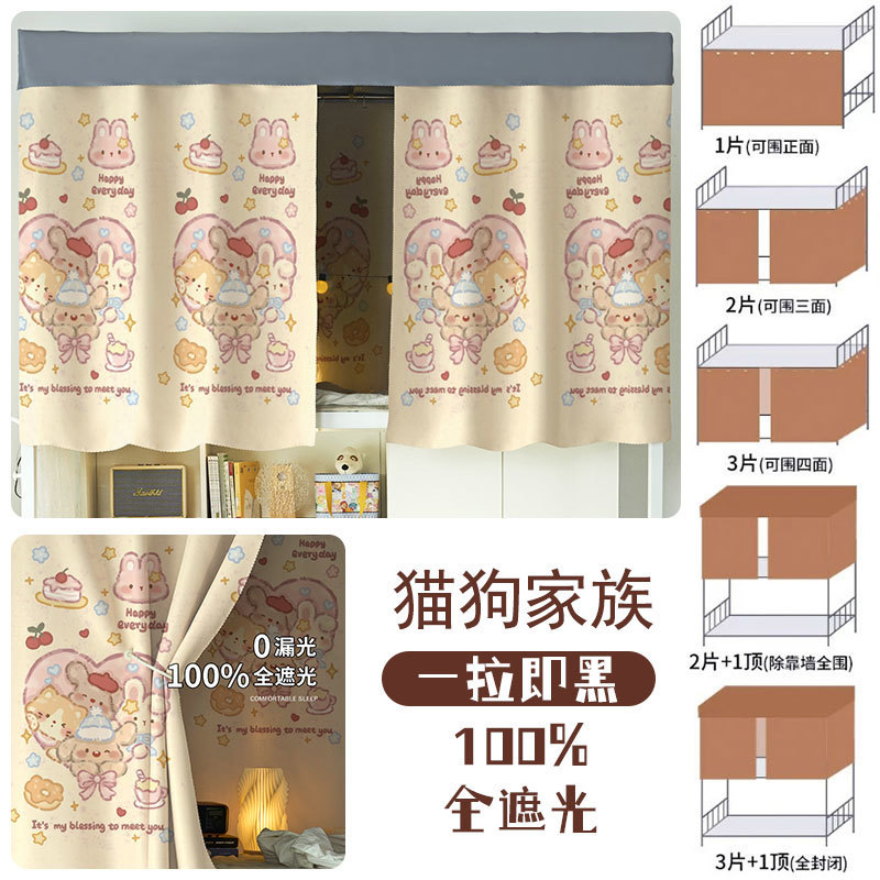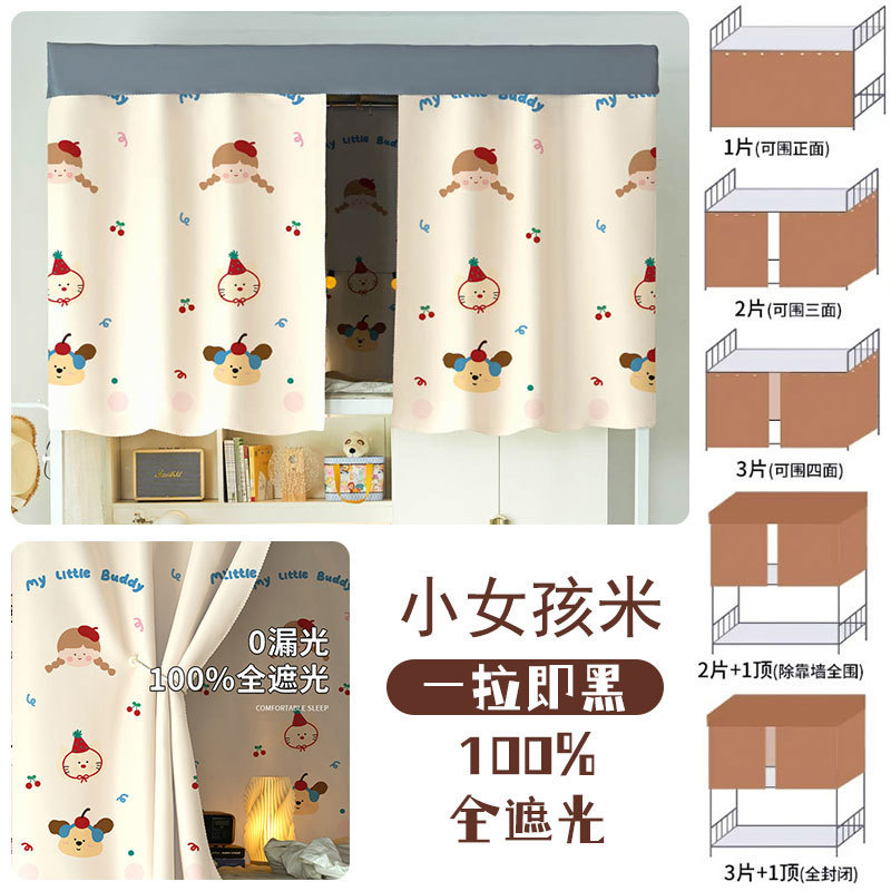 대학생 기숙사 완전 암막 침대 커튼 귀여운 만화 이층 침대 두꺼운 커튼 침대 커튼 침실 커튼 공장스토어 가기