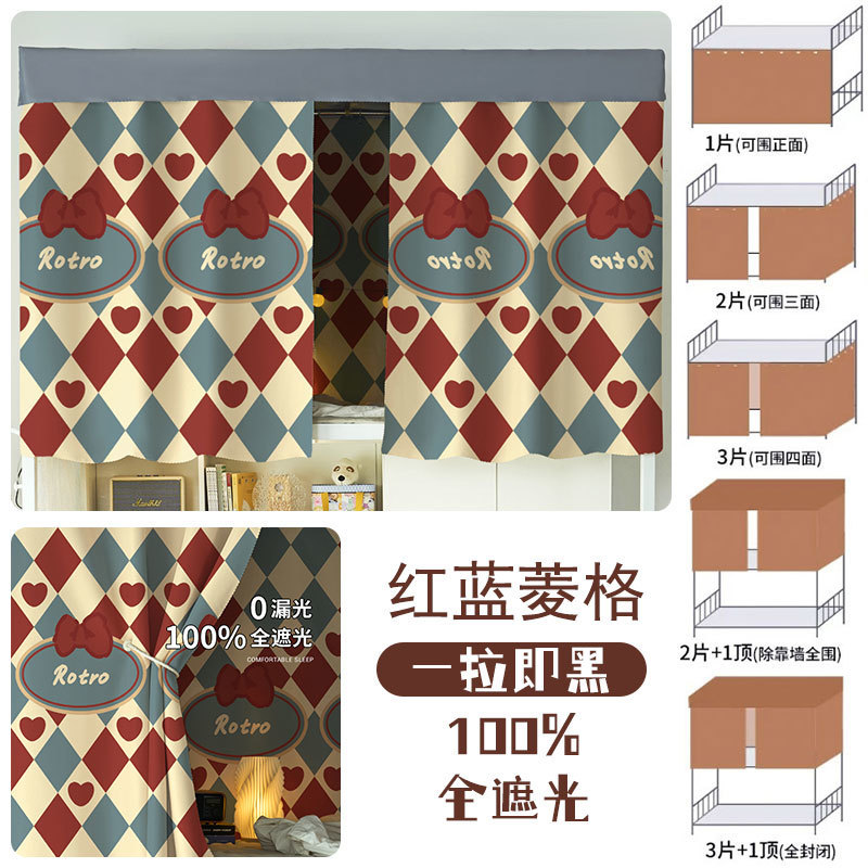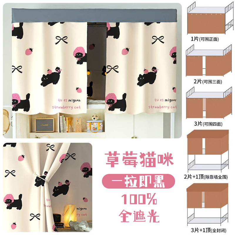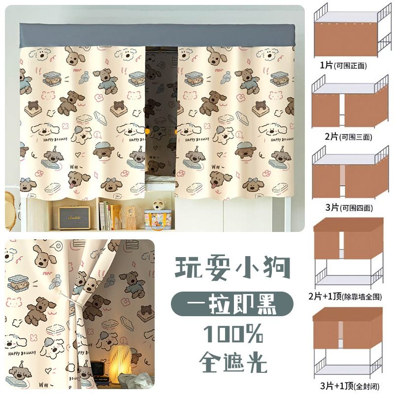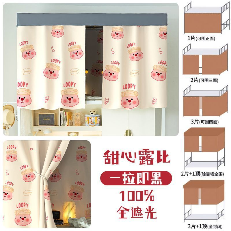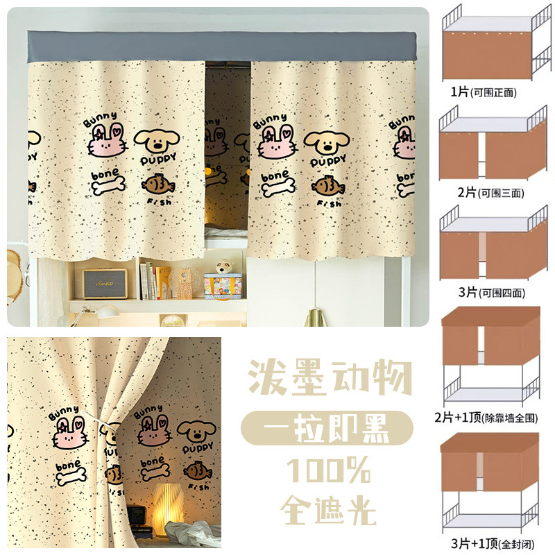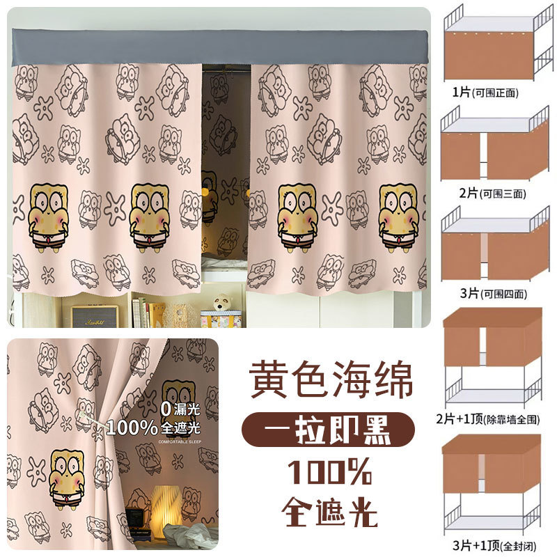 대학생 기숙사 완전 암막 침대 커튼 귀여운 만화 이층 침대 두꺼운 커튼 침대 커튼 침실 커튼 공장스토어 가기