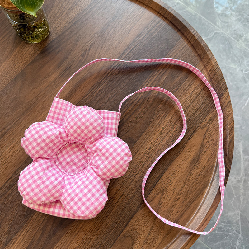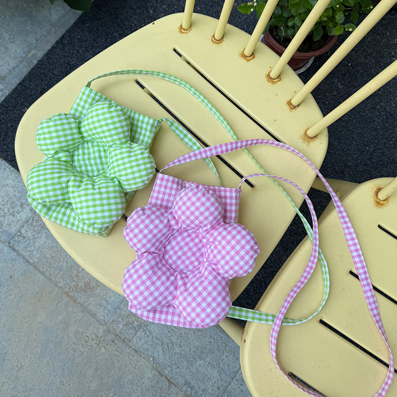 여름 신제품 캔디 컬러 격자 무늬 꽃 가방 격자 무늬 크로스 바디 대용량 키 잡화 가방스토어 가기
