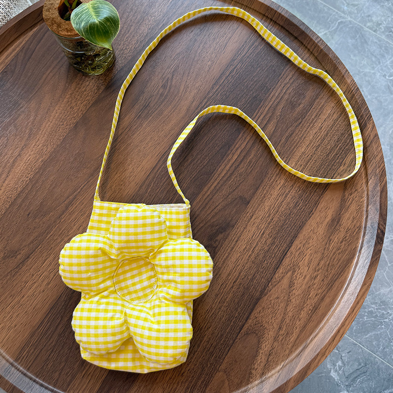• 옐로우 체크 무늬 플라워 크로스바디 백