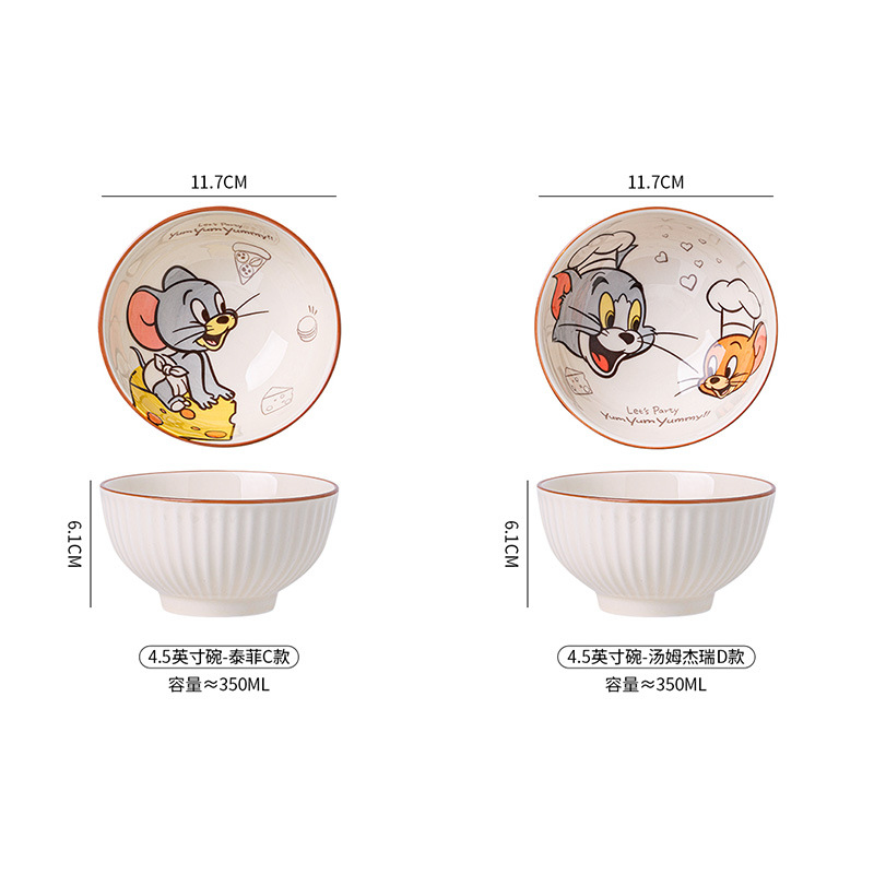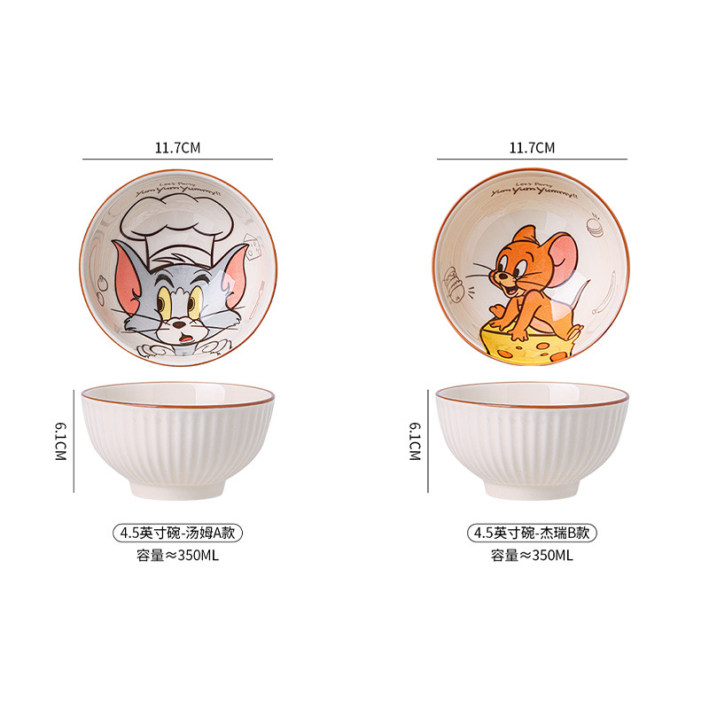 톰과 제리 공동 브랜드 유약 색상 밥 그릇 만화 귀여운 세라믹 그릇 가정용 안전 고온 방지 어린이 식기