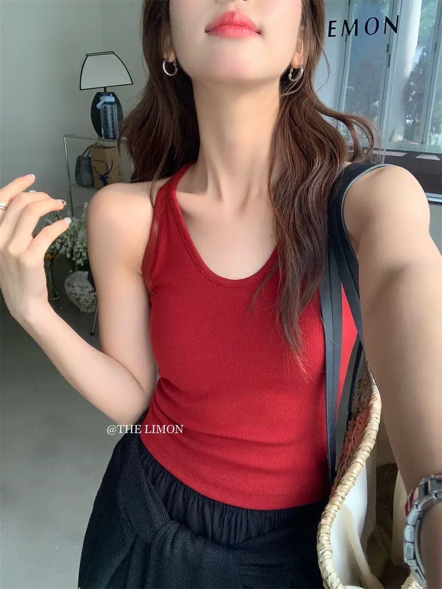 가슴을 덮는 고정 라텍스 가슴 패드가 있는 여성용 핫걸 홀터넥 캐미솔, 슬림하고 아름다운 등, 이너웨어 및 아우터웨어 탑스토어 가기
