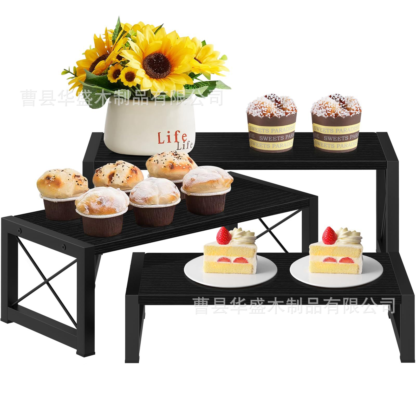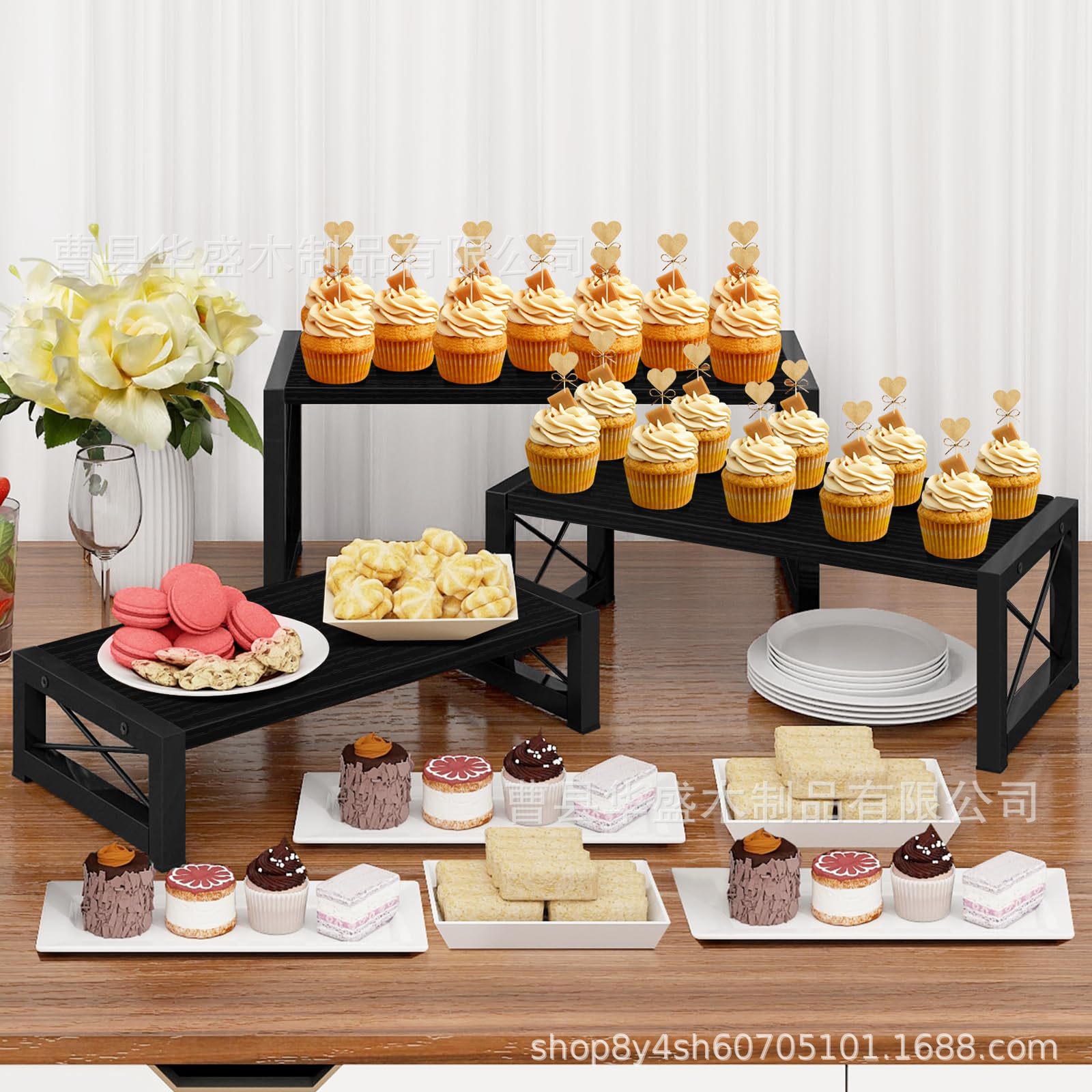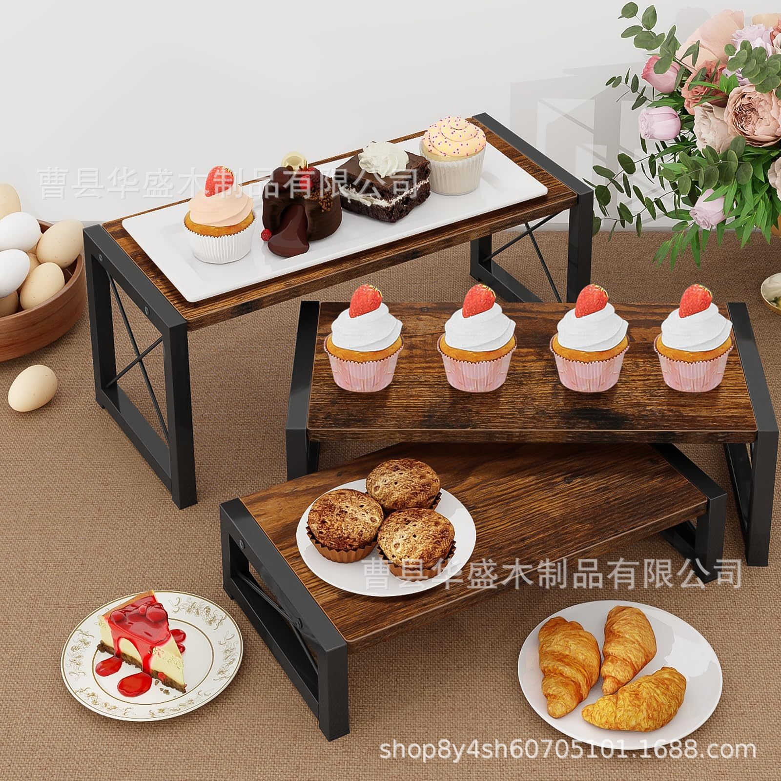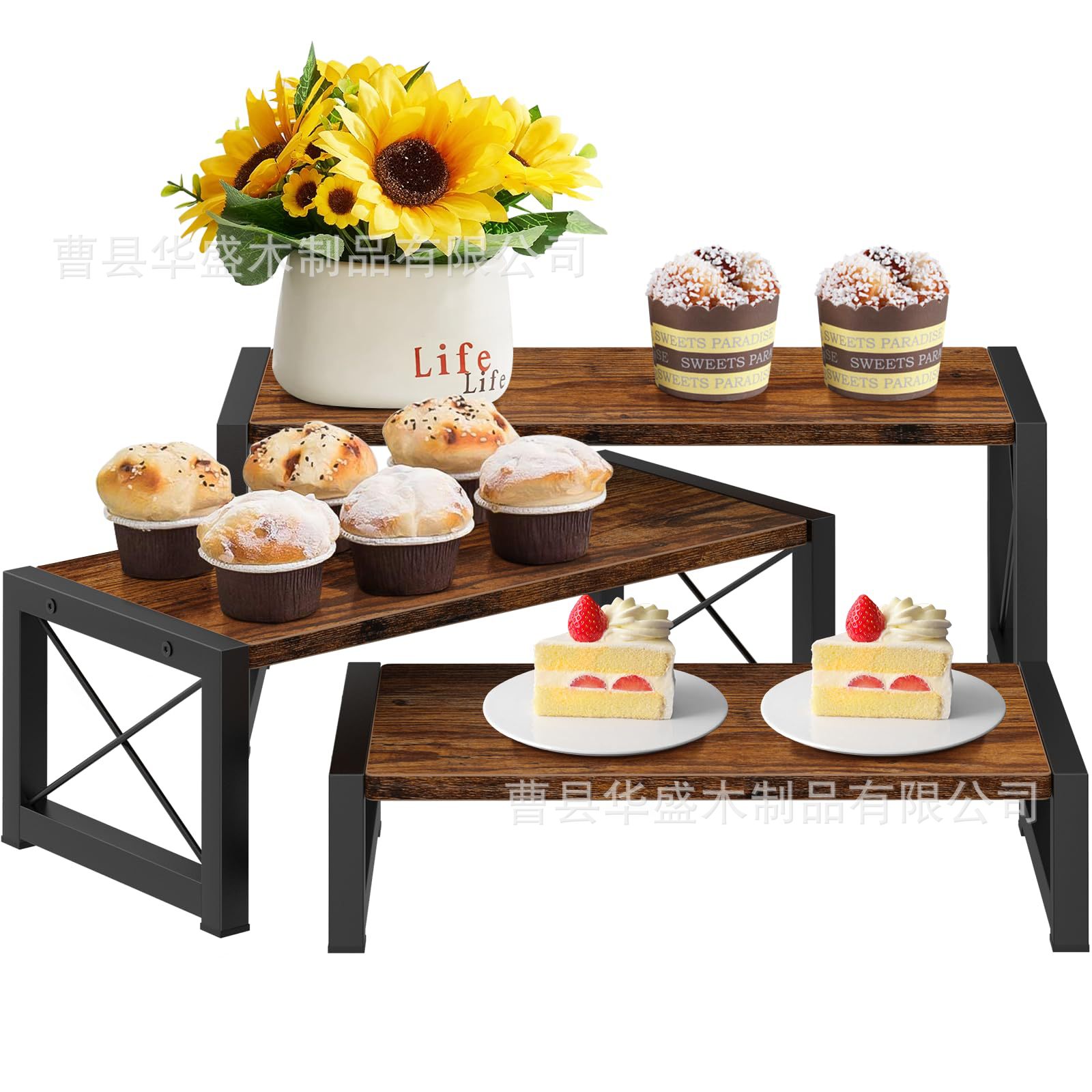 국경 간 복고풍 소박한 스타일의 컵케이크 스탠드 데스크탑 나무 디스플레이 스탠드 쌓을 수 있는 3층 데스크탑 스토리지 랙스토어 가기
