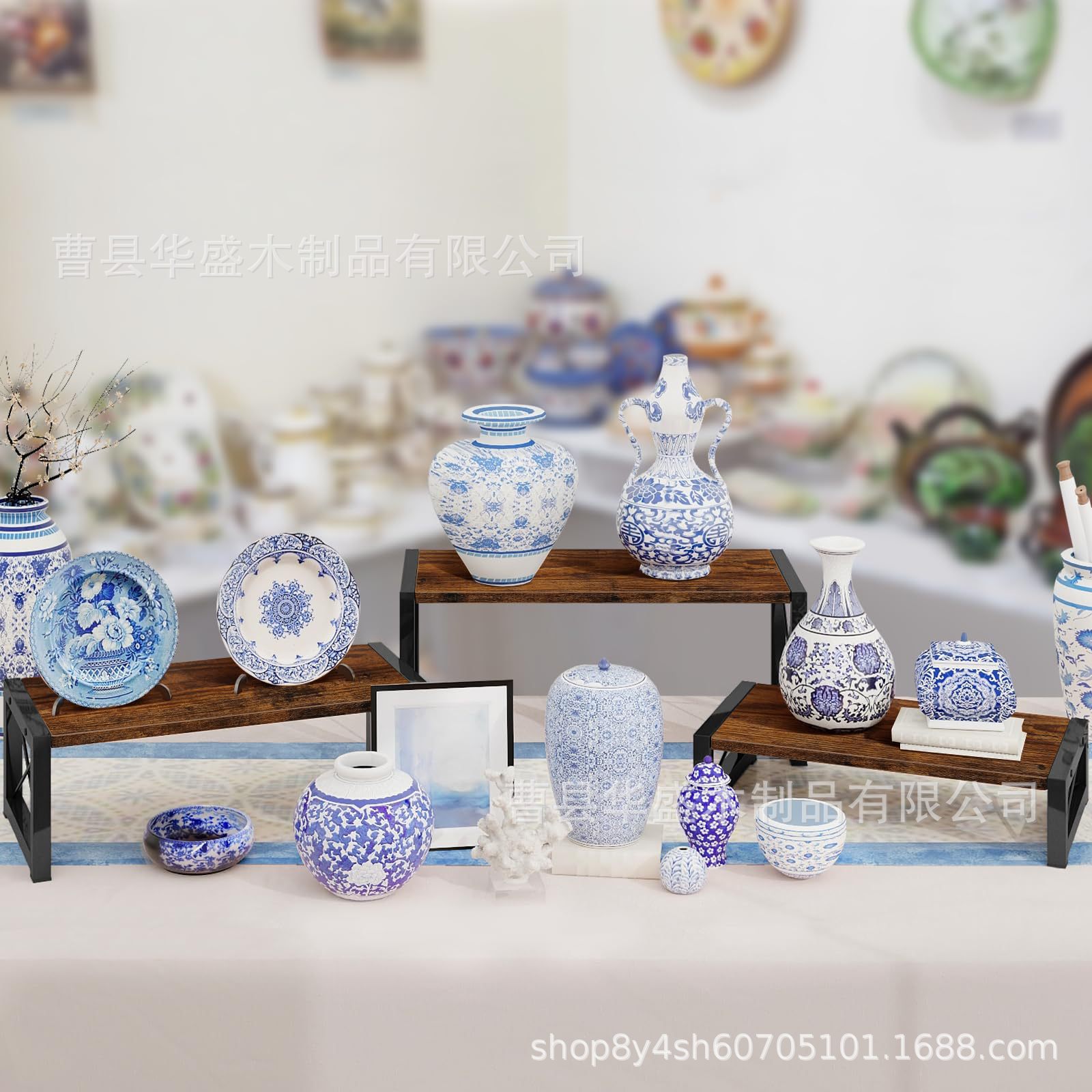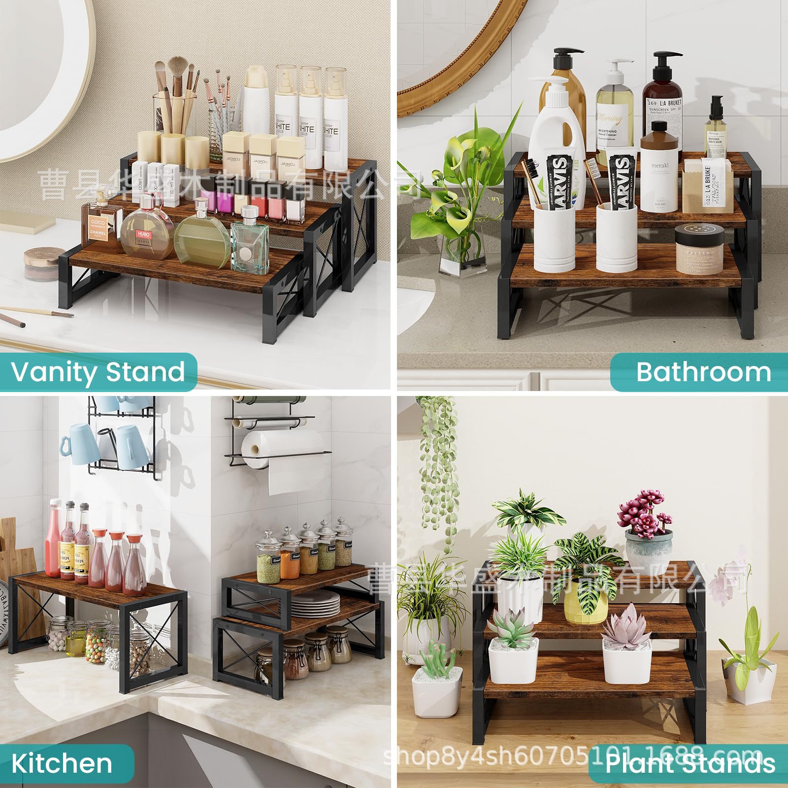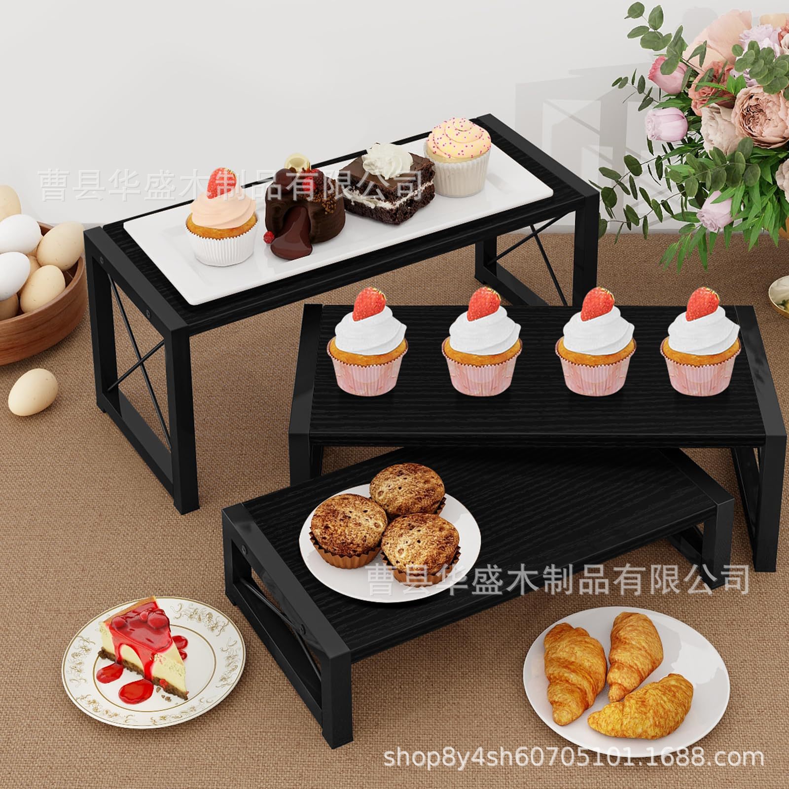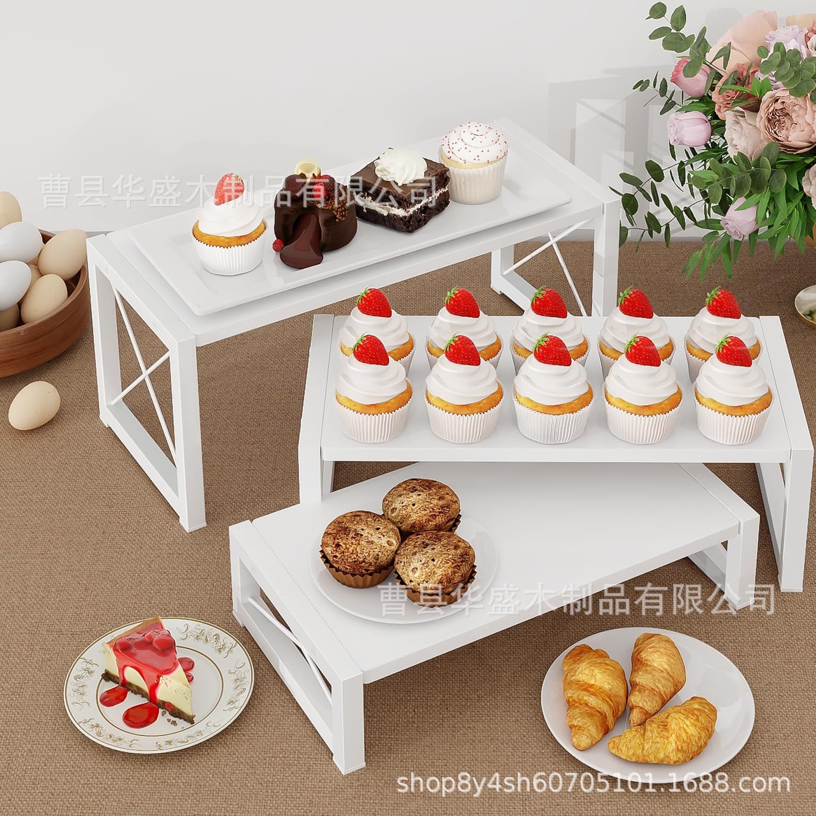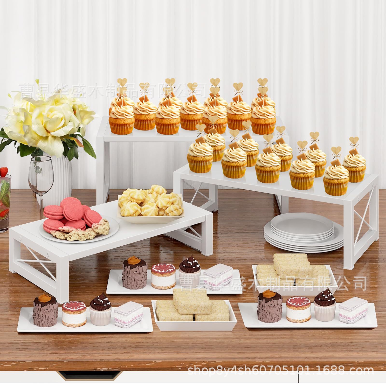 국경 간 복고풍 소박한 스타일의 컵케이크 스탠드 데스크탑 나무 디스플레이 스탠드 쌓을 수 있는 3층 데스크탑 스토리지 랙스토어 가기