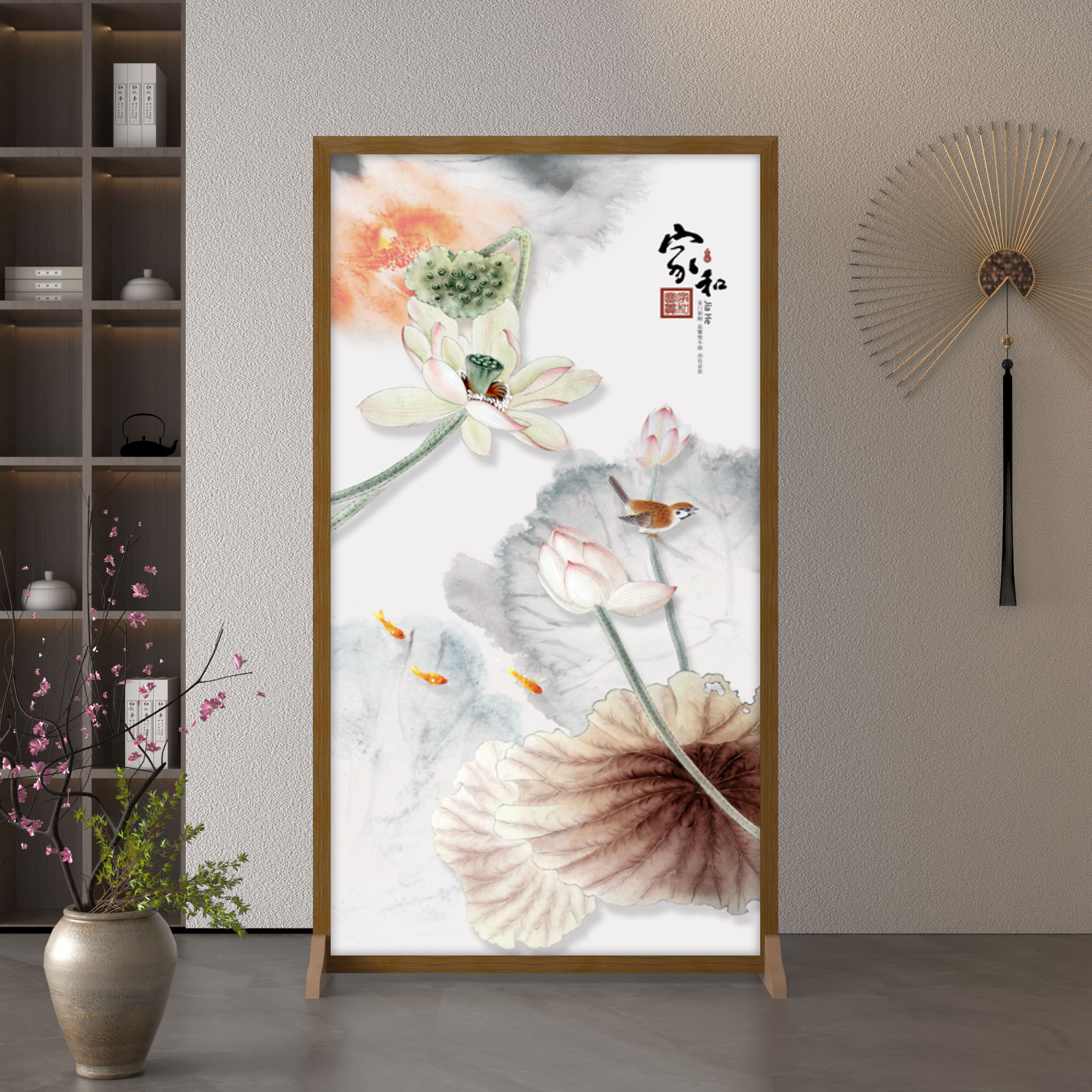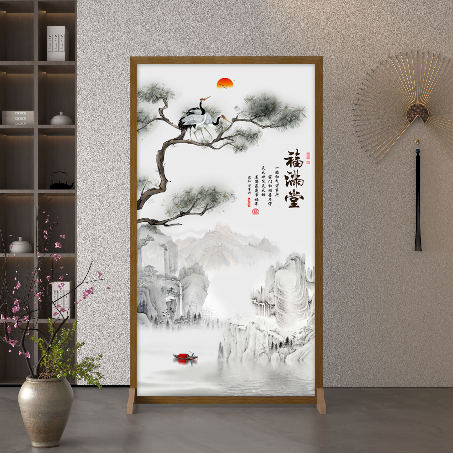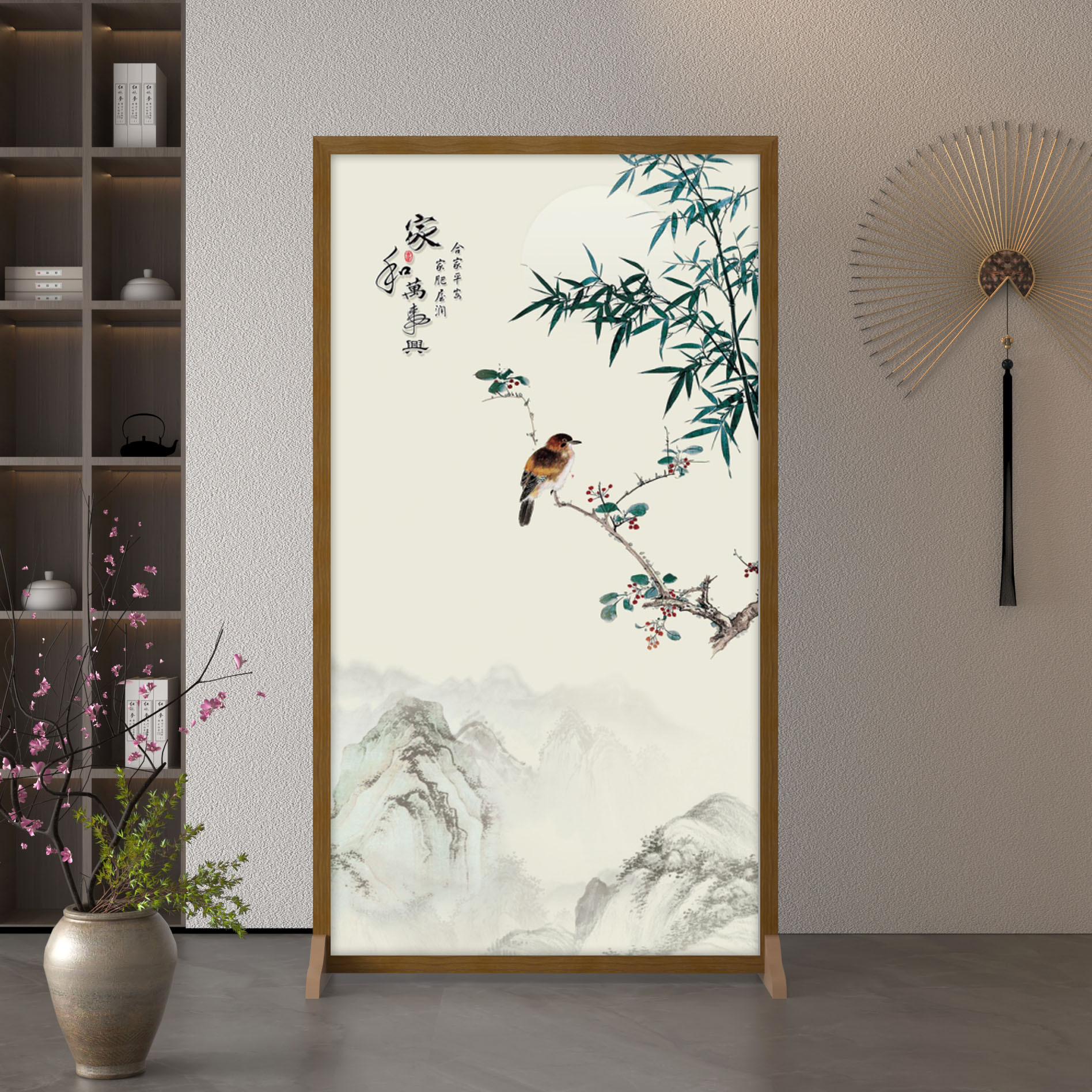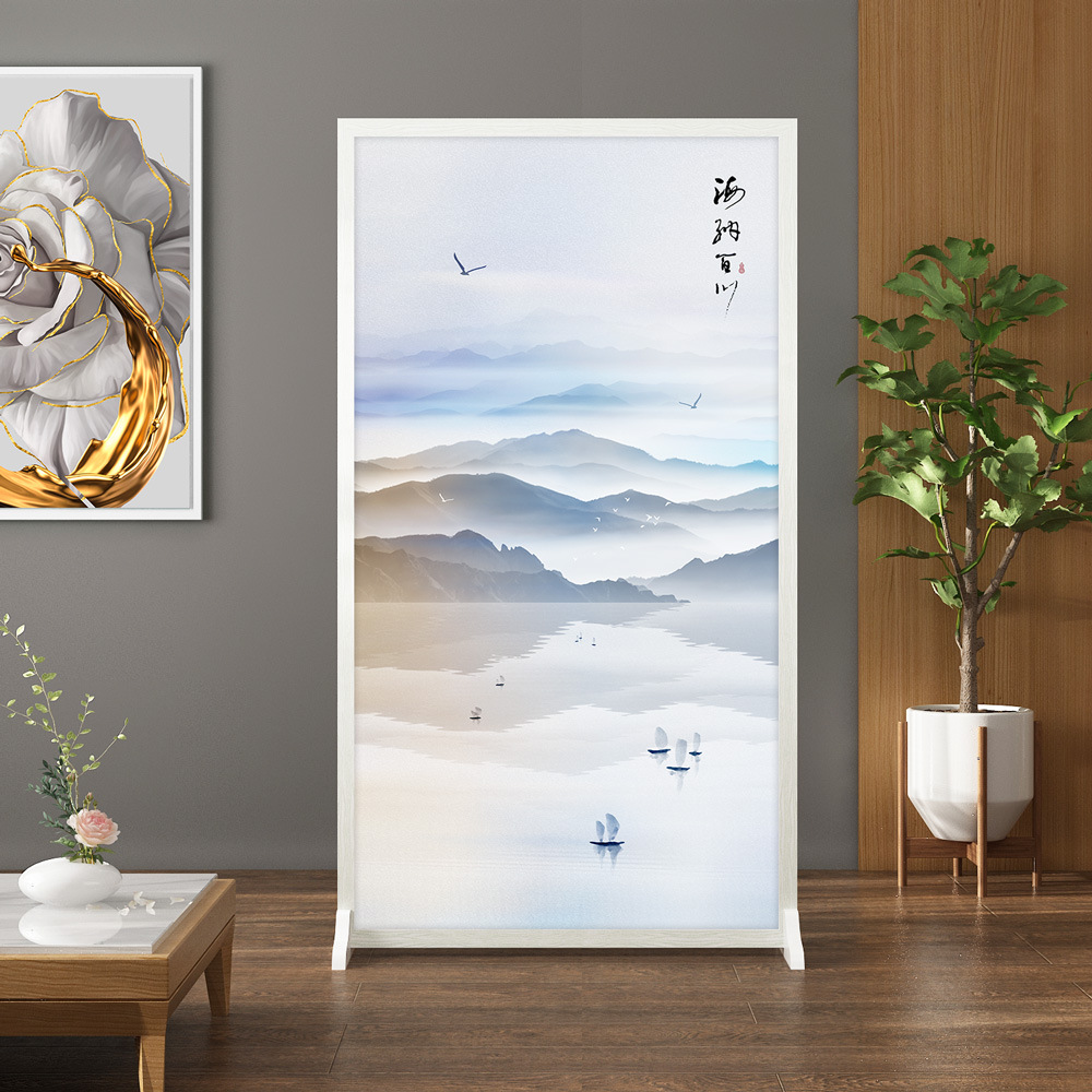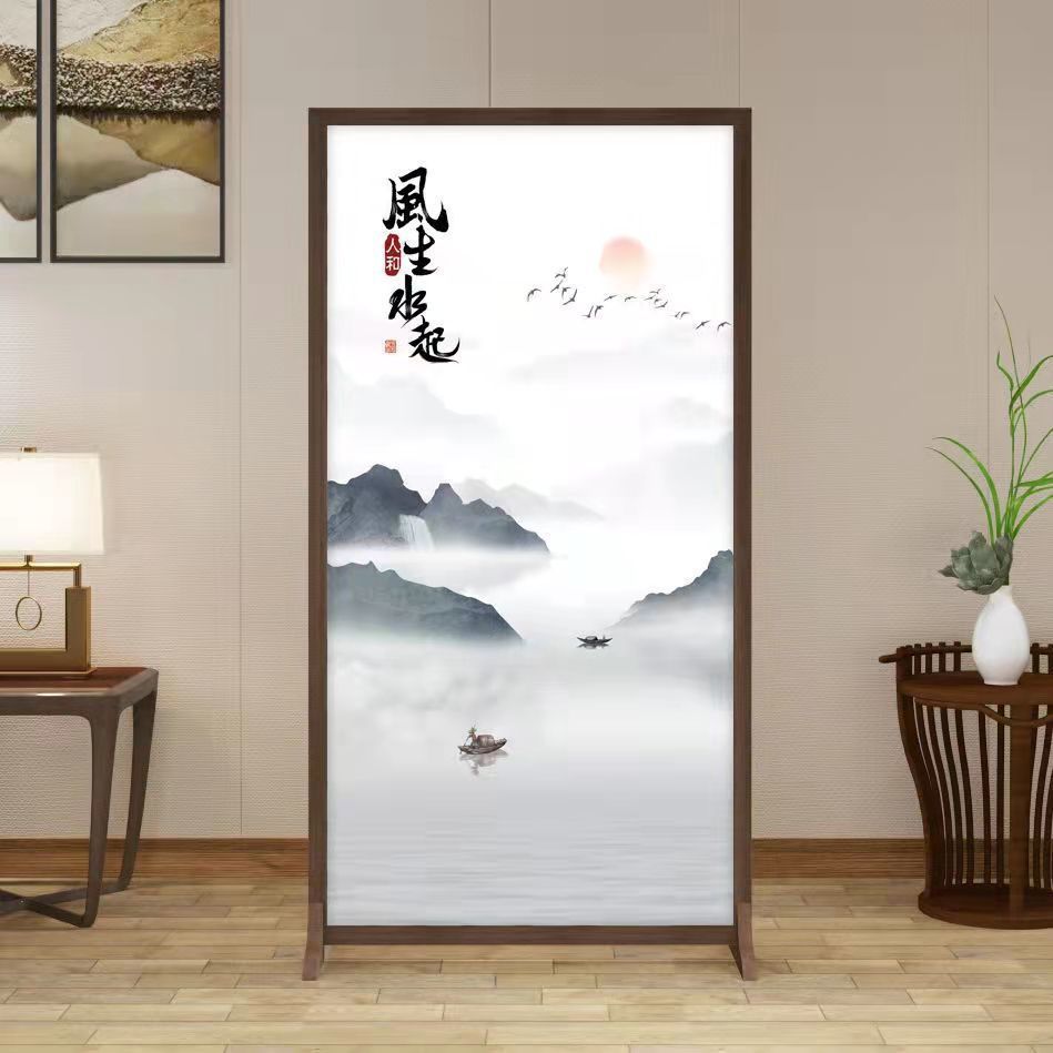 새로운 중국 스타일의 간단한 현대 파티션 입구 패브릭 쉴드 거실 나무 스크린 입구 장식 모바일 스크린